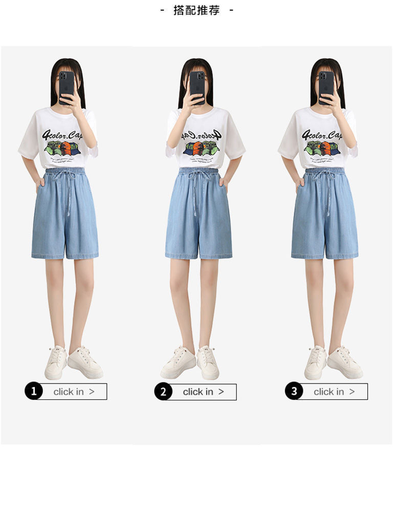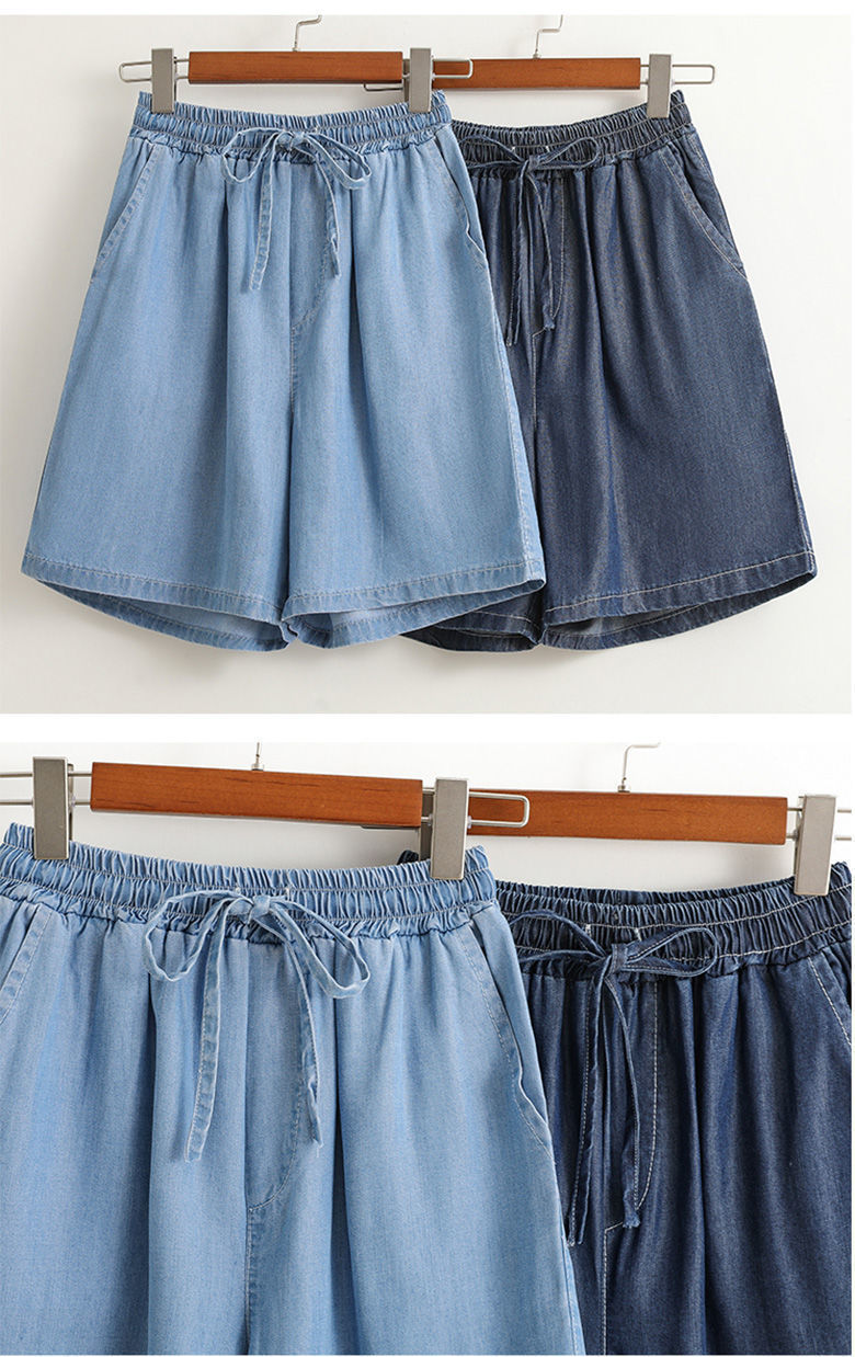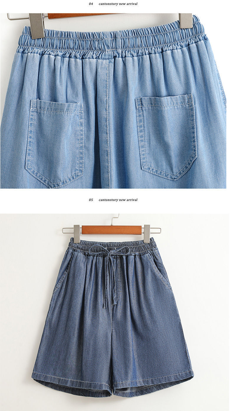 텐셀 데님 반바지 여성 여름 새로운 얇은 아이스 실크 캐주얼 5 점 느슨한 와이드 레그 하이 허리 A 자형 핫 팬츠 도매스토어 가기