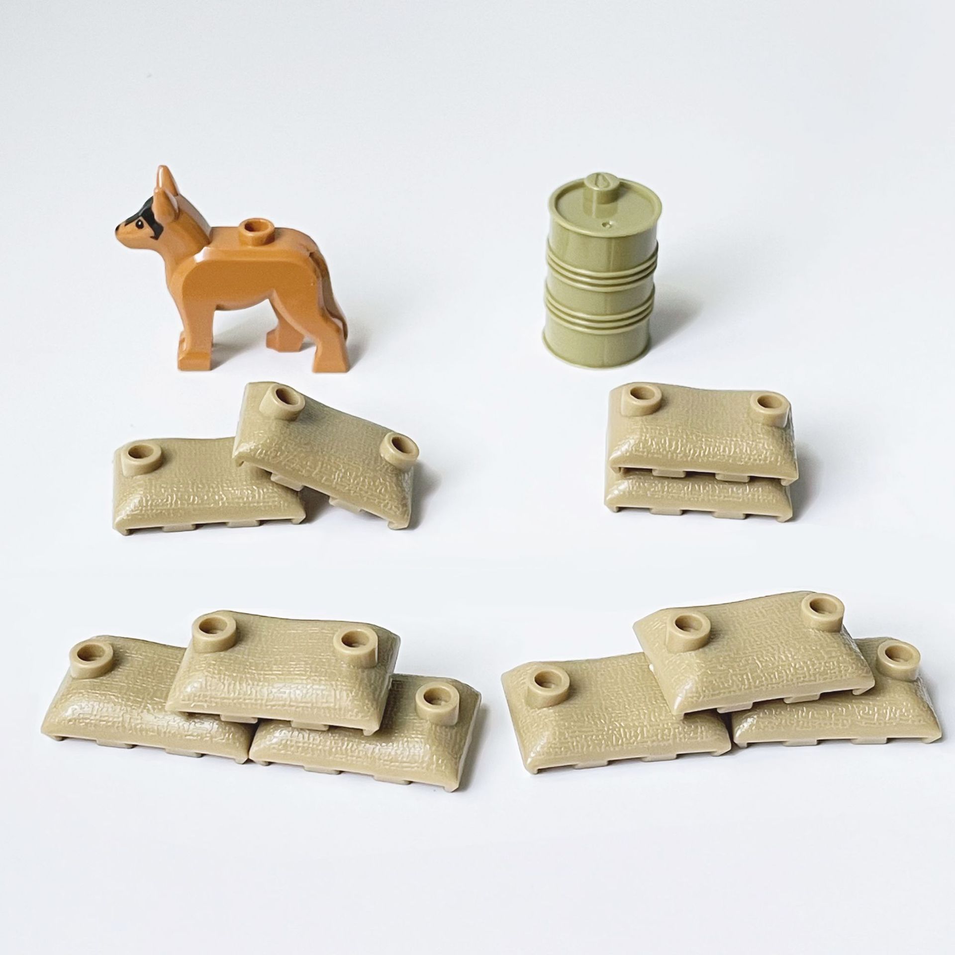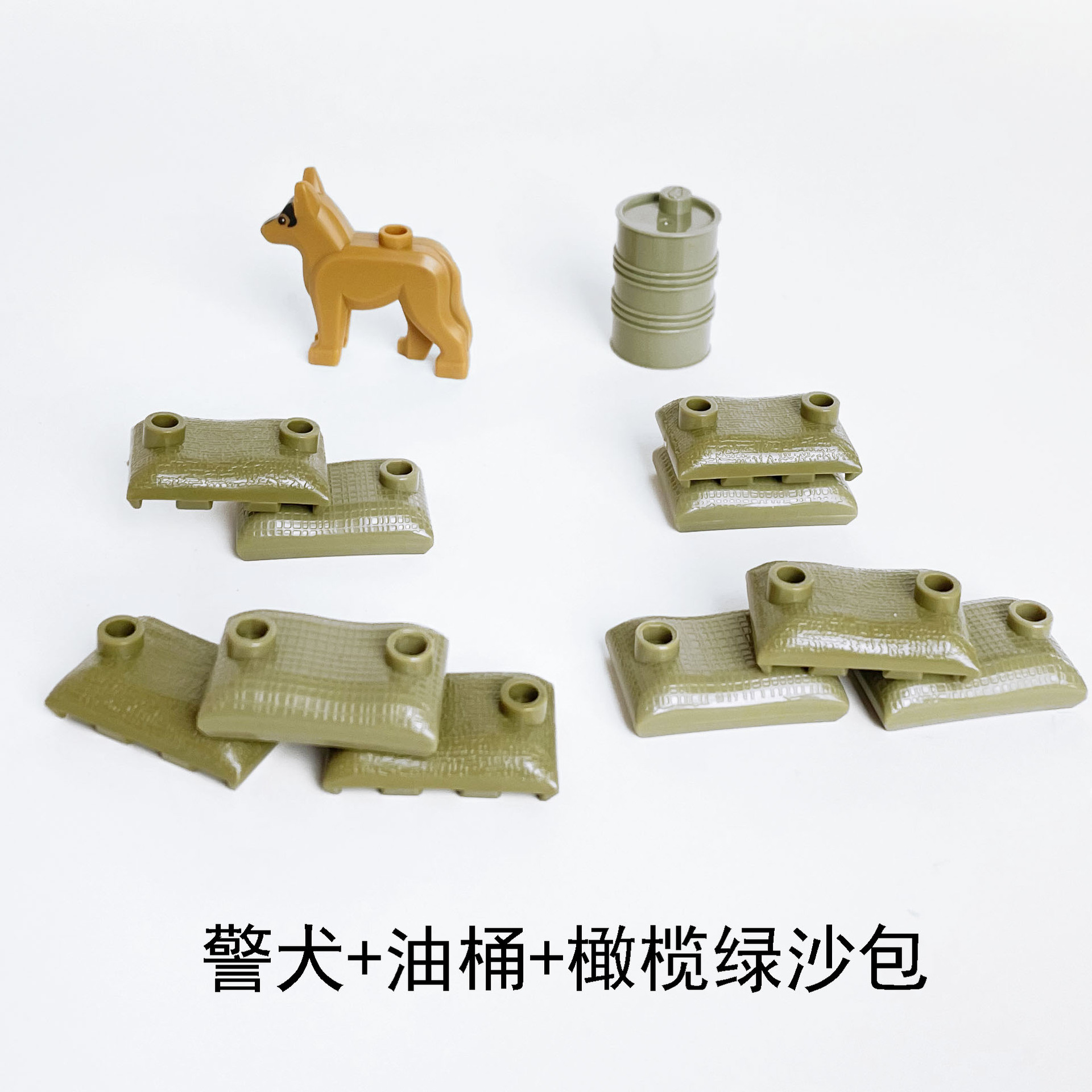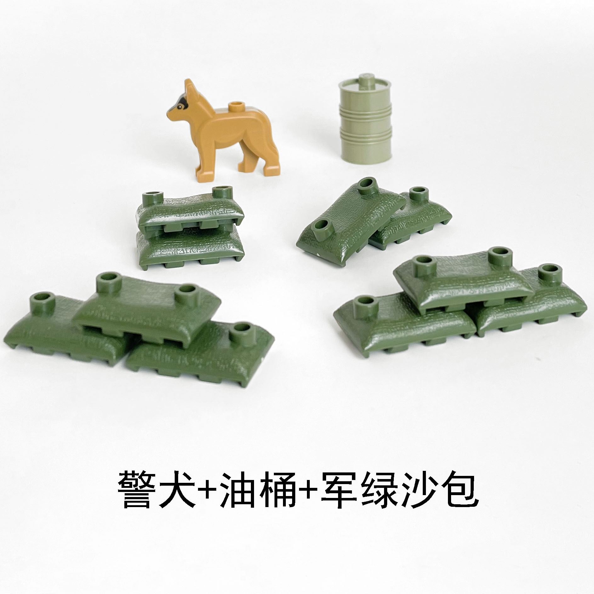 군사 건물 블록 경찰 개 모래 주머니 오일 버킷 건물 블록 어린이 장난감 조립 건물스토어 가기