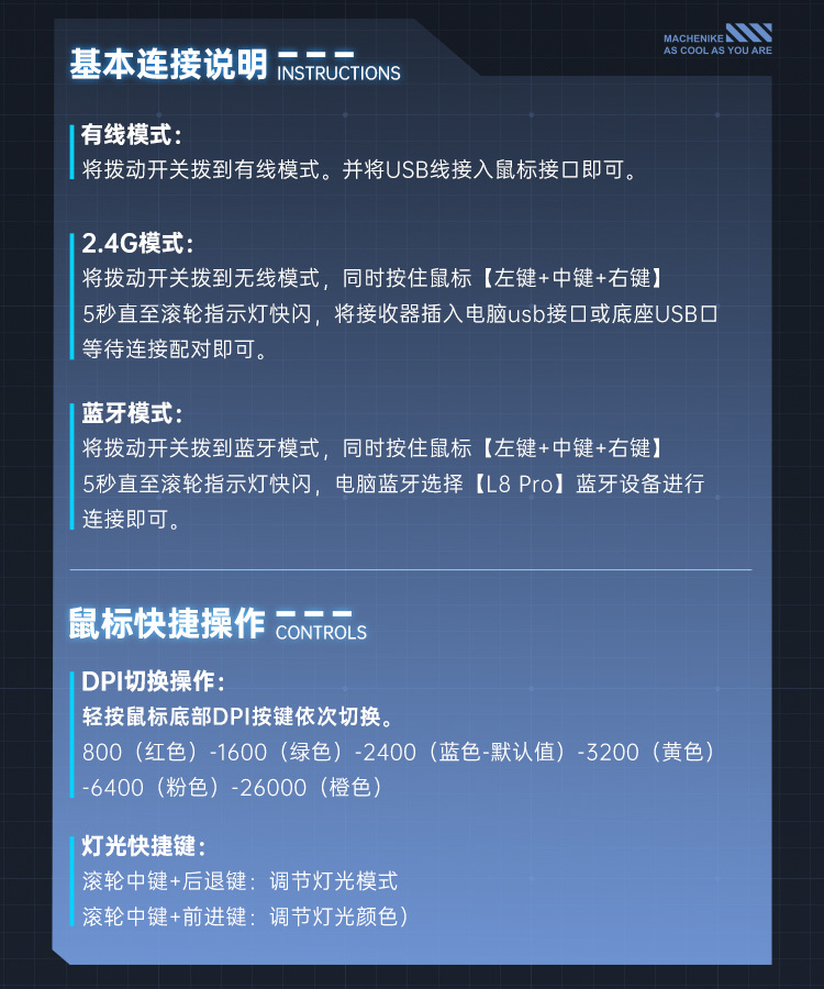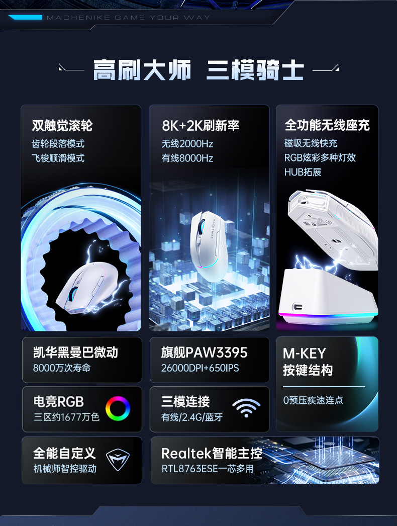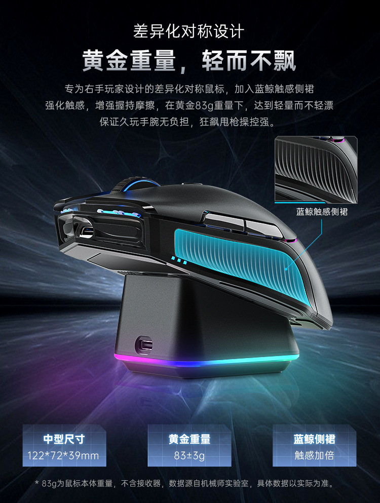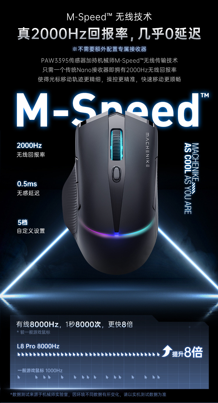 기계공 (MACHENIKE)L8pro 큰 손 무선/유선/블루투스 트리플 모드 게임 마우스 339