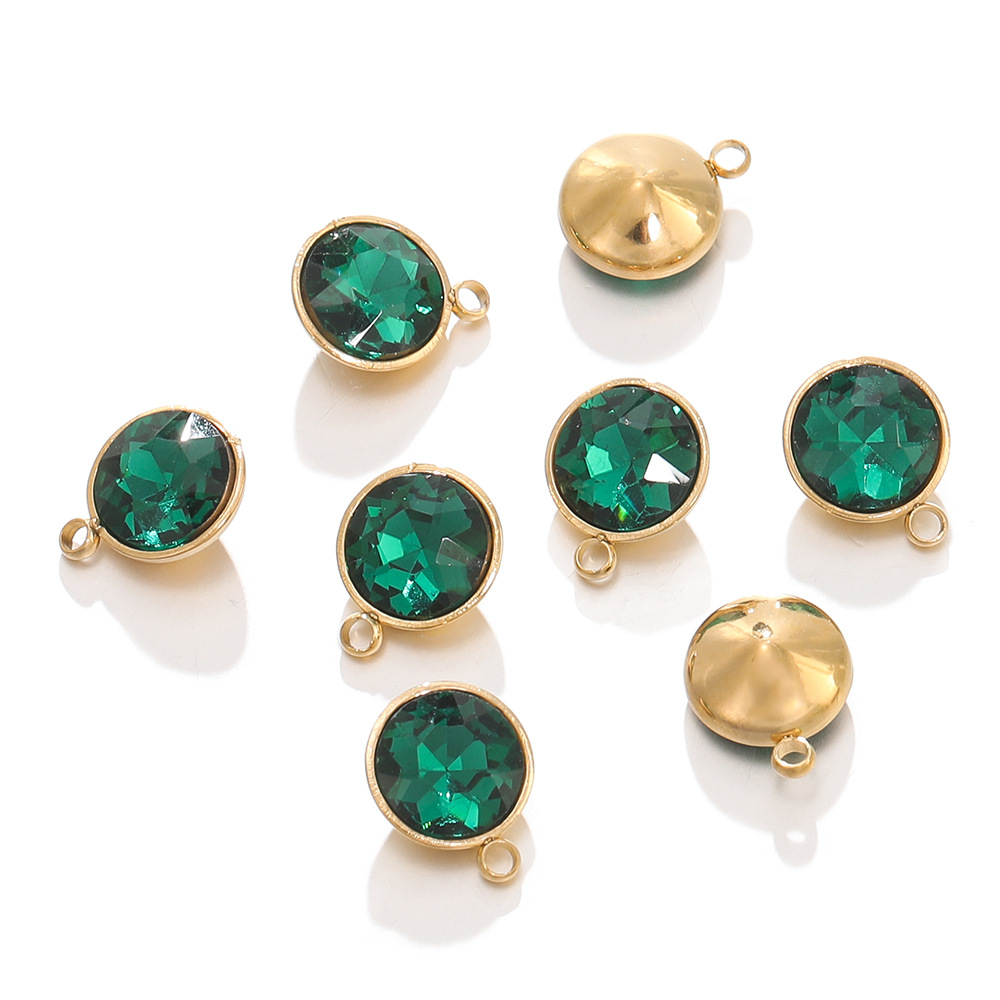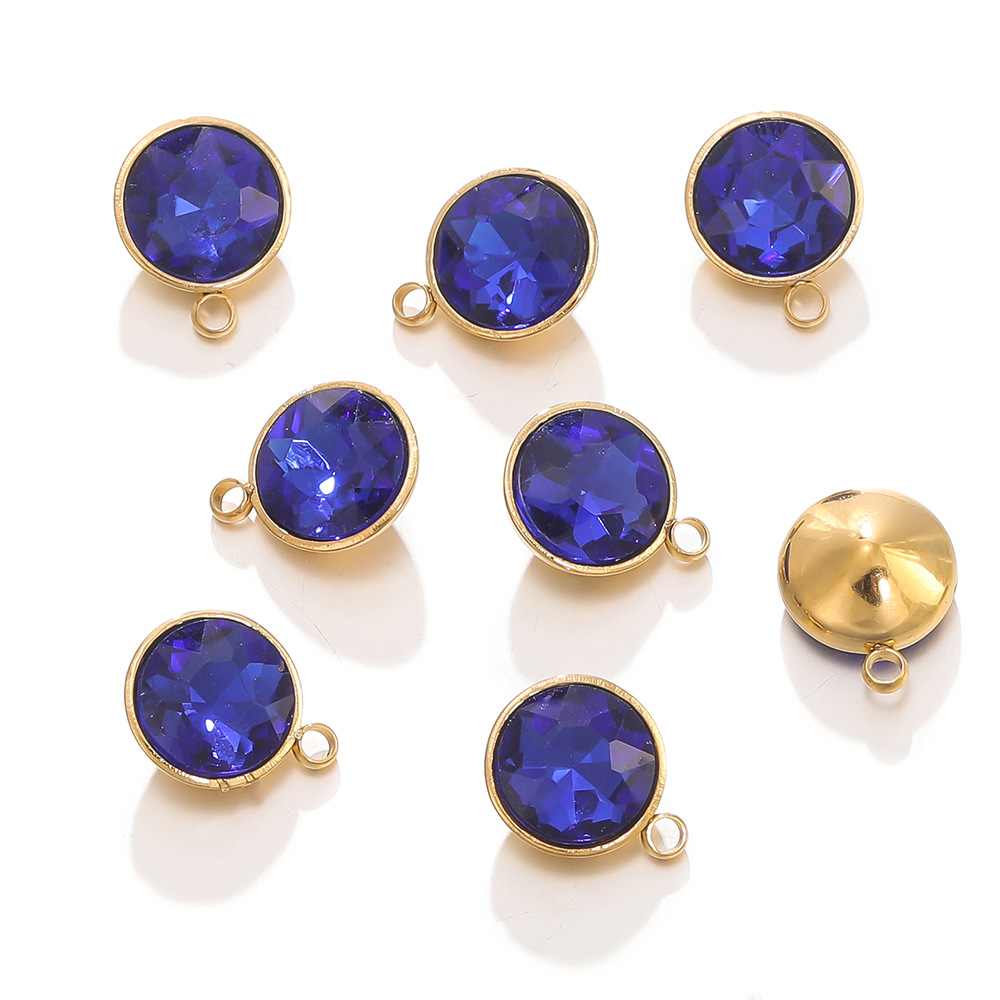 DIY 액세서리 스테인레스 스틸 11 색 생일 펜던트 황금 가장자리 상감 크리스탈 유리 라운드 펜던트스토어 가기