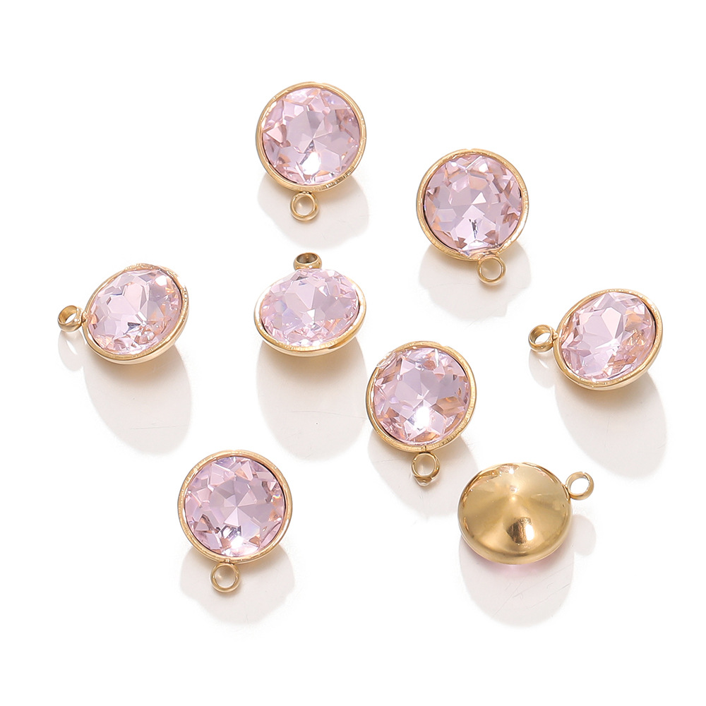 DIY 액세서리 스테인레스 스틸 11 색 생일 펜던트 황금 가장자리 상감 크리스탈 유리 라운드 펜던트
