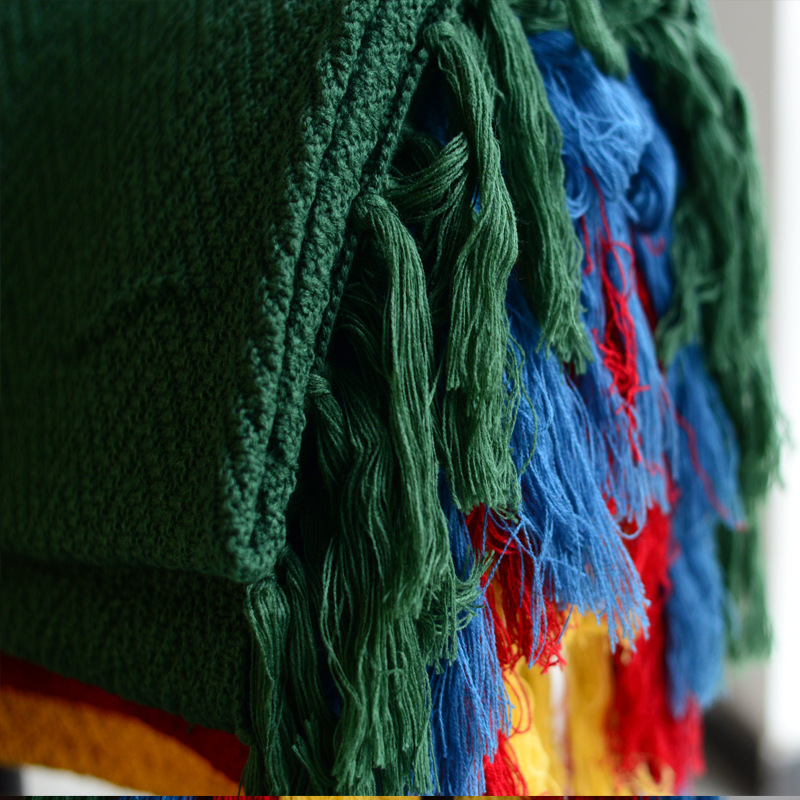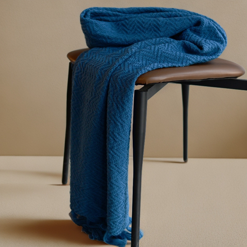 A5 물결무늬 니트 담요 단색 캐주얼 담요 프린지 장식 다용도 침대 끝 깃발 호텔 장식 담요 스트라이프