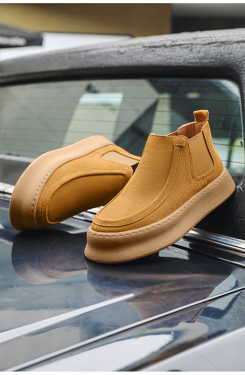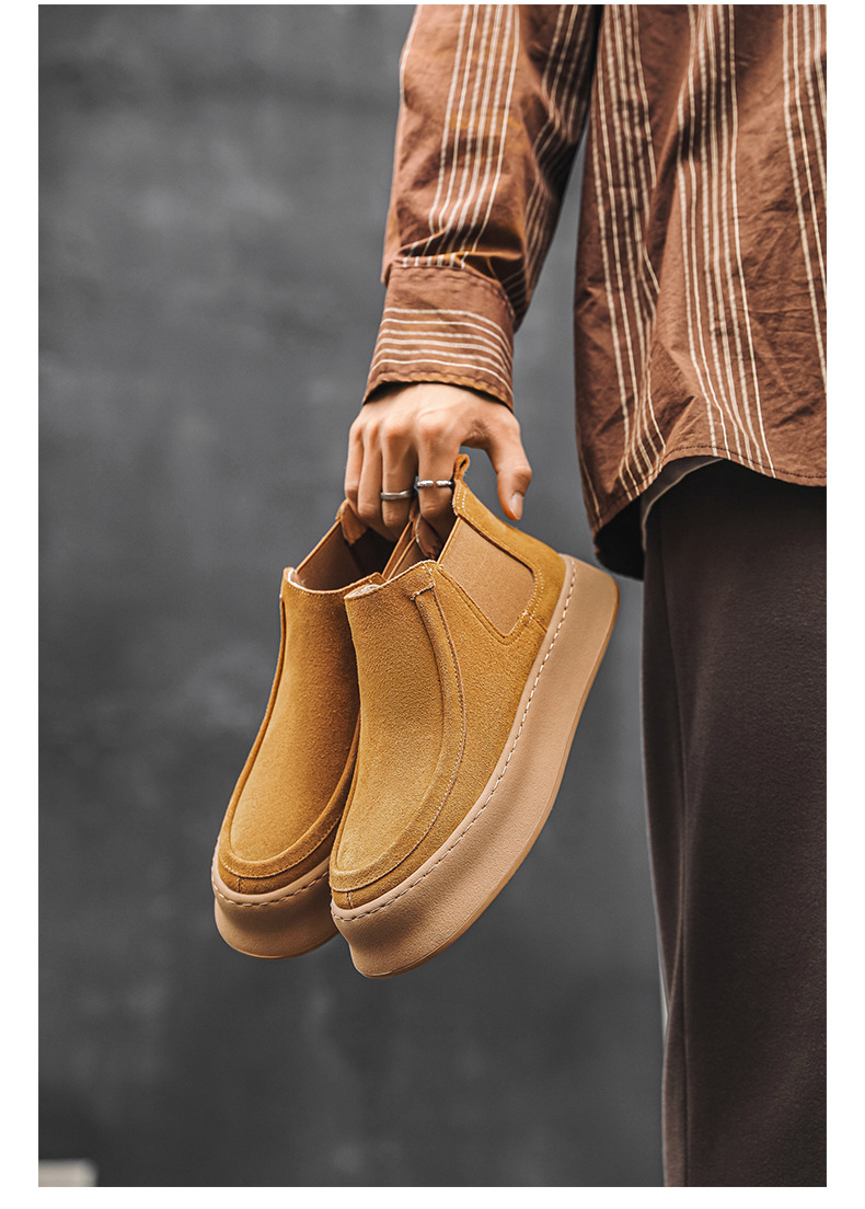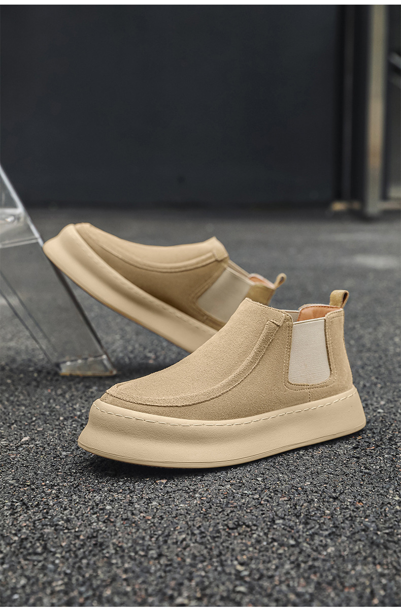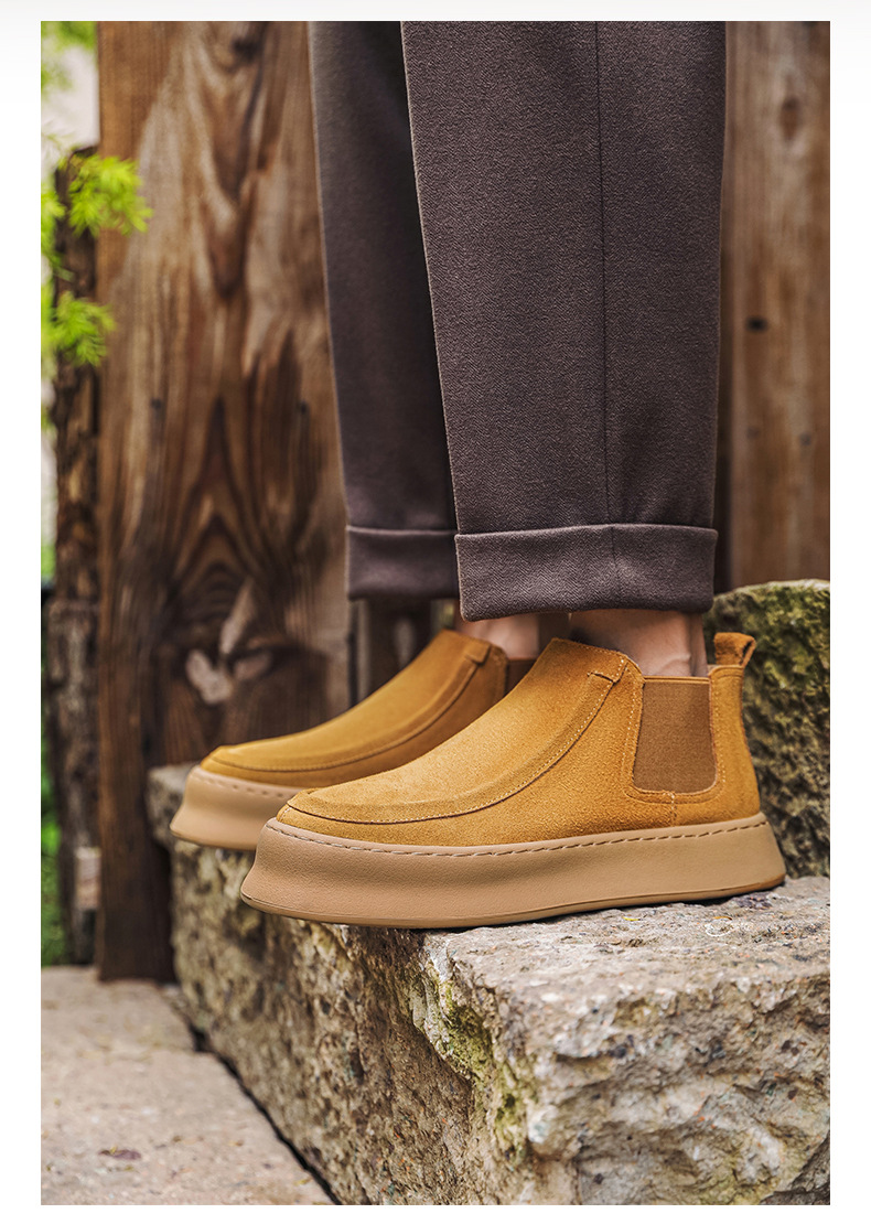 마틴 부츠 여름 정품 가죽 프로스트 발목 부츠 하이 탑 슬립 온 남성 신발 플랫폼 증가 영국 스타일 첼시 부츠