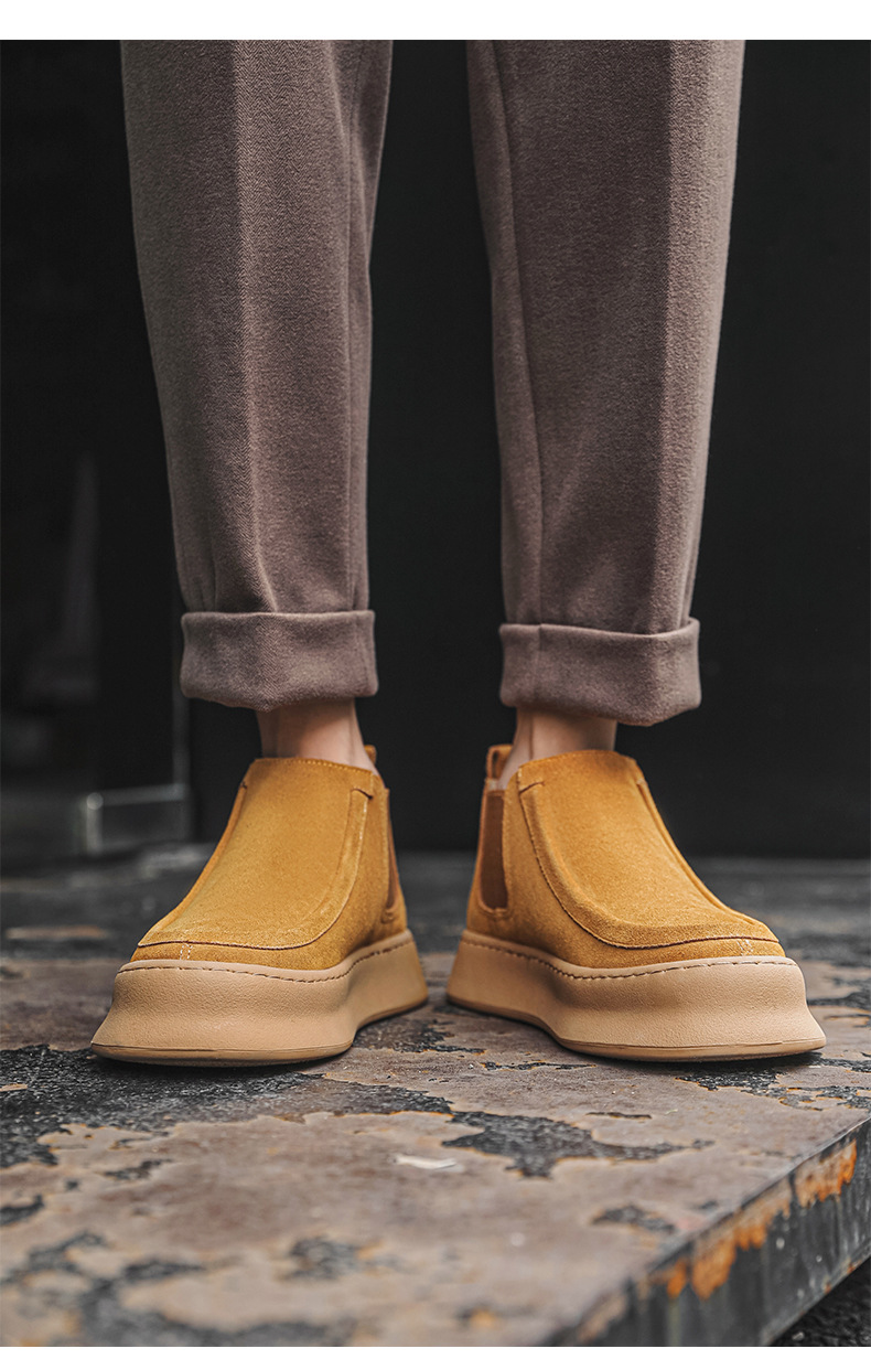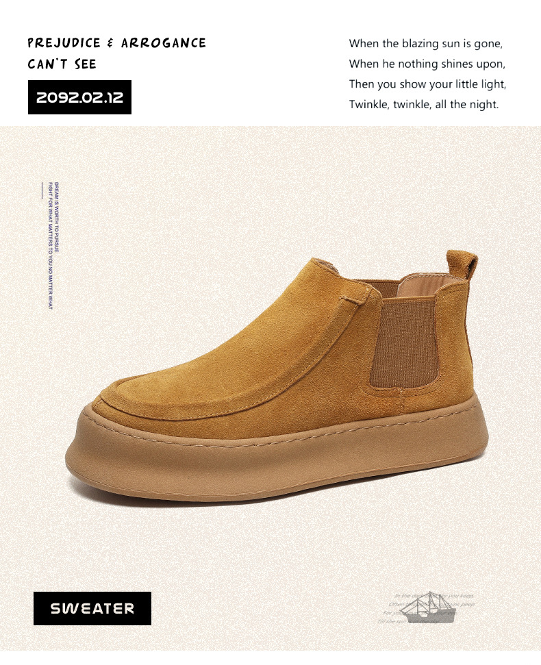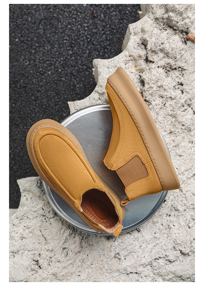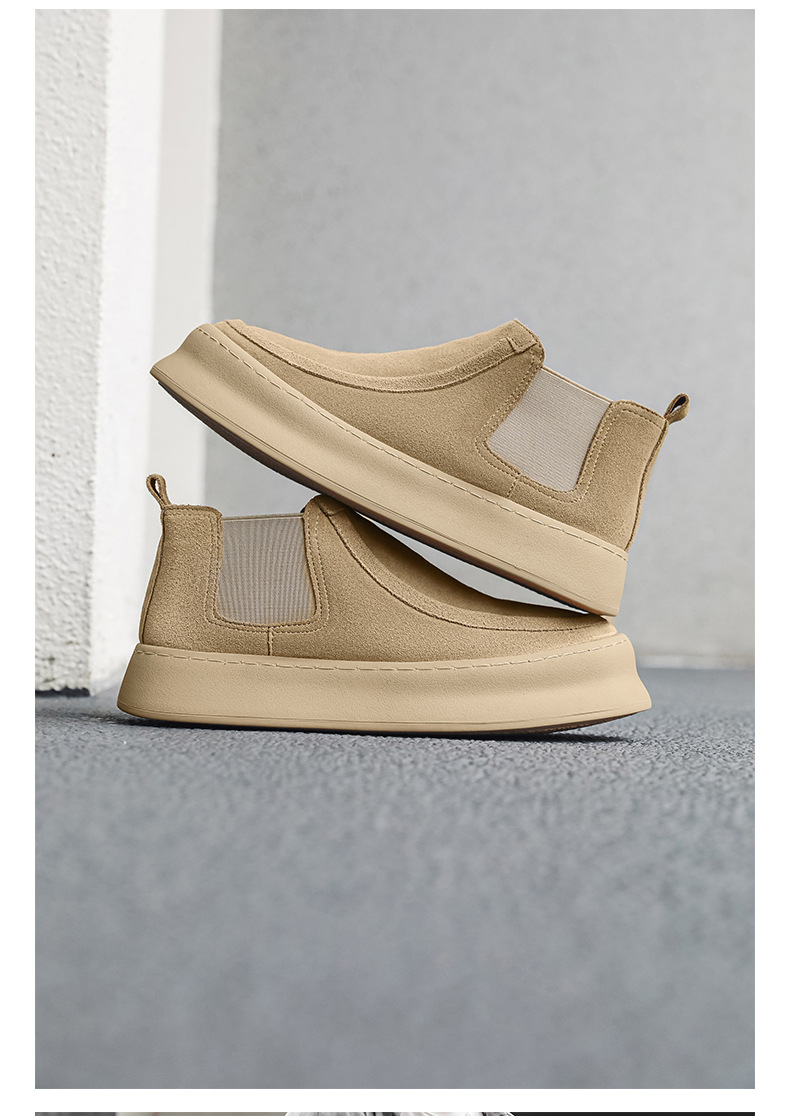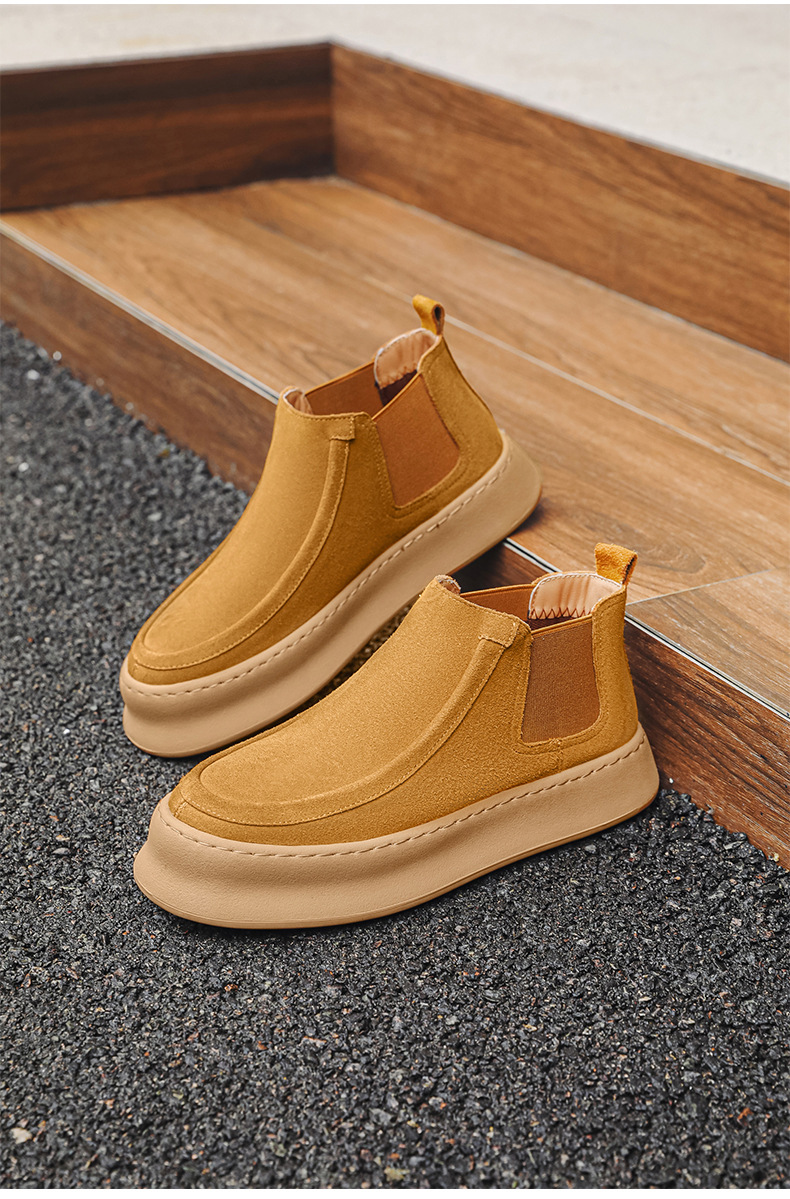 마틴 부츠 여름 정품 가죽 프로스트 발목 부츠 하이 탑 슬립 온 남성 신발 플랫폼 증가 영국 스타일 첼시 부츠