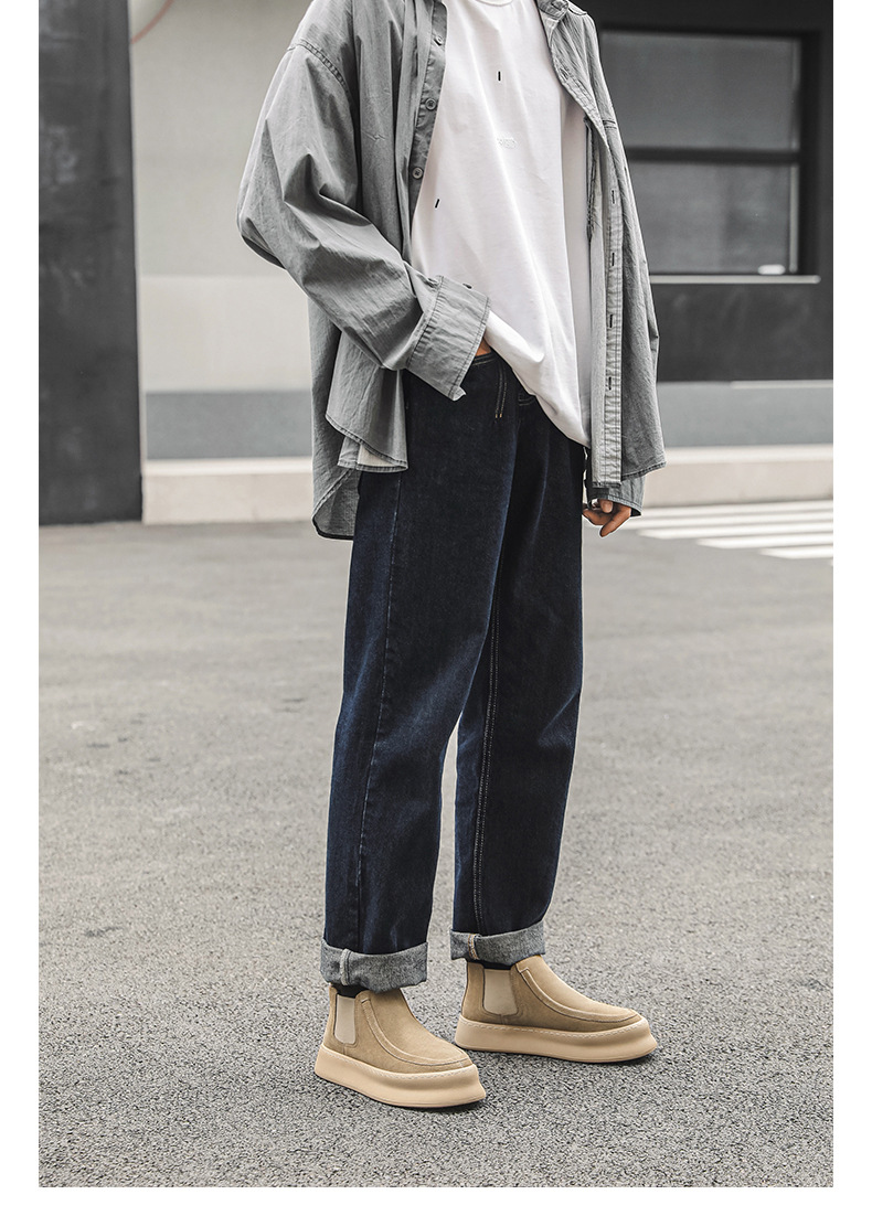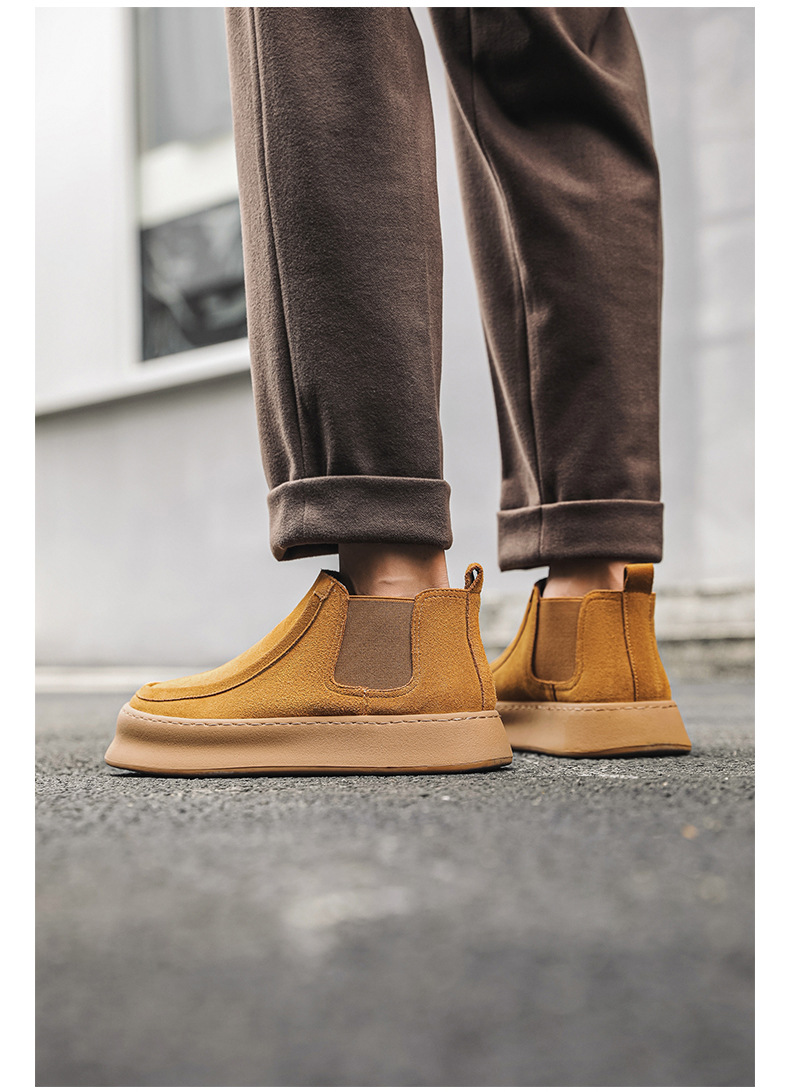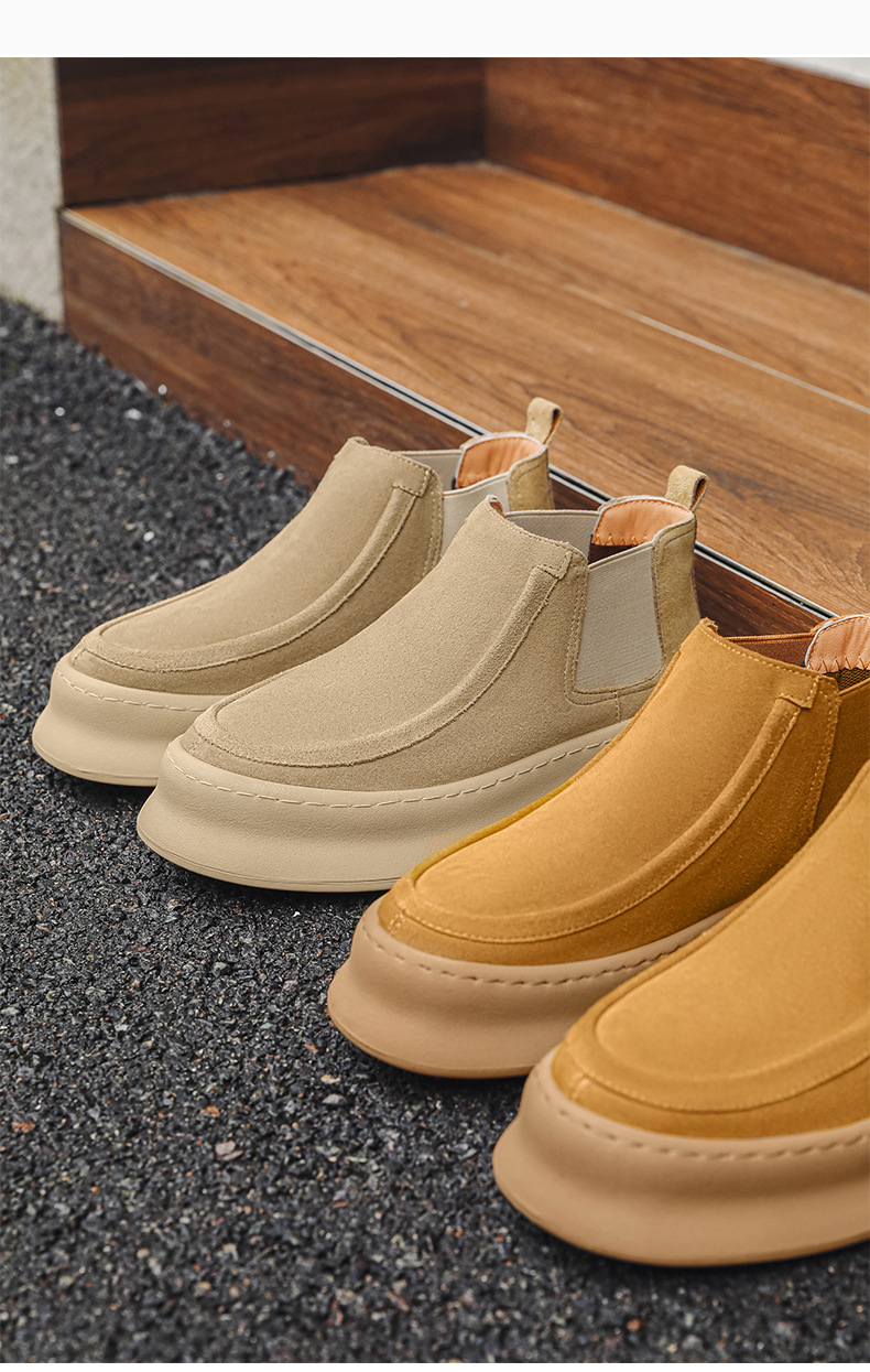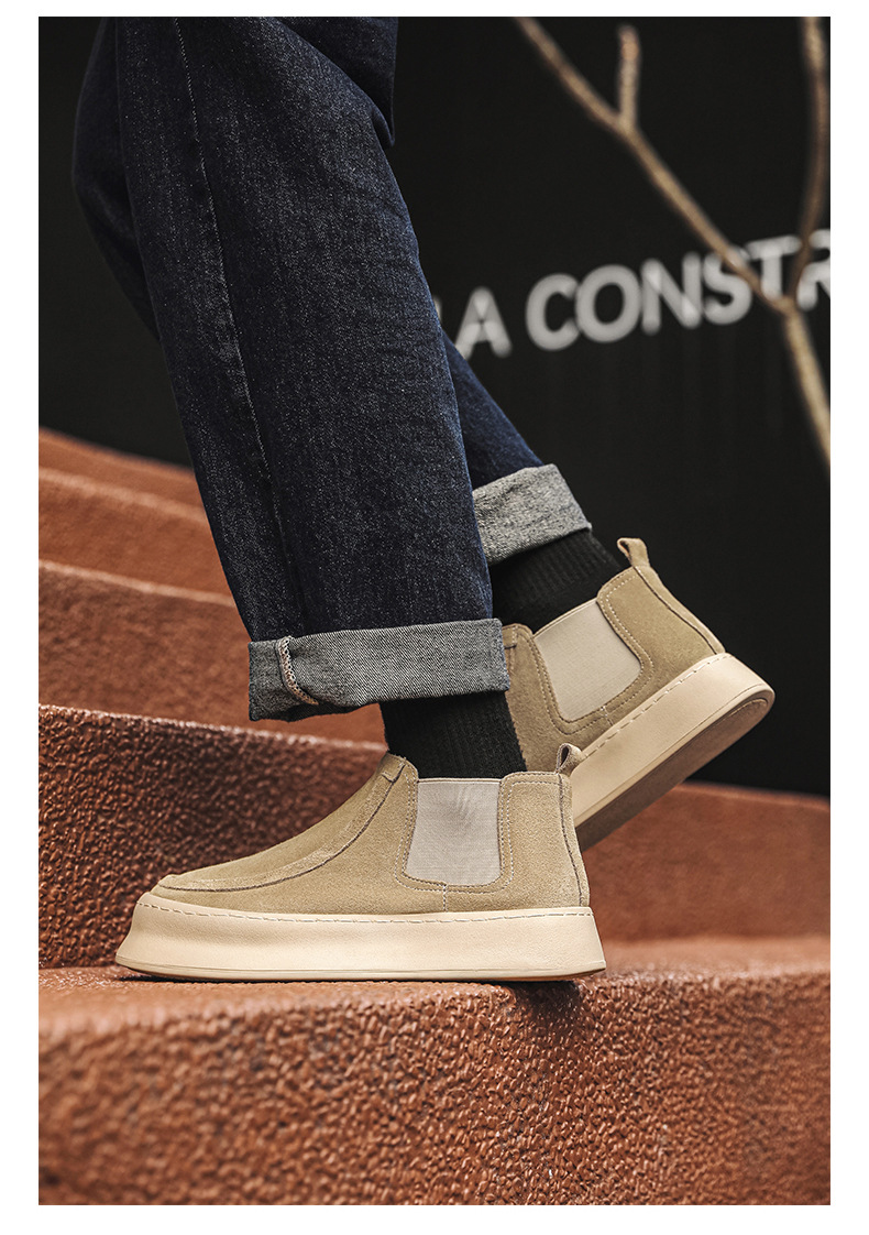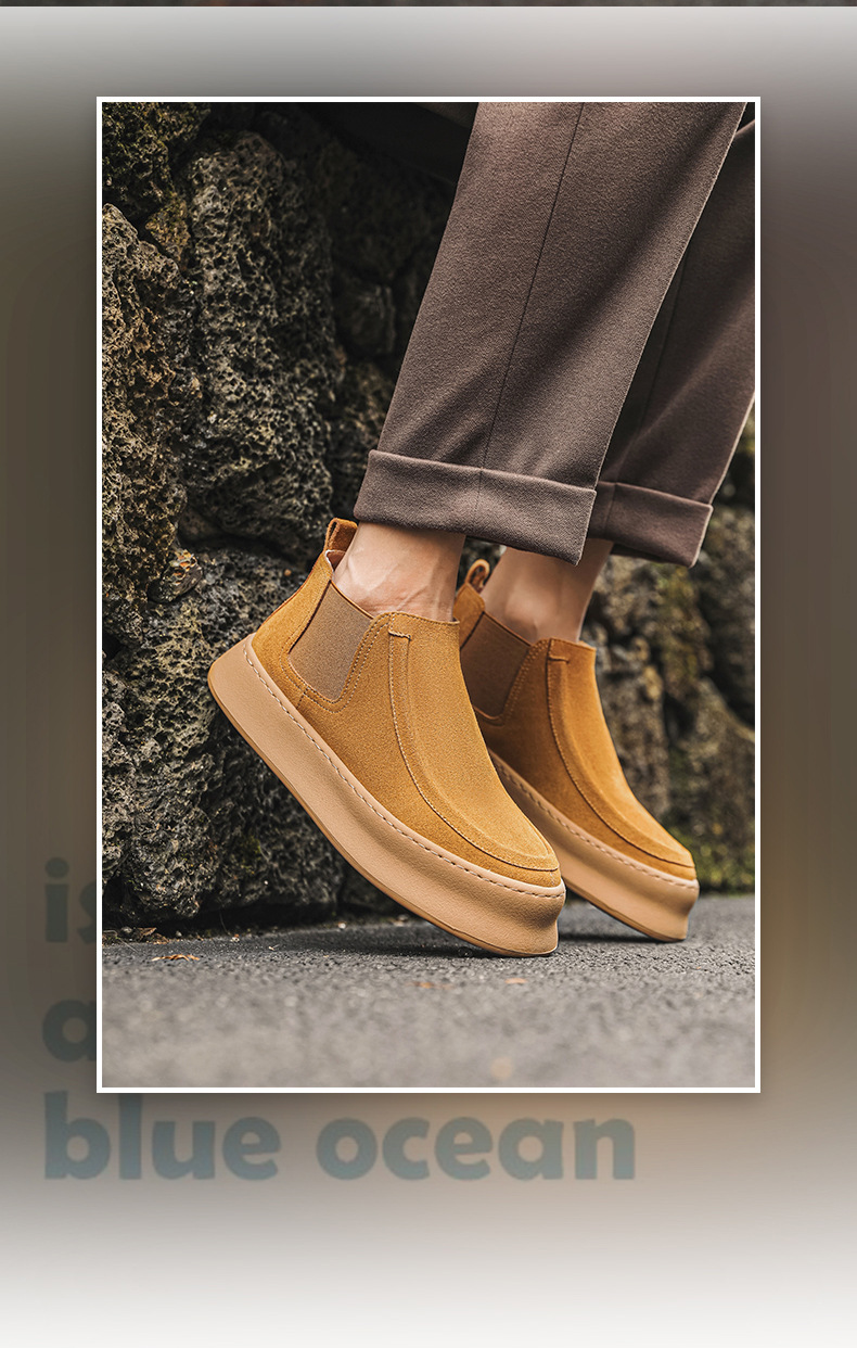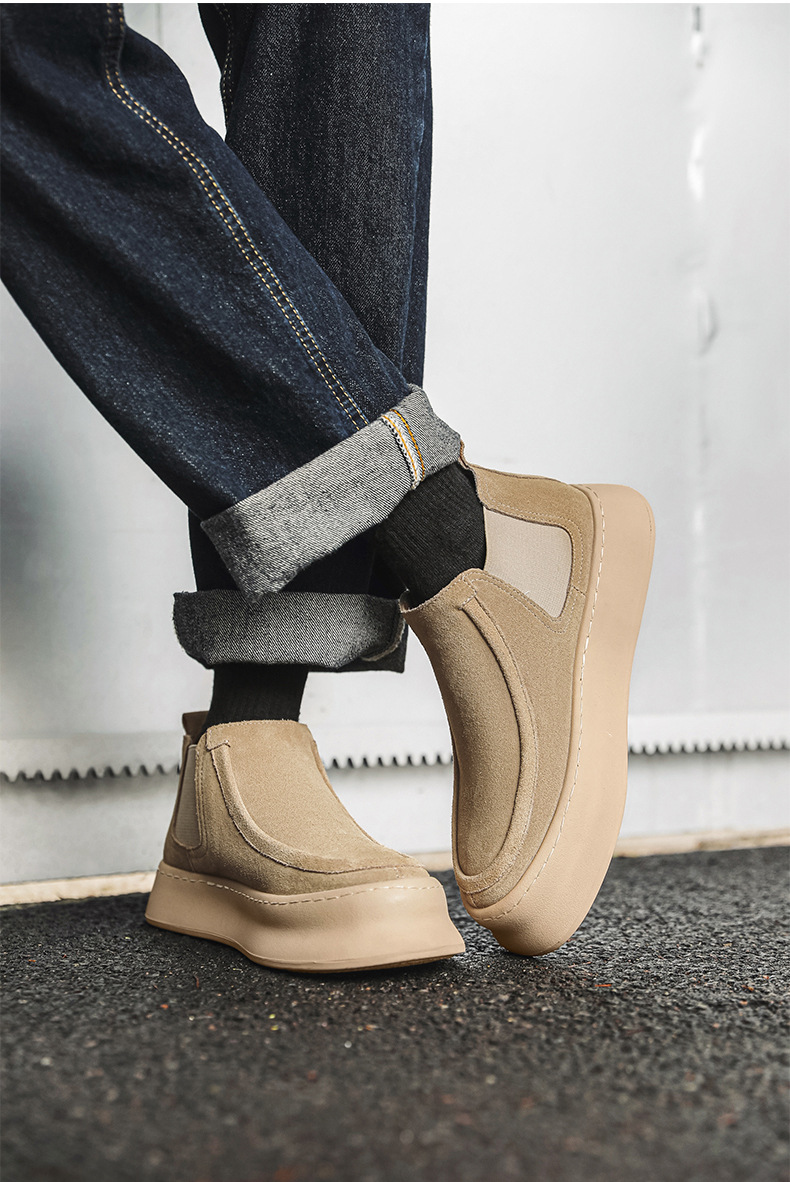마틴 부츠 여름 정품 가죽 프로스트 발목 부츠 하이 탑 슬립 온 남성 신발 플랫폼 증가 영국 스타일 첼시 부츠스토어 가기