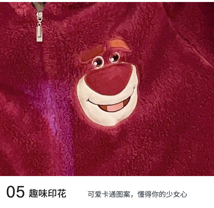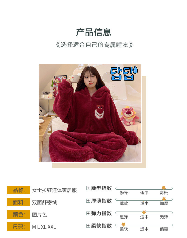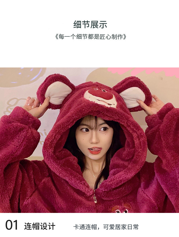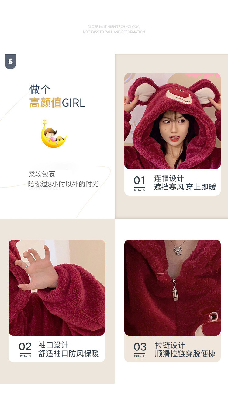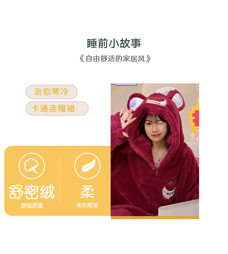 딸기곰 후드 잠옷 여성용 가을 겨울 산호 벨벳 따뜻한 절친복 파티 외출 가능 원피스 홈웨어스토어 가기