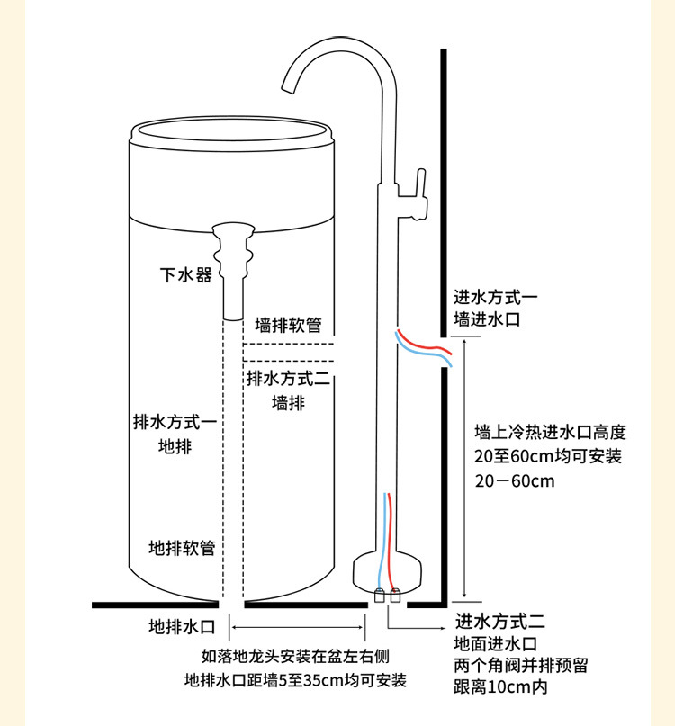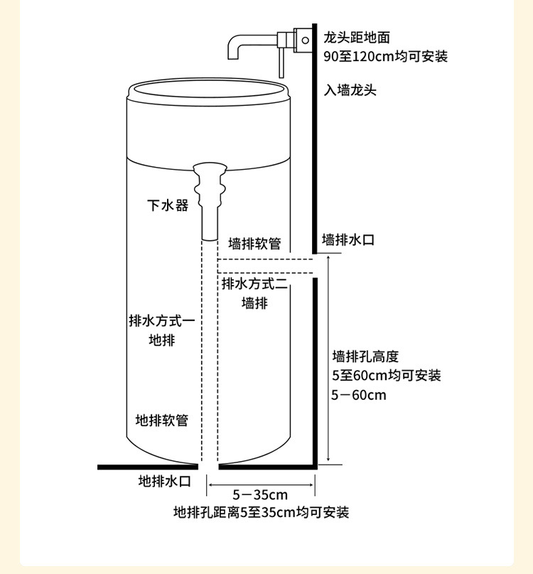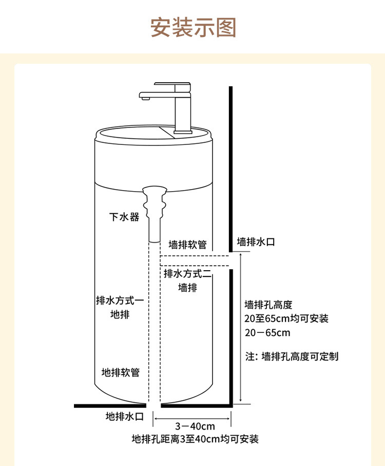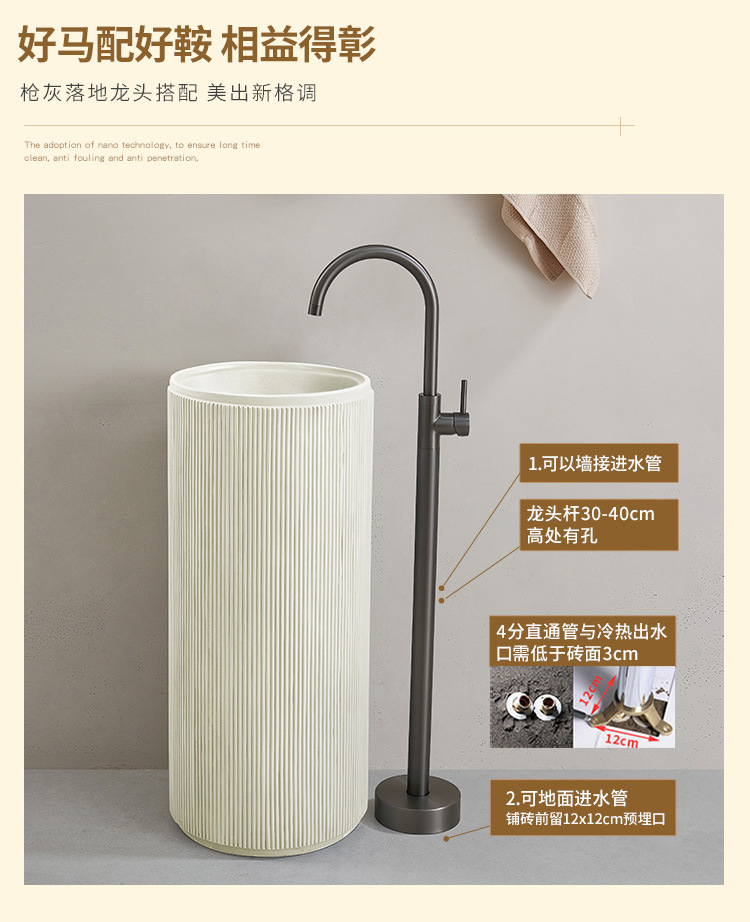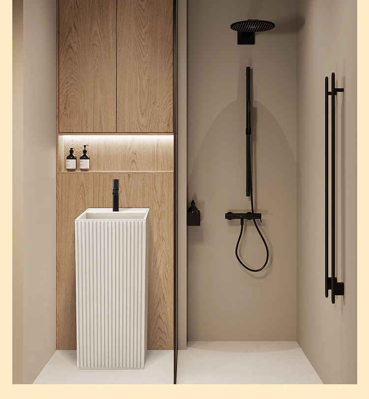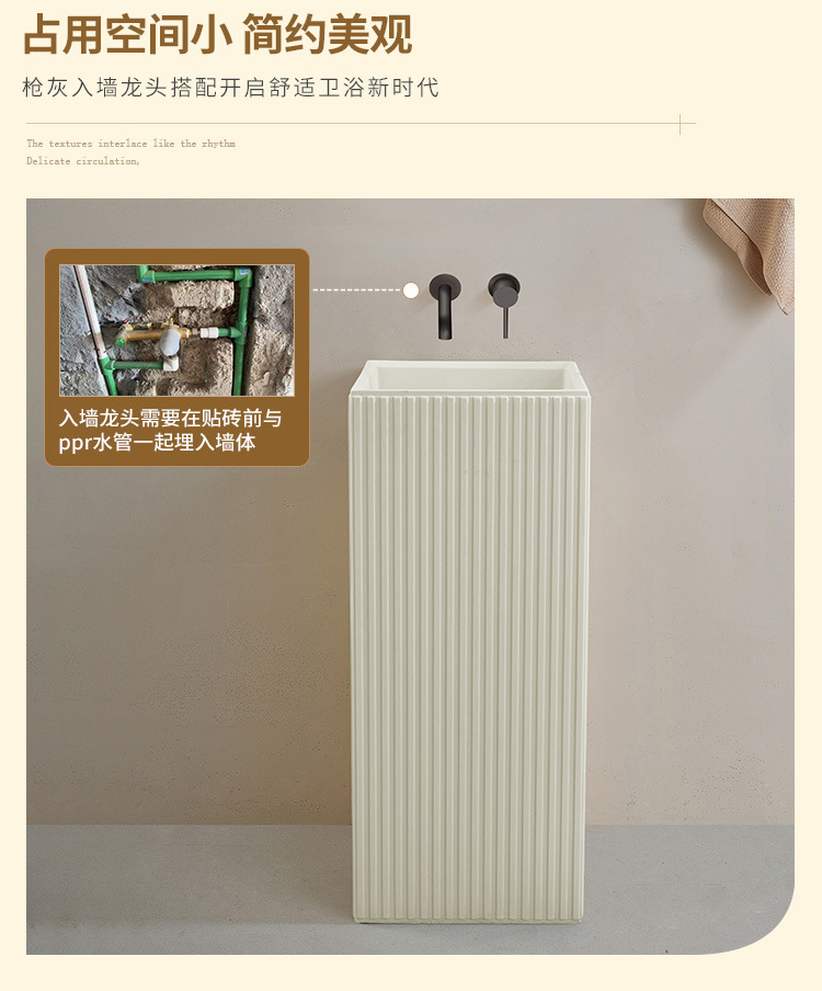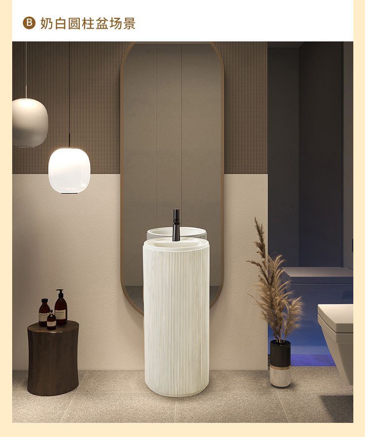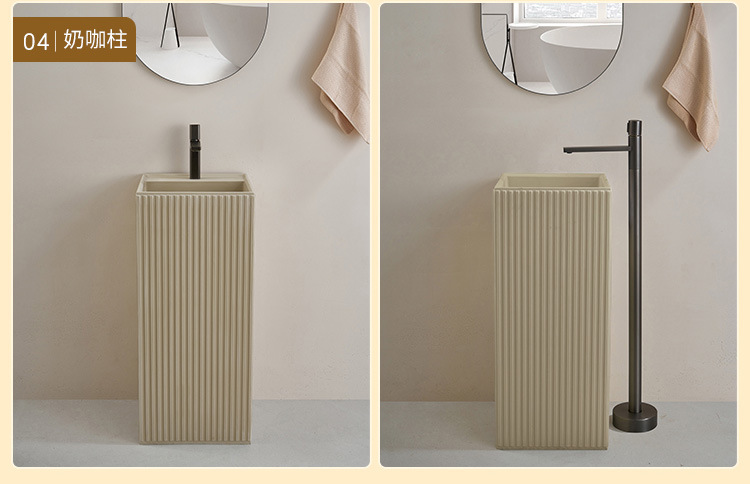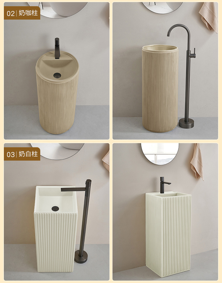 크림 스타일 기둥 분지 바닥 서 통합 아트 싱크 욕실 스몰 사이즈 크기 아파트 야외 세면대