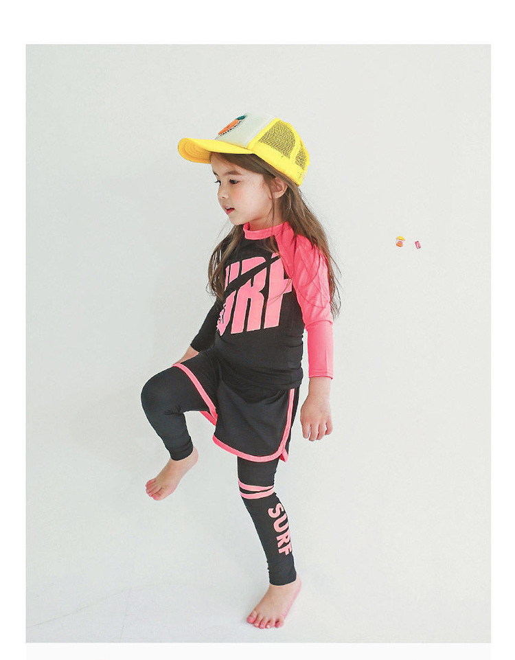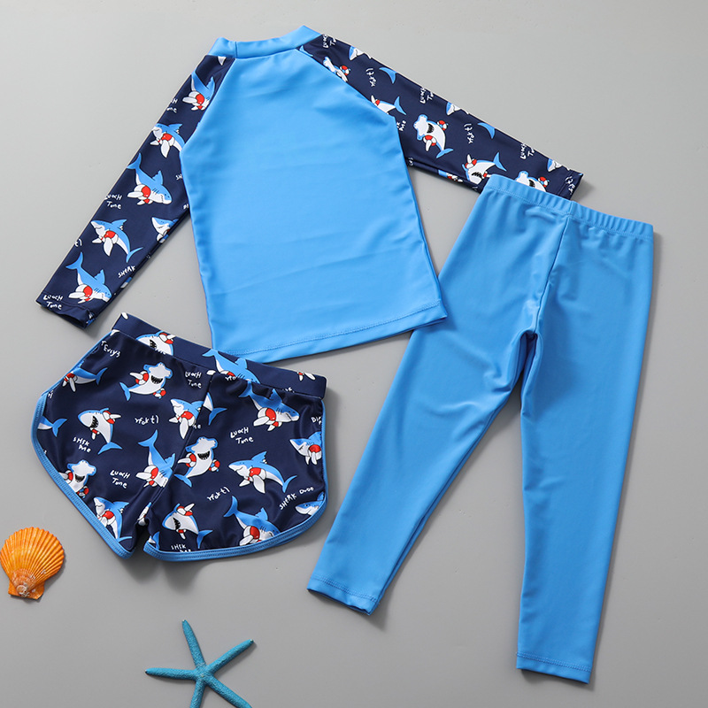 2024 새로운 어린이 수영복 소년 및 소녀 다이빙 세트 빠른 건조 선 스크린 긴팔 바지 소녀 3 피스 세트