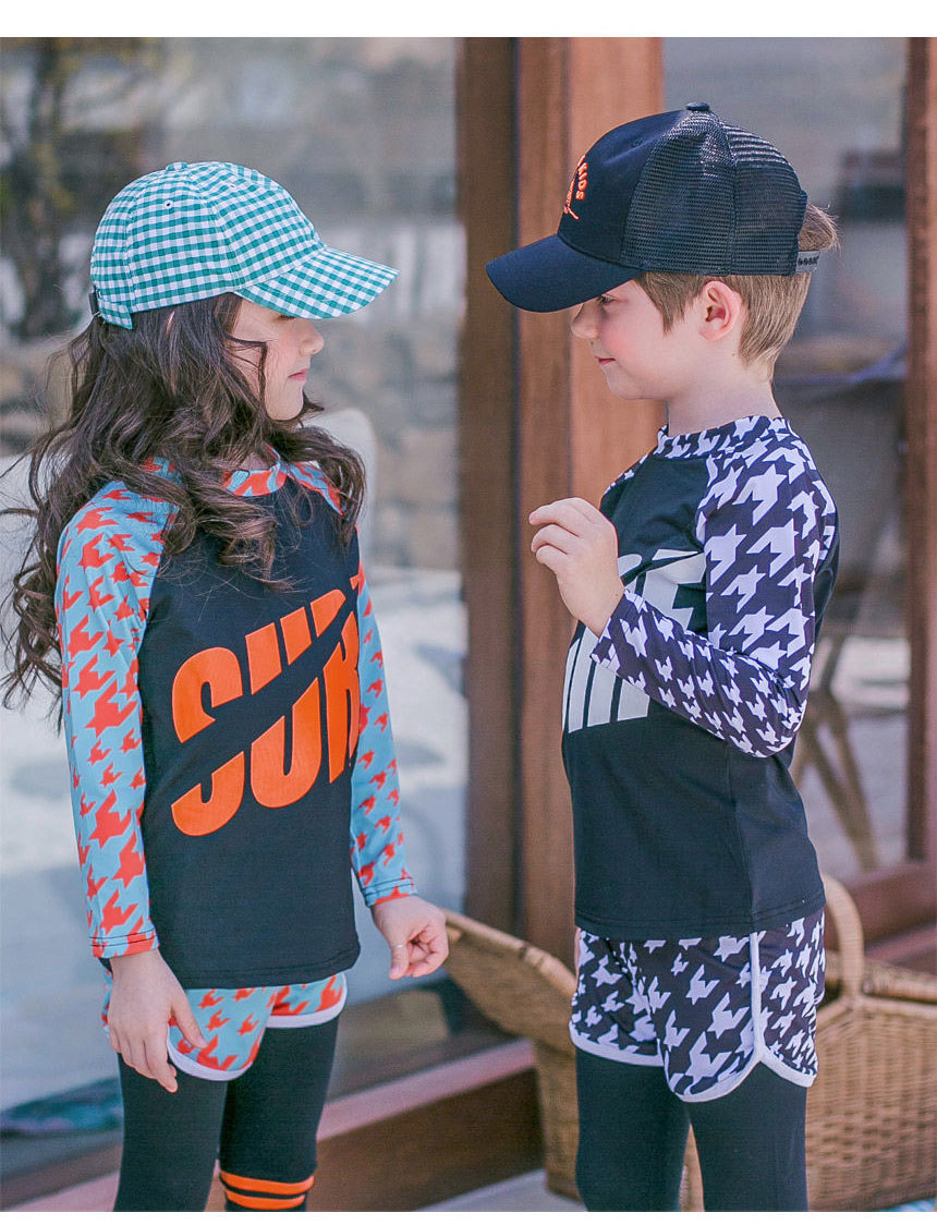 2024 새로운 어린이 수영복 소년 및 소녀 다이빙 세트 빠른 건조 선 스크린 긴팔 바지 소녀 3 피스 세트스토어 가기
