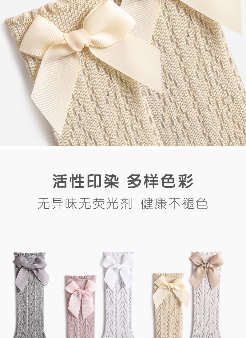 유아 및 어린이용 여름 양말, 리본 장식의 긴 메쉬 모기 방지 양말, 한국 스타일의 공주풍, 다리를 조이지 않는 루즈핏, 통기성이 뛰어난 하이컷 양말