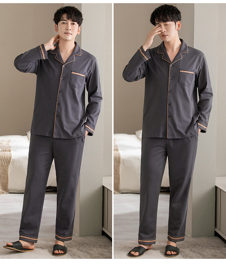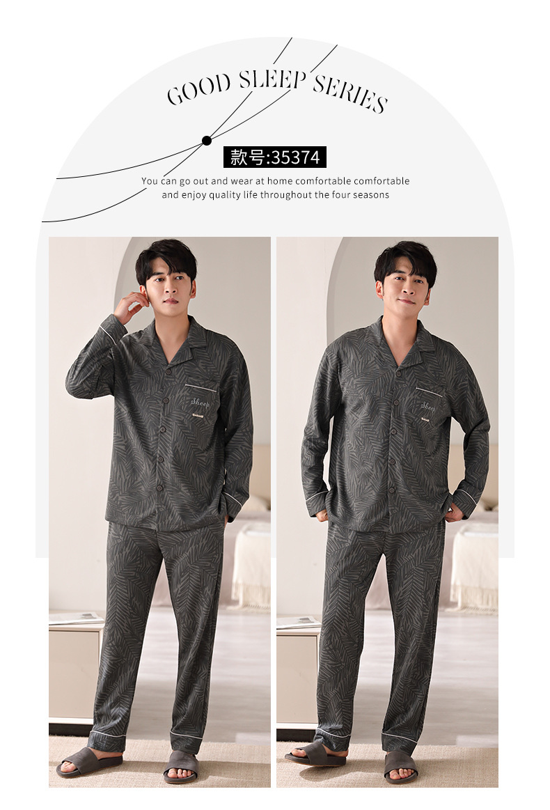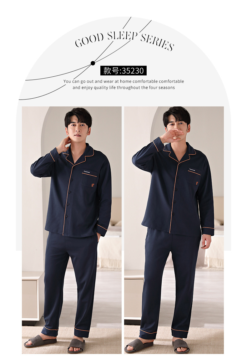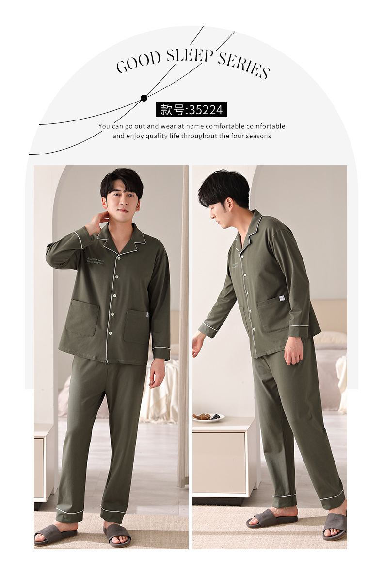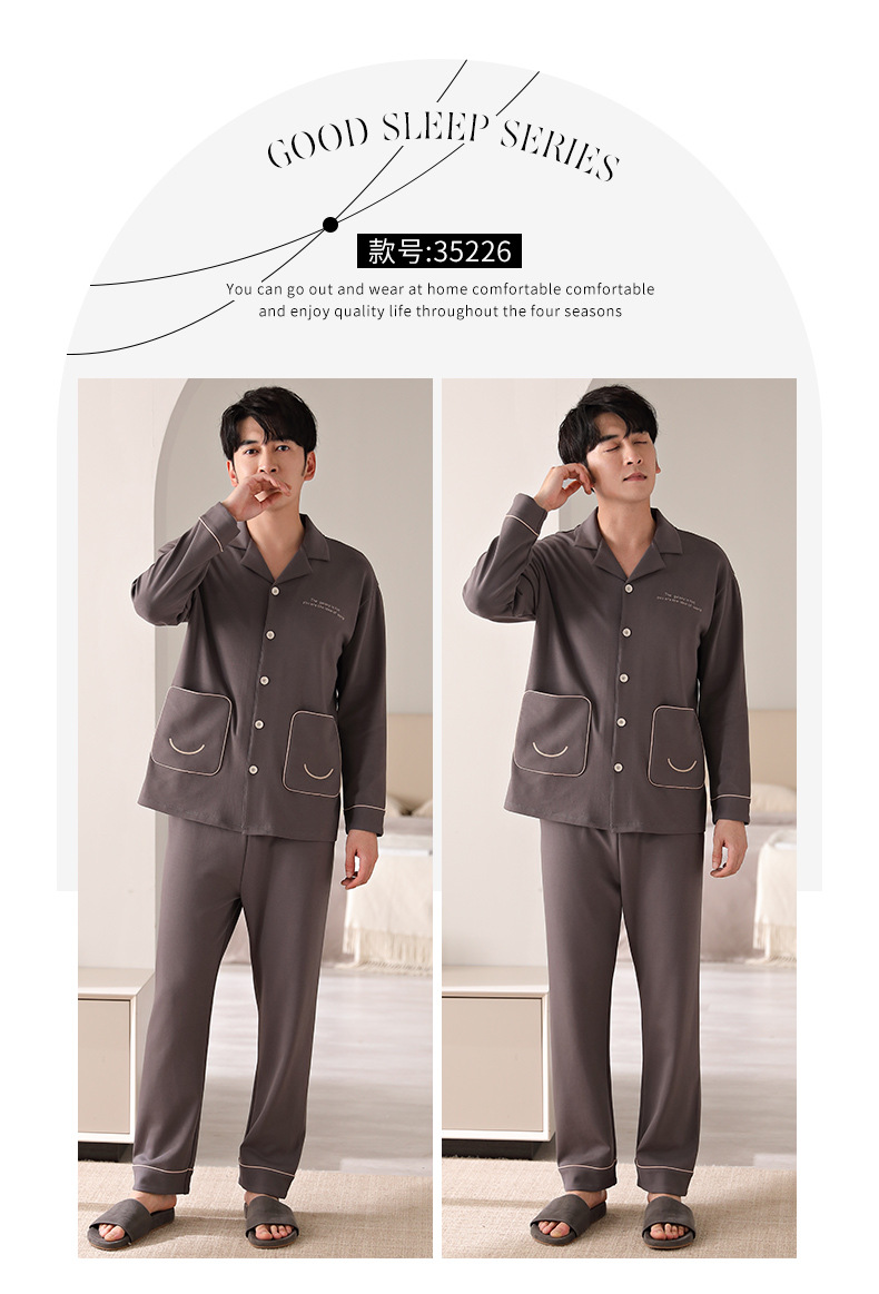 최고급 잠옷 남자의 봄과 가을 순면 긴팔 카디건 간단한 청춘 가정 옷 세트 가을과 겨울 외복스토어 가기