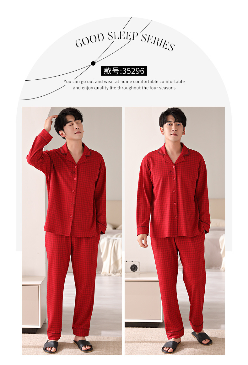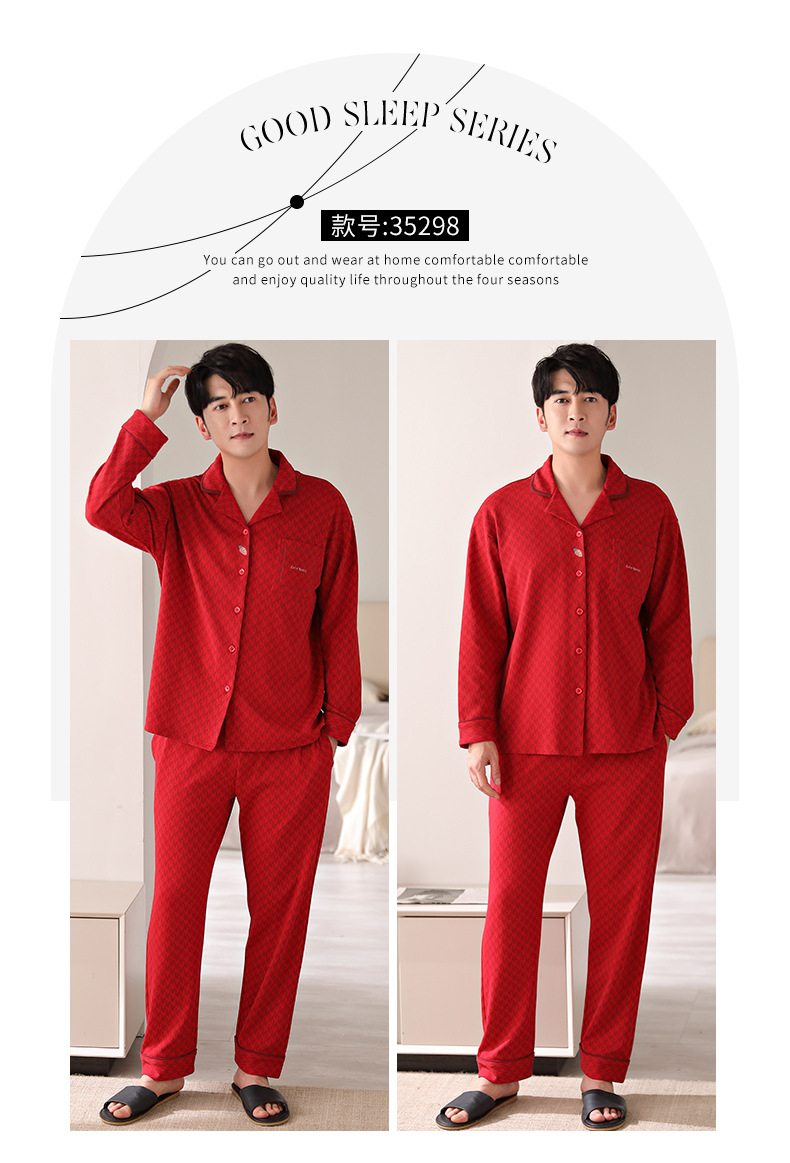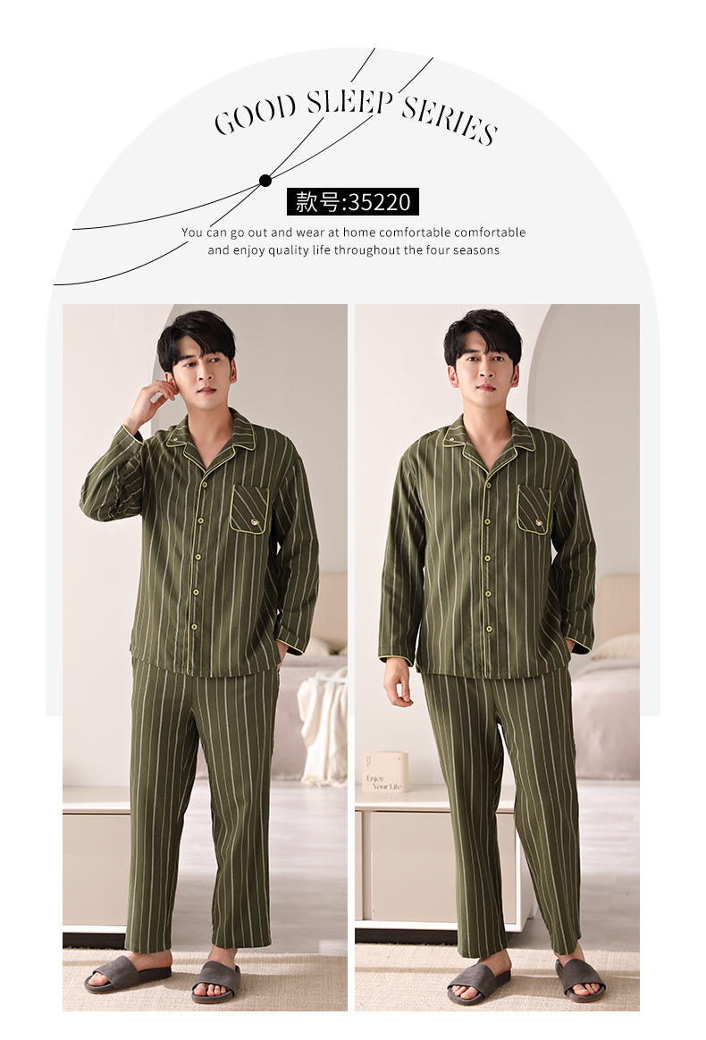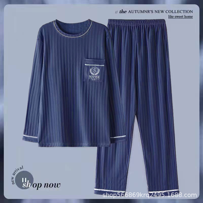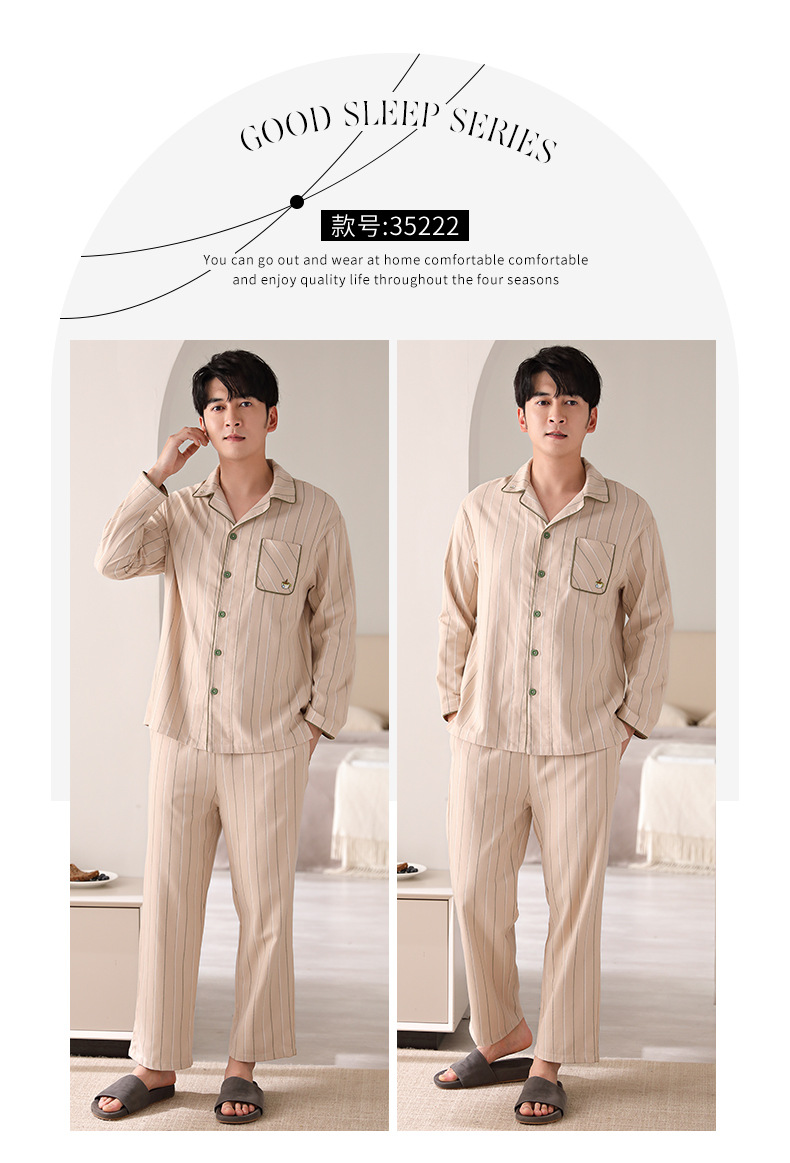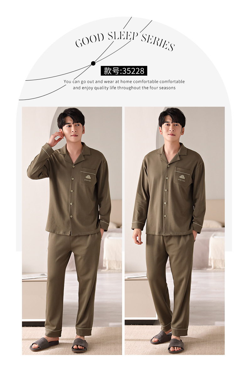 최고급 잠옷 남자의 봄과 가을 순면 긴팔 카디건 간단한 청춘 가정 옷 세트 가을과 겨울 외복스토어 가기