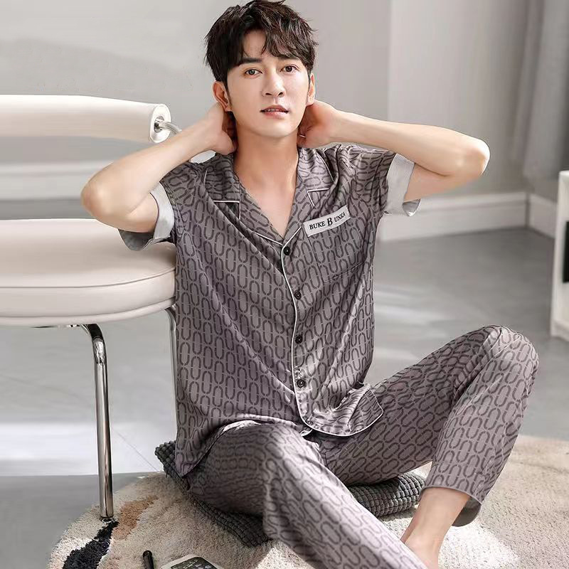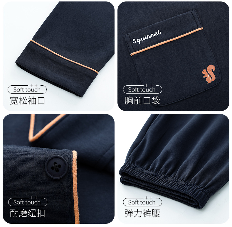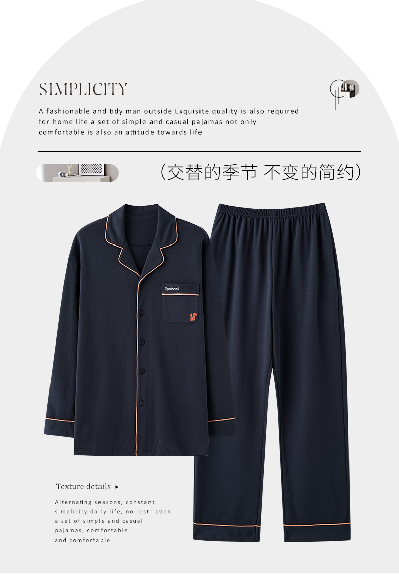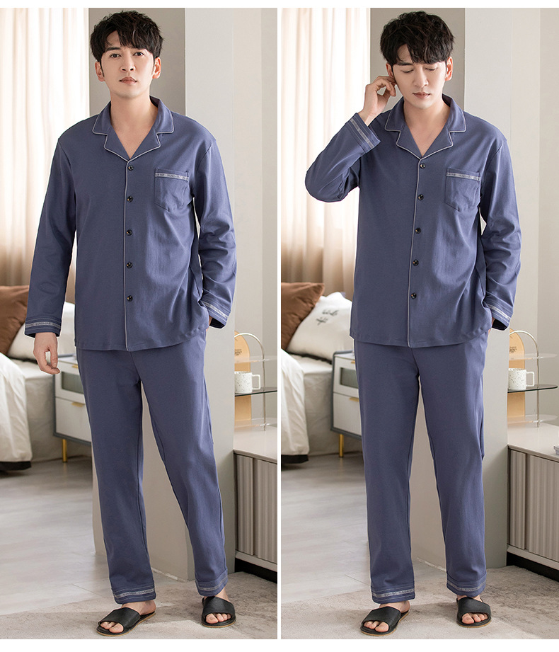 최고급 잠옷 남자의 봄과 가을 순면 긴팔 카디건 간단한 청춘 가정 옷 세트 가을과 겨울 외복