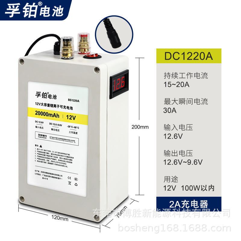 • 12V 20Ah 배터리 (스크린 및 단자 포함, 2A 충전기 증정)