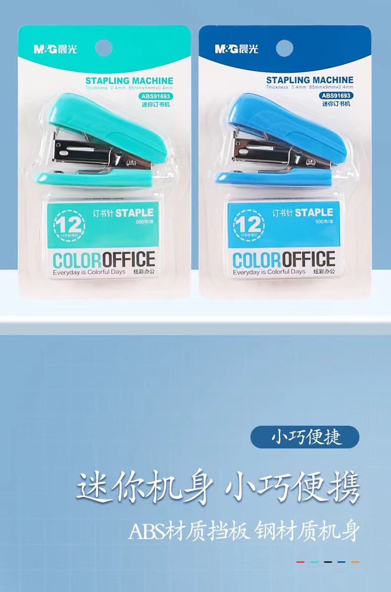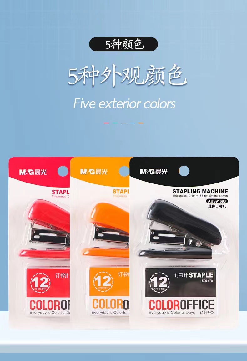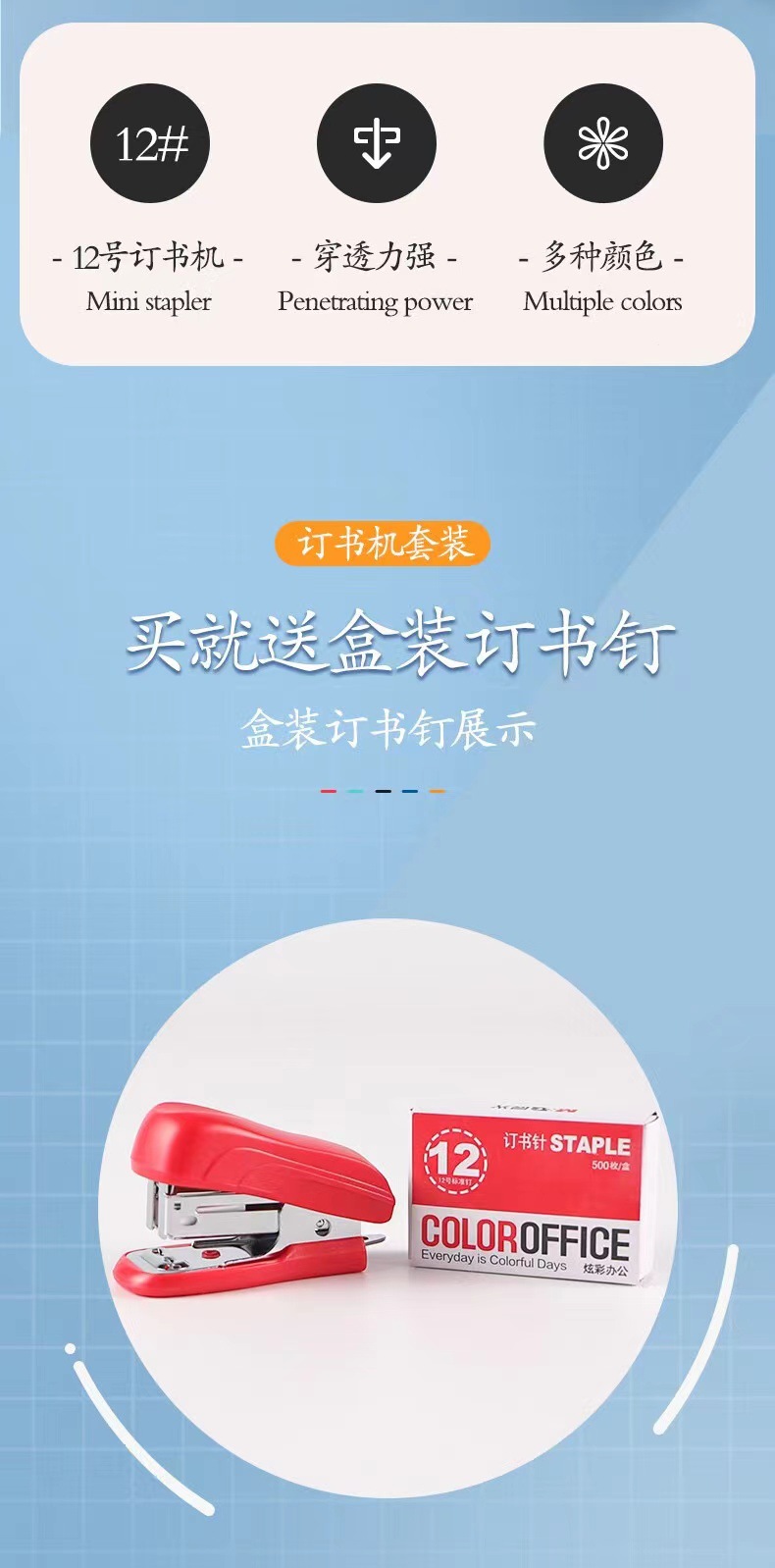 Chenguang 91693 미니 스테이플러 다채로운 사무실 작은 스테이플러 No.12 유니버설 학생 휴대용 스테이플러