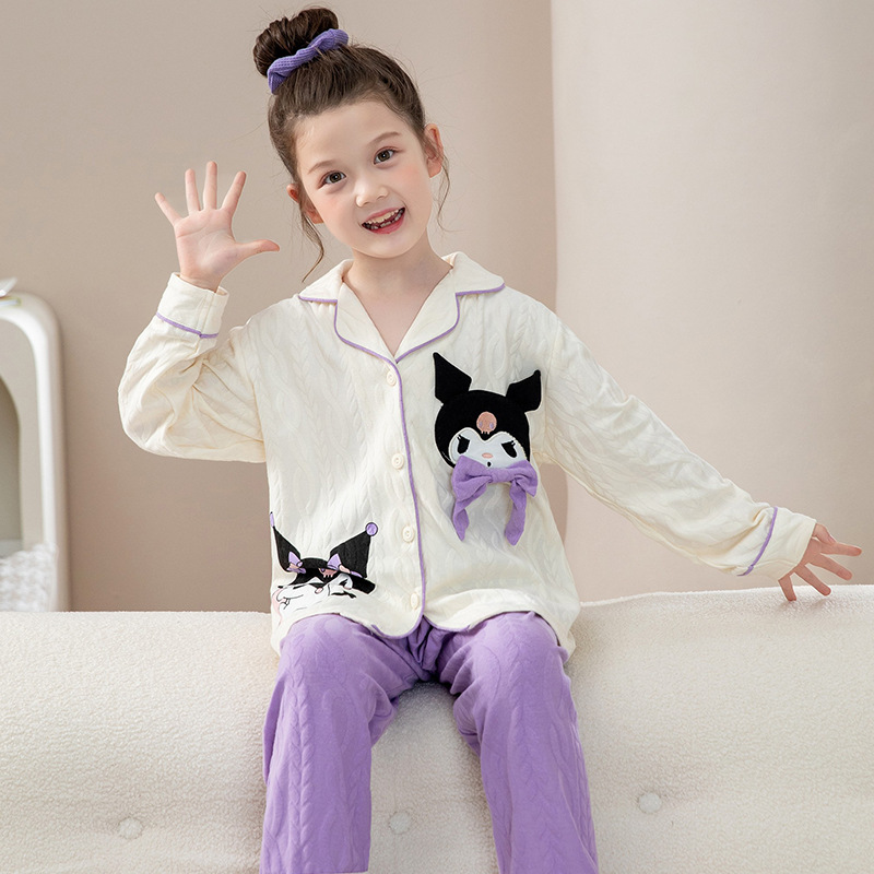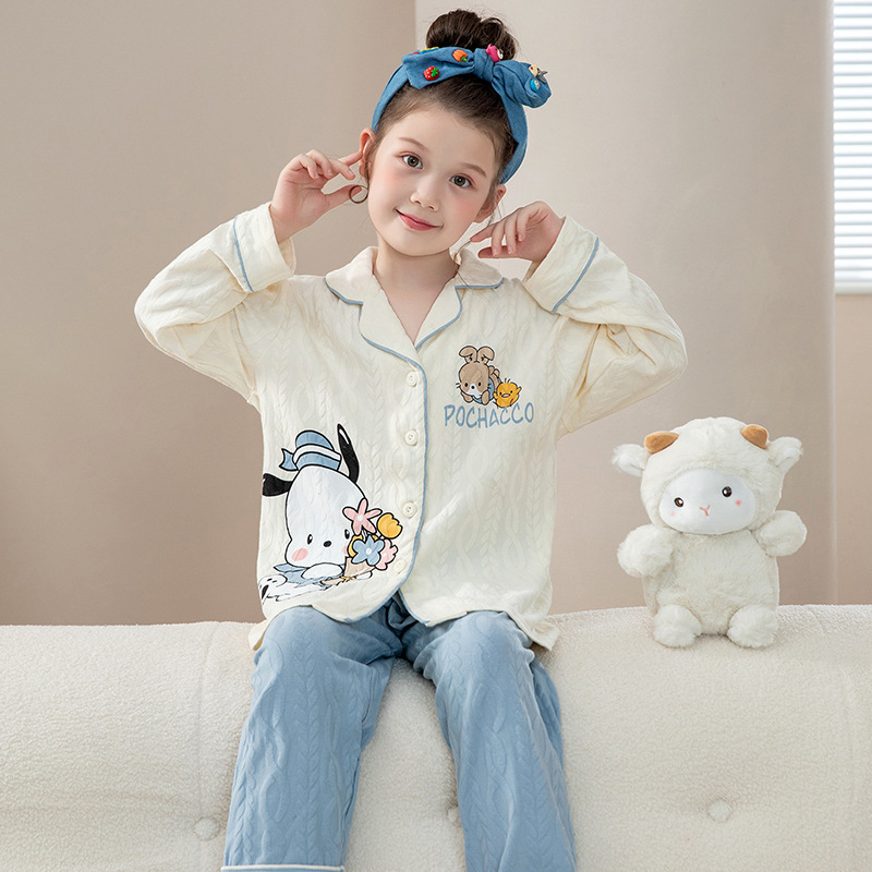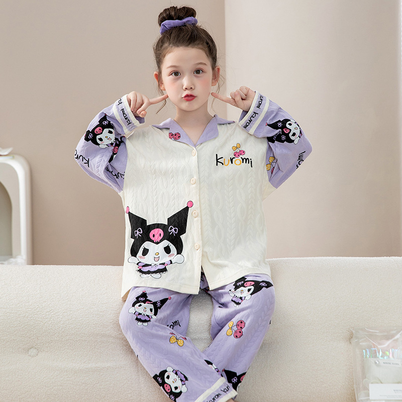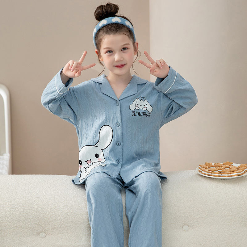 소녀 잠옷 순수한면 반팔 여름 얇은 소녀의 아기 만화 큰 어린이 겉옷 홈 의류 세트