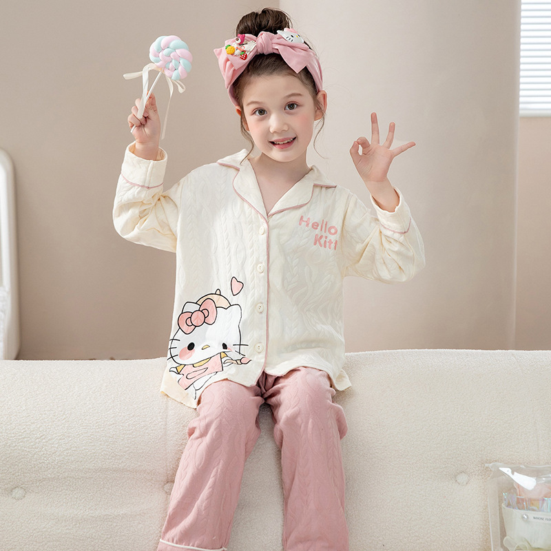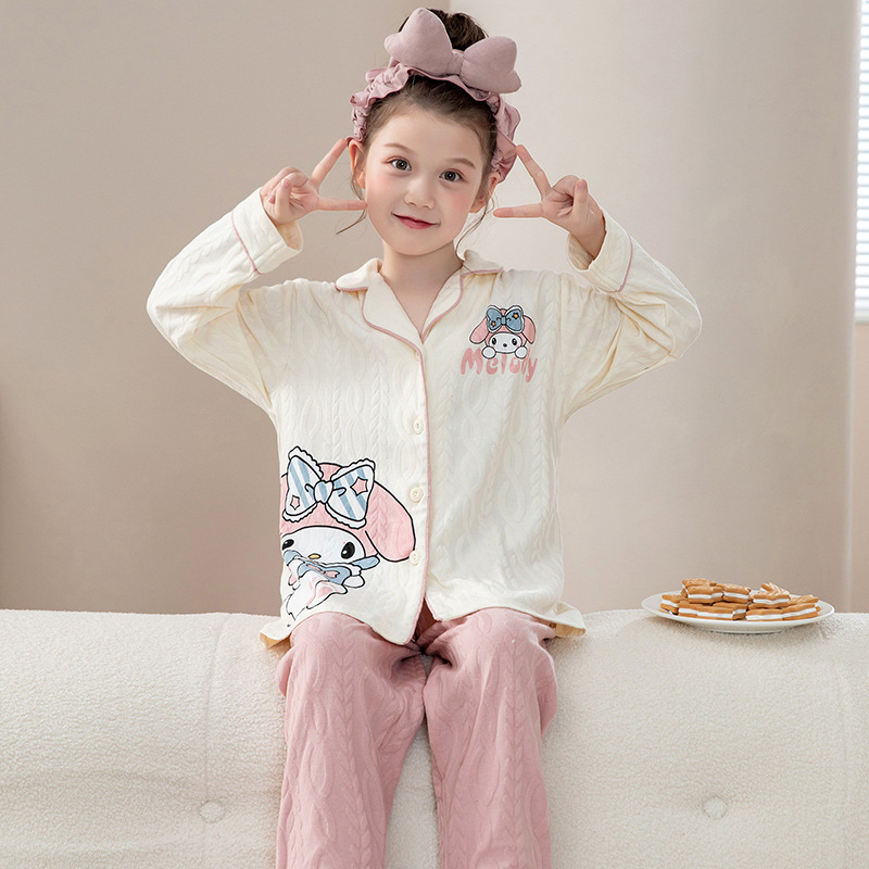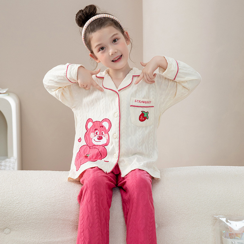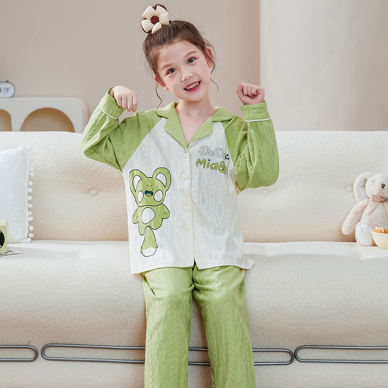 소녀 잠옷 순수한면 반팔 여름 얇은 소녀의 아기 만화 큰 어린이 겉옷 홈 의류 세트스토어 가기