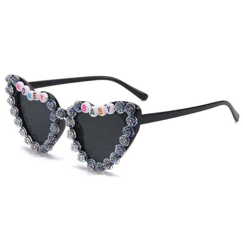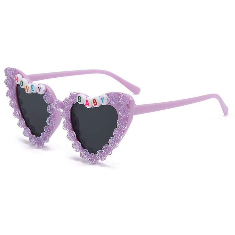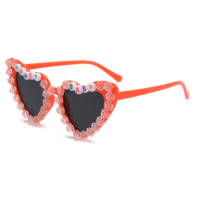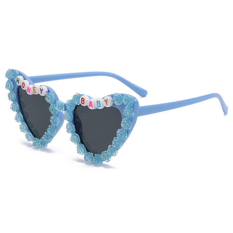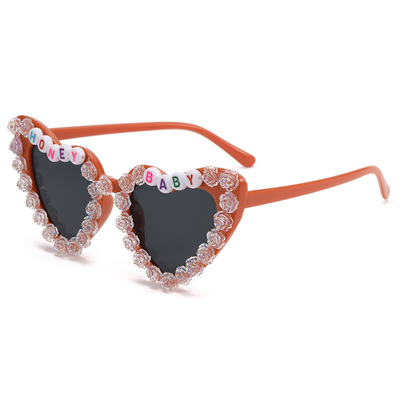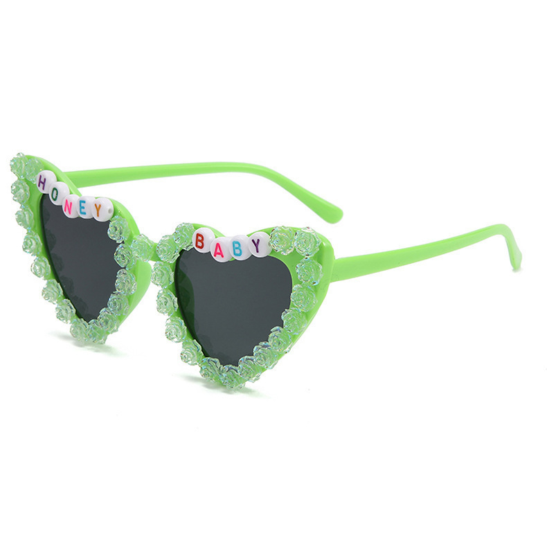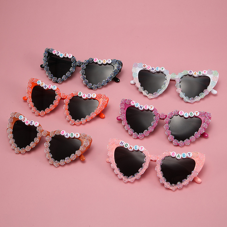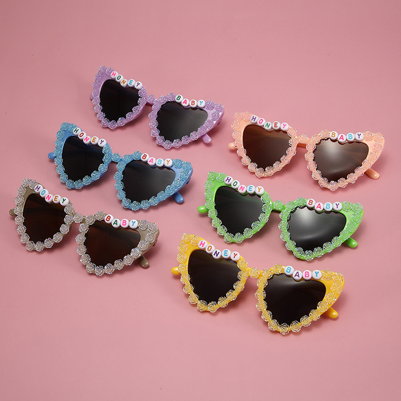 2023 새로운 패션 어린이 사랑 선글라스 오로라 장미 선글라스 영어 편지 아기 안경