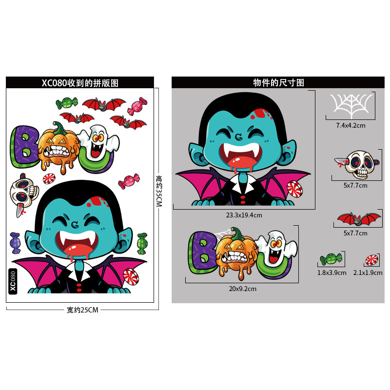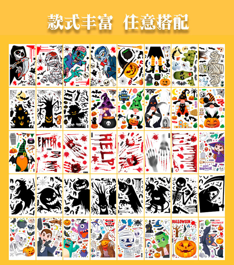 할로윈 장식 유리 스티커 죽음 뱀파이어 창 스티커 할로윈 레이아웃 마녀 두개골 정적지도스토어 가기