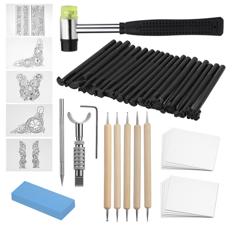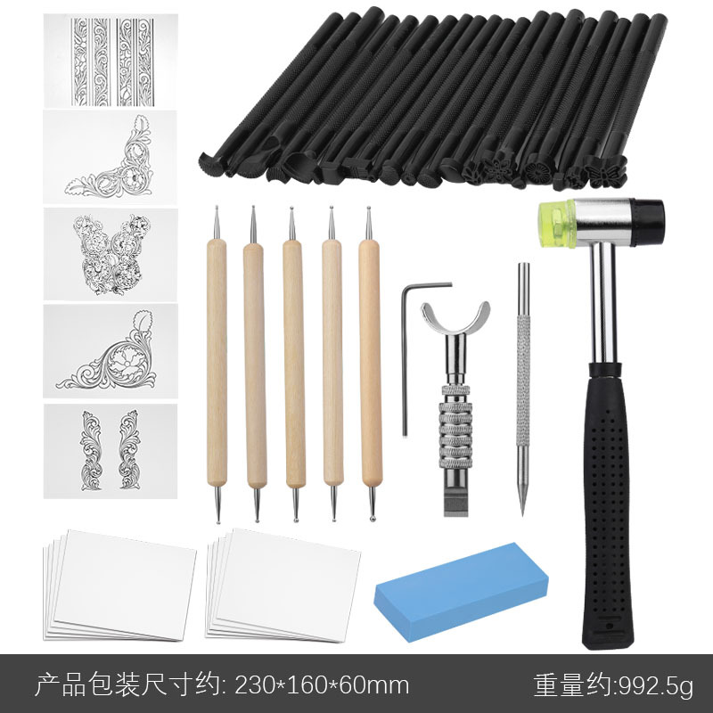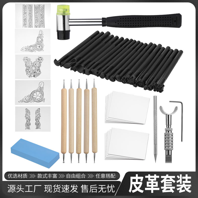 가죽 인쇄 스틱 수동 조각 도구 가죽 조각 가죽 제품 세트 인쇄 도구 포인트 드릴 펜 가죽 조각 추적 펜