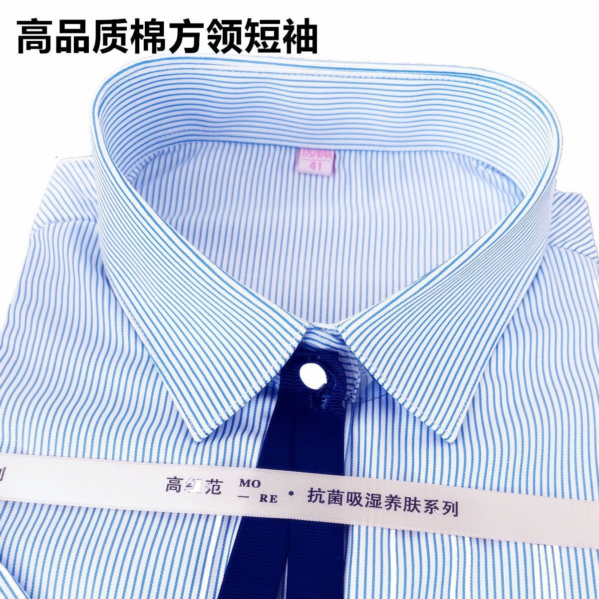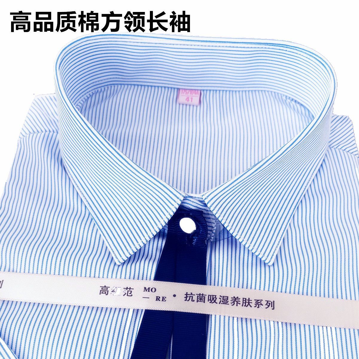 은행 화이트 블루 스트라이프 셔츠 여성 비즈니스 의류 작업 의류 간결한 버클 추출 가능한 지방 툴링 원피스 셔츠 통통녀스토어 가기