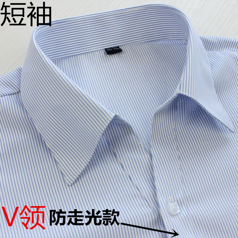 • V 넥 버클 [반소매] 안티 라이트 블루 줄무늬