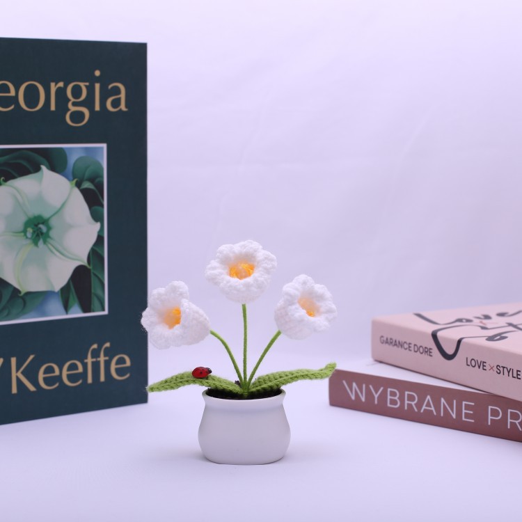 크로 셰 뜨개질 울 인공 꽃 국경 미니 화분에 뜨개질 한 작은 난초 손으로 짠 작은 종 난초 화분