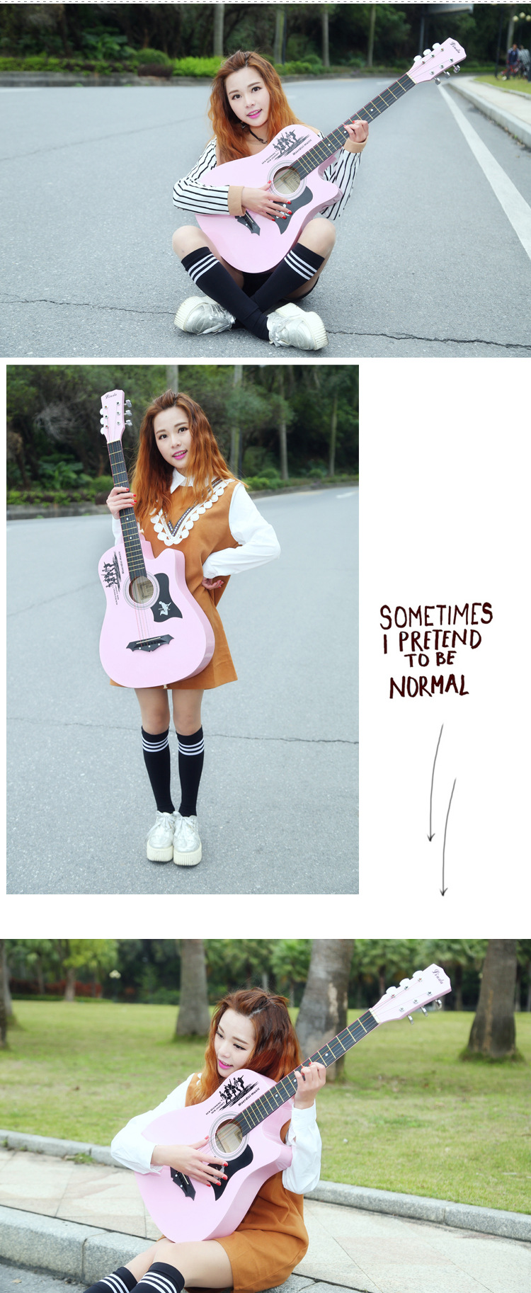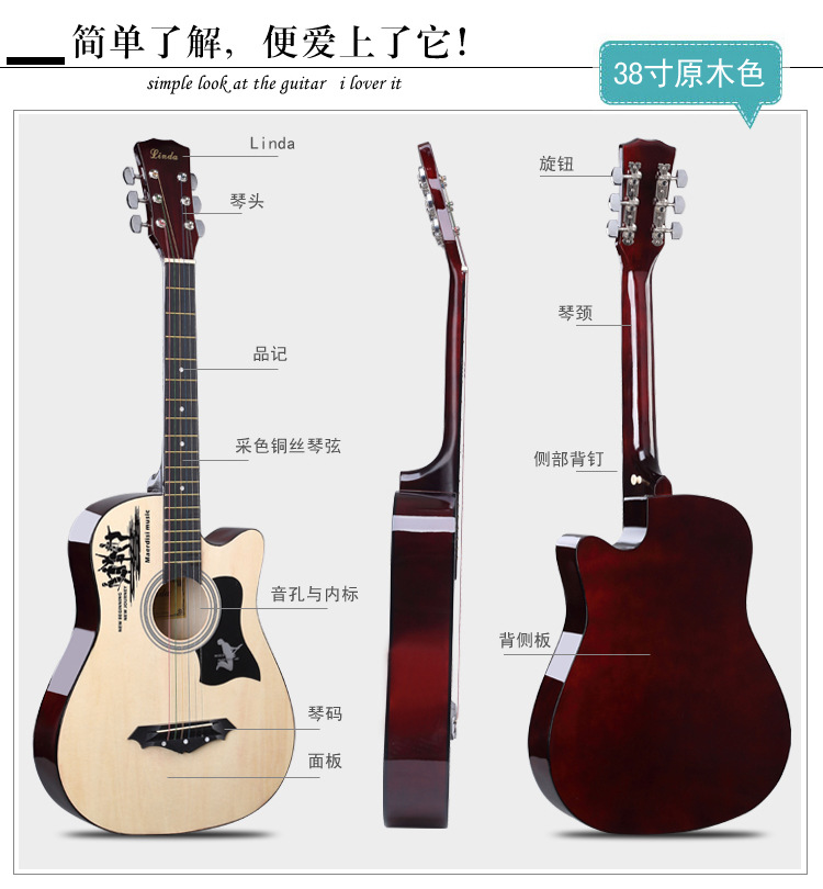 공장 직접 나무 기타 포크 기타 스틸 스트링 그물 레드 초보자 홍보 활동의 전체 세트와 머리카락 세대