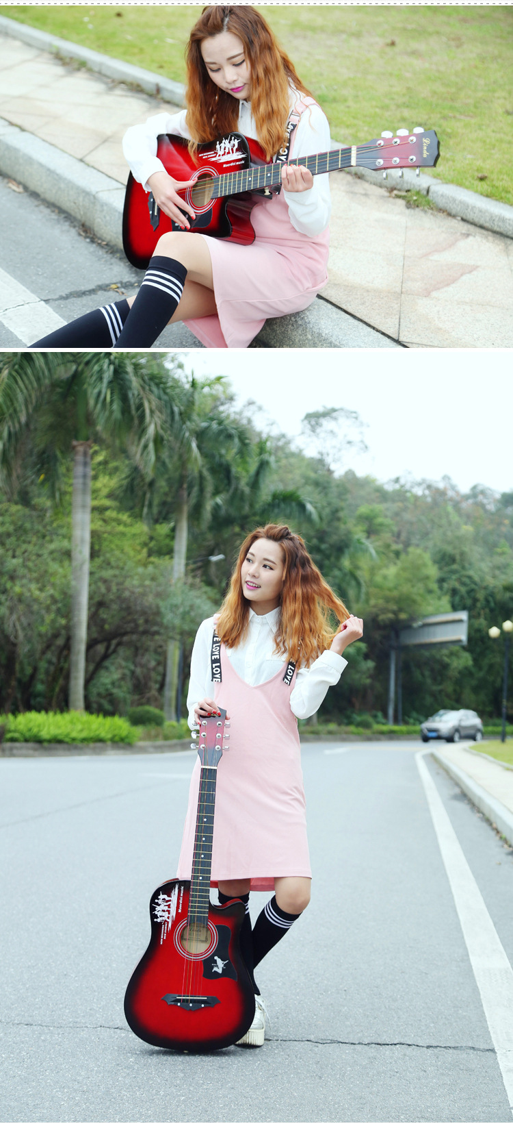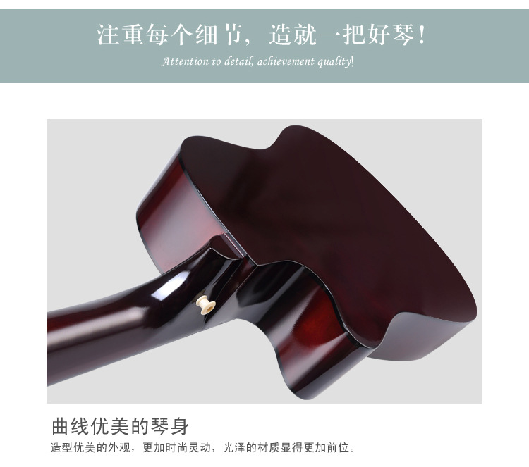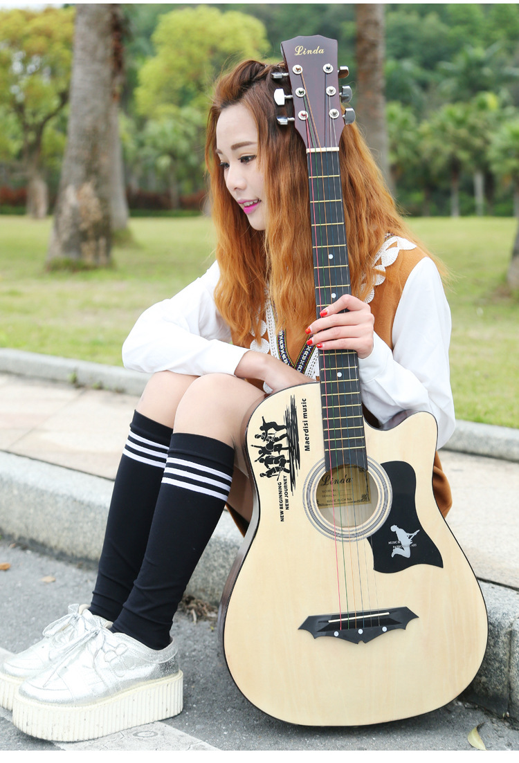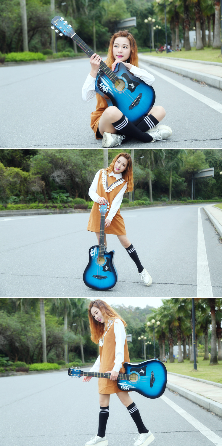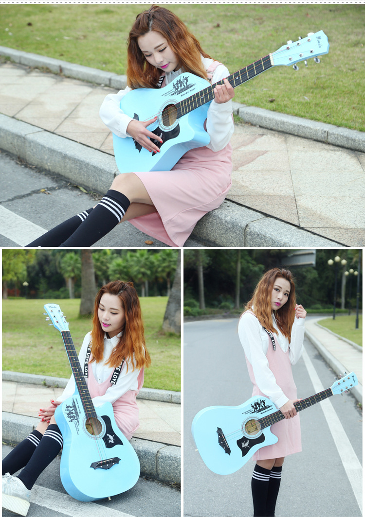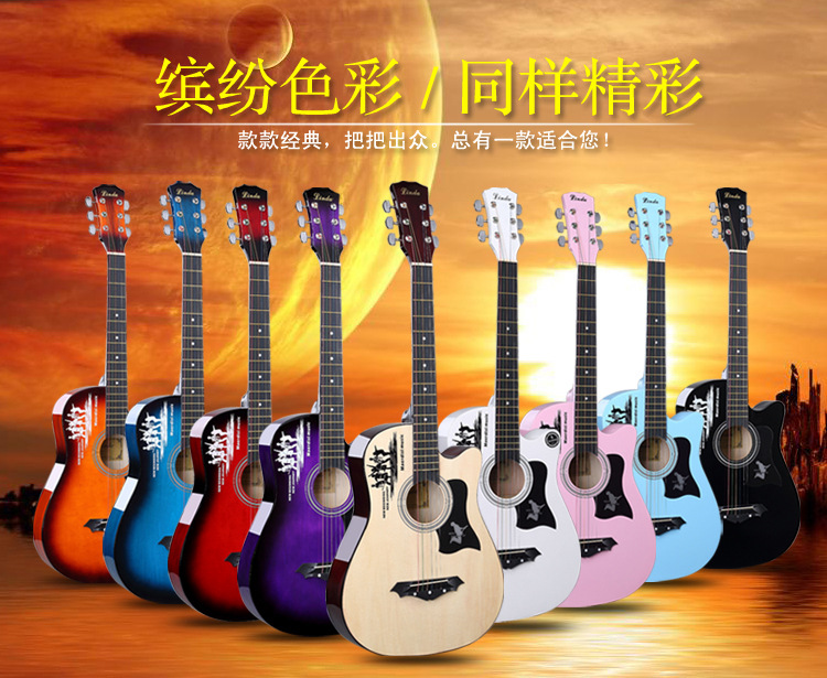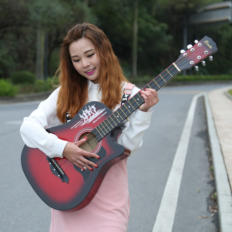 공장 직접 나무 기타 포크 기타 스틸 스트링 그물 레드 초보자 홍보 활동의 전체 세트와 머리카락 세대스토어 가기