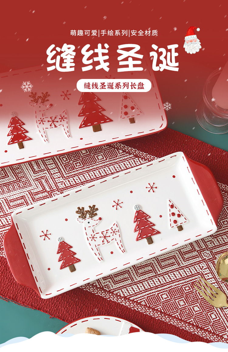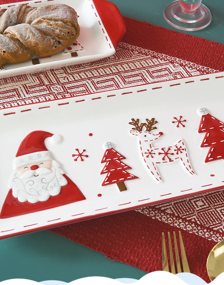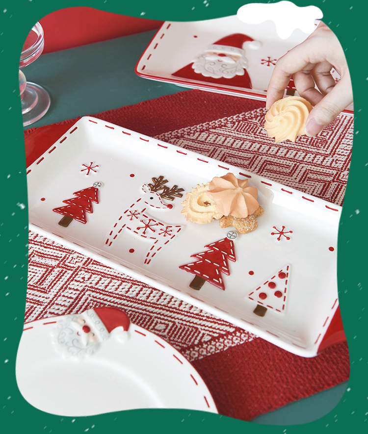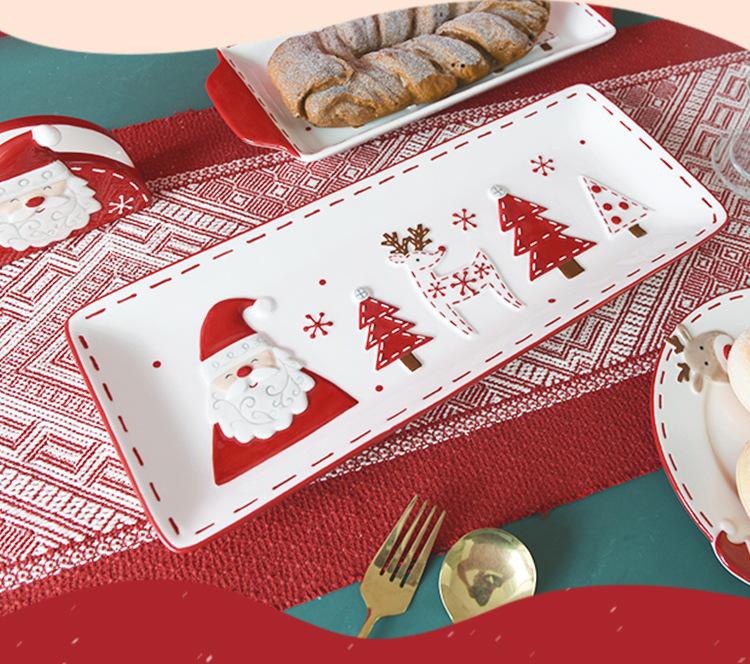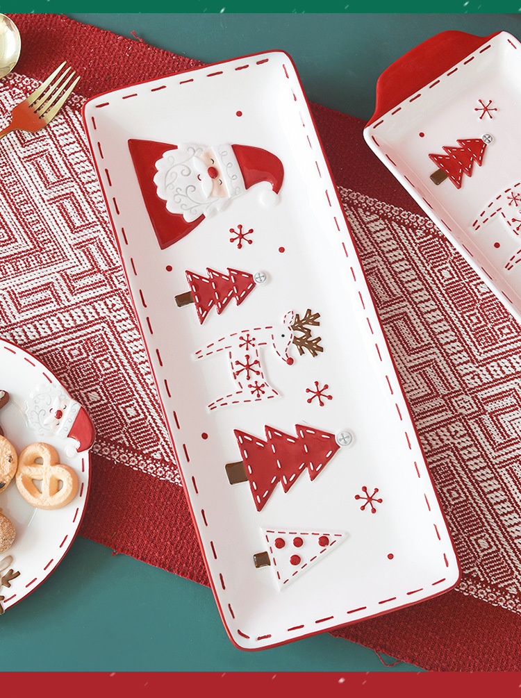 북유럽 산타 클로스 세라믹 플레이트 피쉬 플레이트 가정용 식기 바이노럴 롱 플레이트 양각 접시 서양식 세라믹 플랫 플레이트스토어 가기