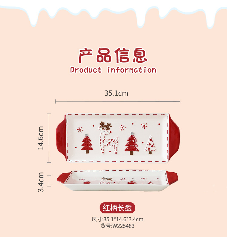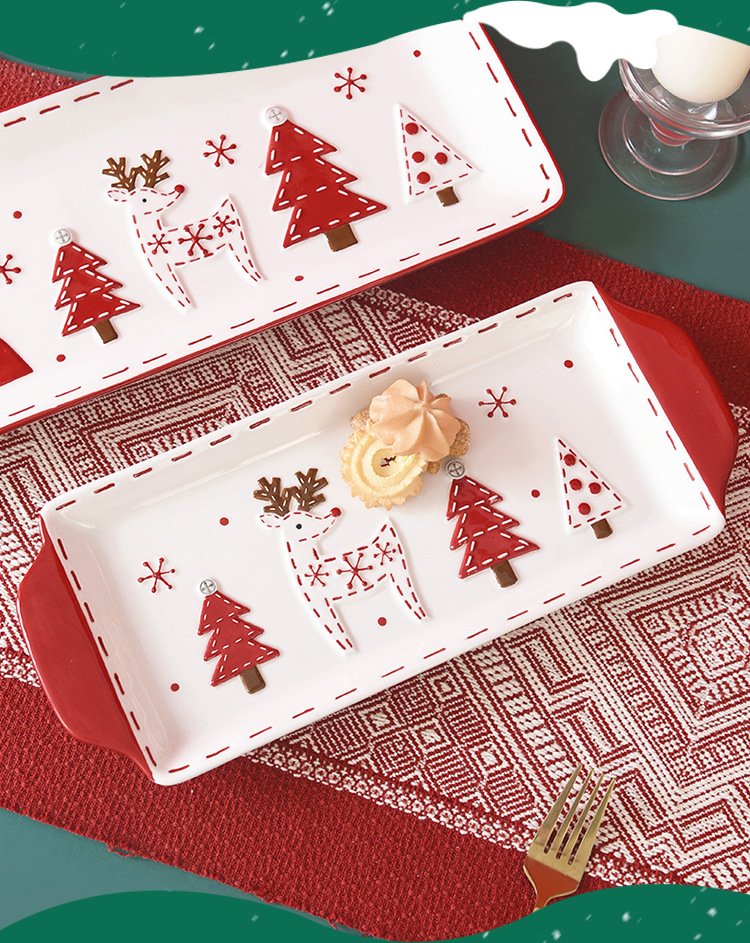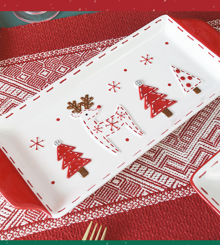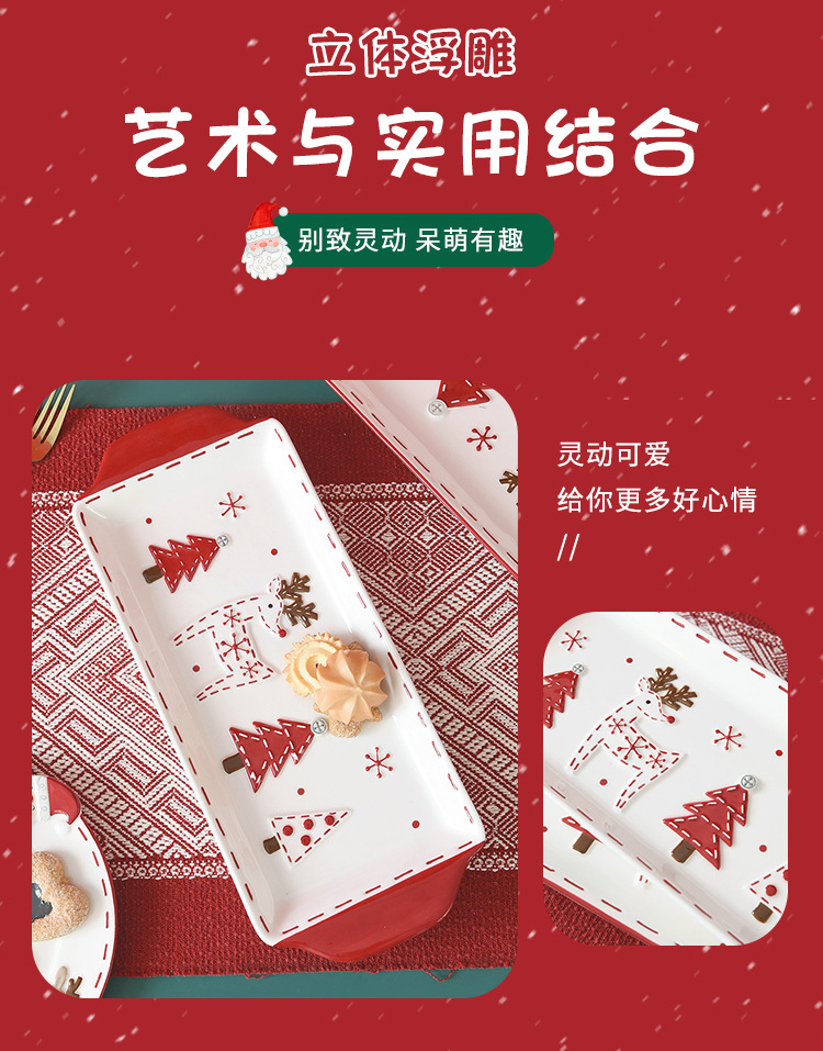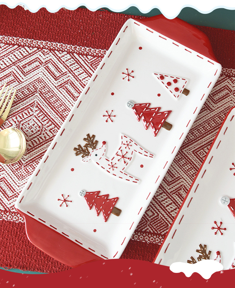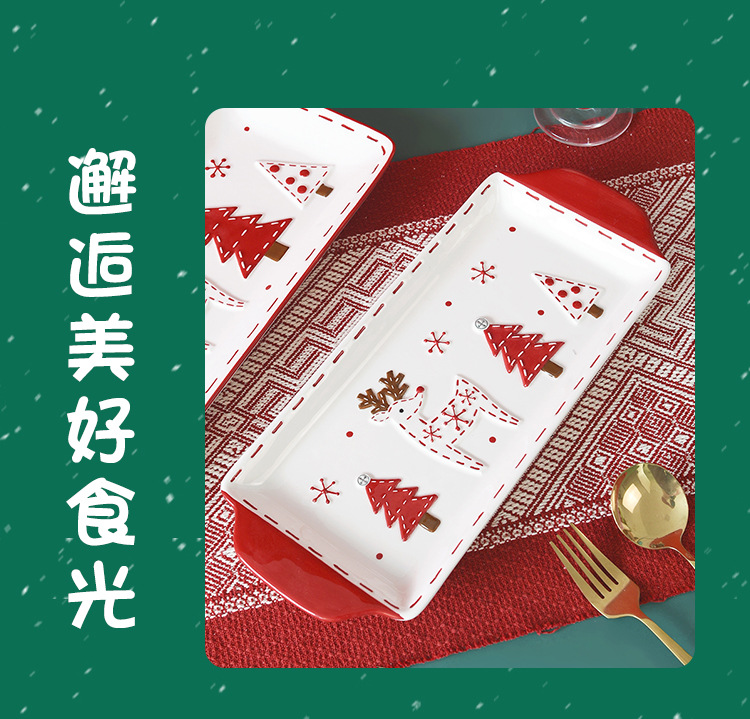 북유럽 산타 클로스 세라믹 플레이트 피쉬 플레이트 가정용 식기 바이노럴 롱 플레이트 양각 접시 서양식 세라믹 플랫 플레이트스토어 가기