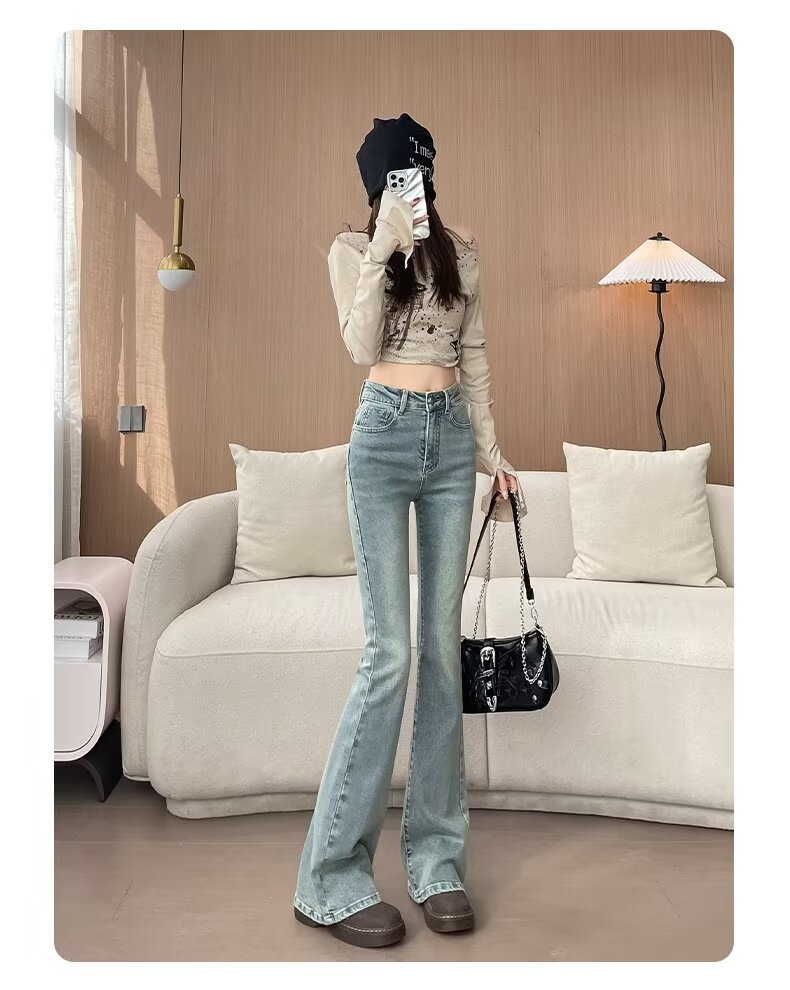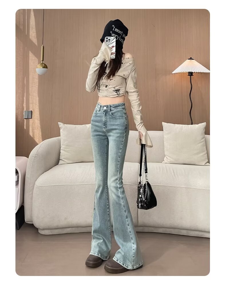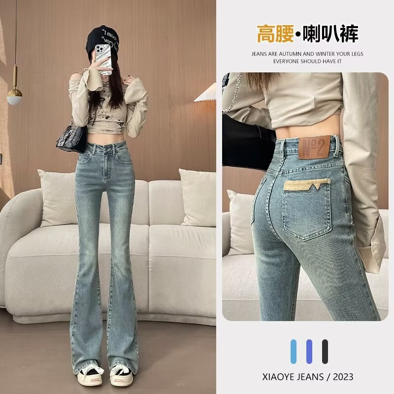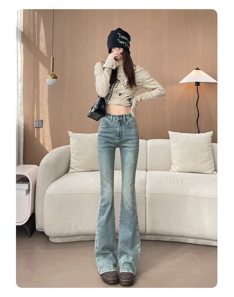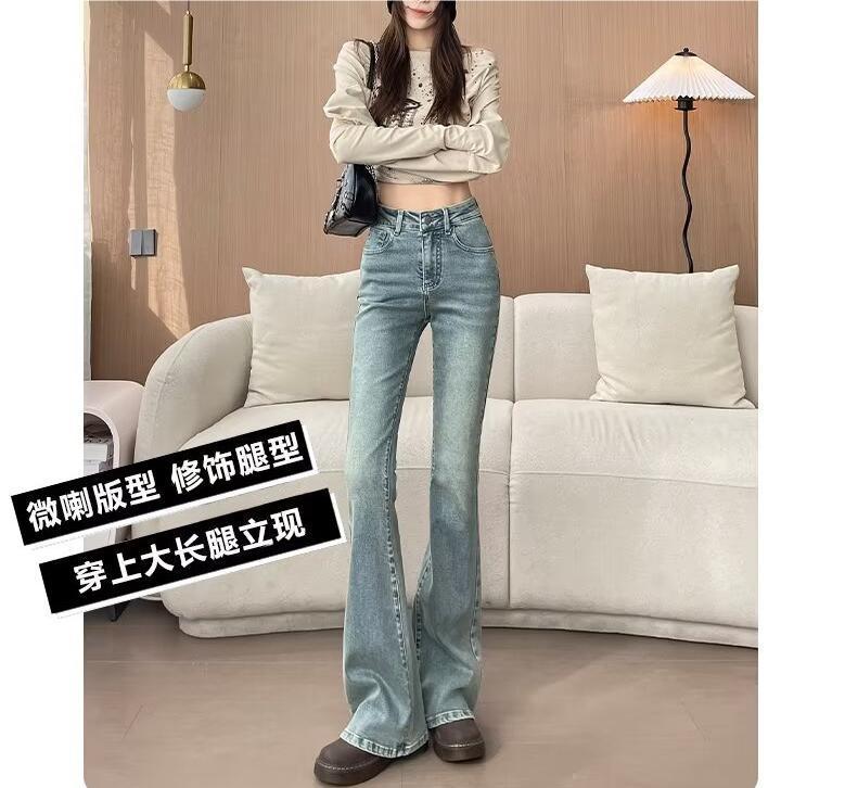 마이크로 라 청바지 여성의 봄과 여름 새로운 높은 허리 슬리밍 올 매치 스트레치 폭발 말굽 데님 트렌디 한 바지스토어 가기