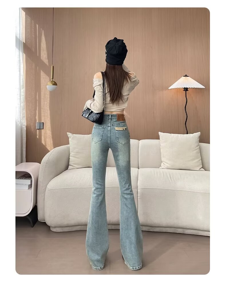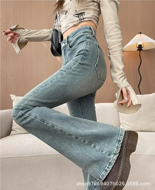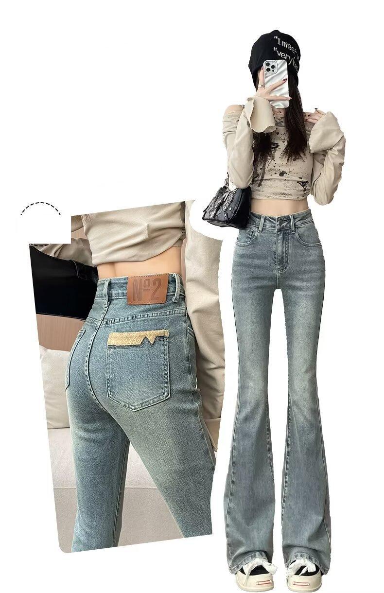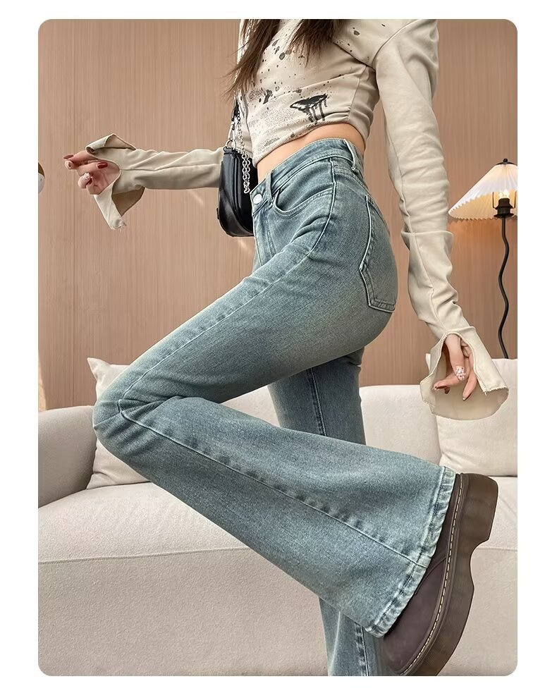 마이크로 라 청바지 여성의 봄과 여름 새로운 높은 허리 슬리밍 올 매치 스트레치 폭발 말굽 데님 트렌디 한 바지스토어 가기
