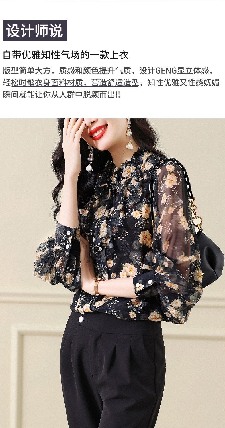 신상 쉬폰 긴팔 셔츠 여성 얇은 소재 2025 여름 프렌치 스타일 나이 감소 효과 러플 탑 여성 꽃무늬 셔츠 수출용스토어 가기