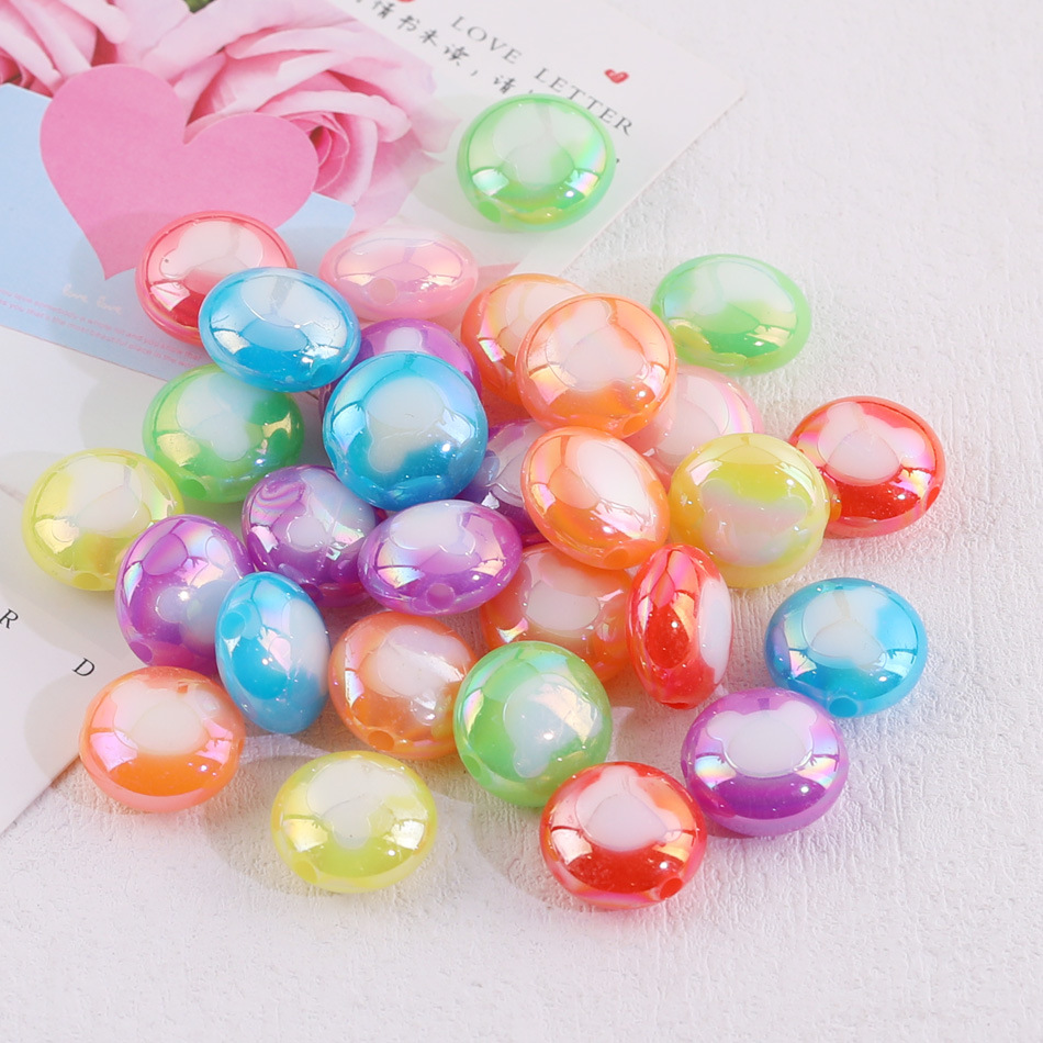 产品尺寸:小熊扁圆珠17MM 条纹圆珠14MM 爱心16*17.5MM 花朵16MM 孔径约2-3MM左右
