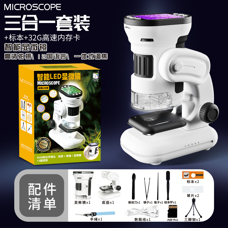 어린이 휴대용 휴대용 현미경 세트 스마트 디지털 HD 광학 전자 현미경 장난감 화면스토어 가기