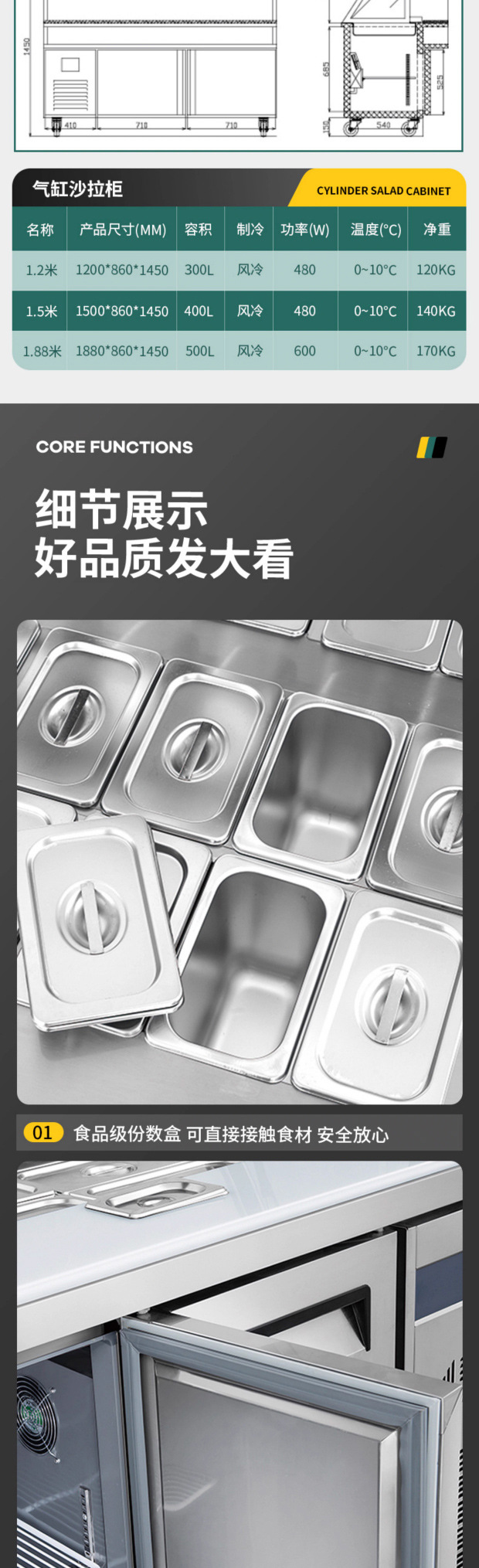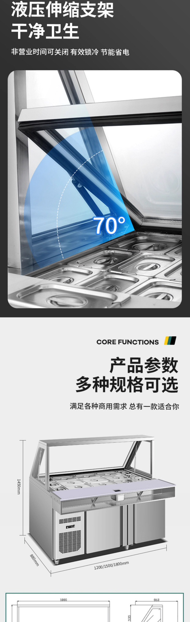 • 1800*900* 1450m 실린더 샐러드 캐비닛