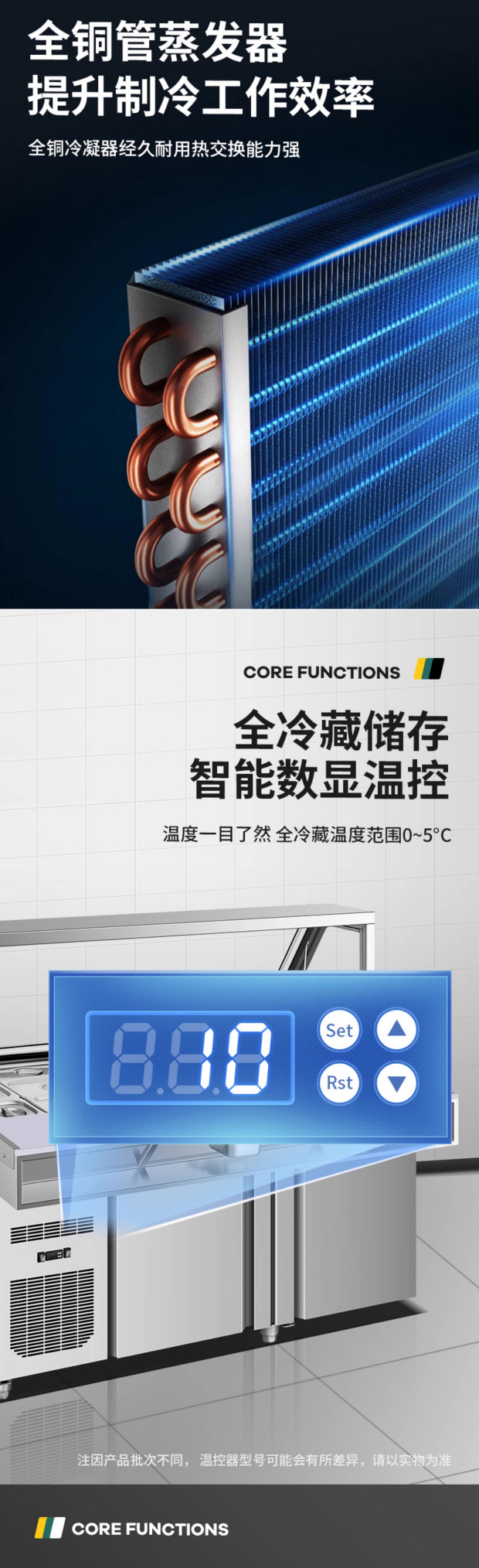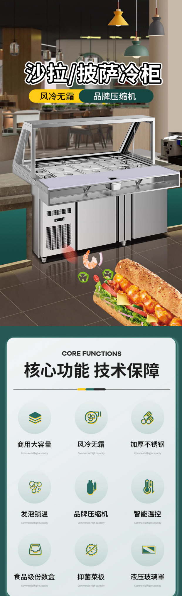 Subway 실린더 샐러드 캐비닛 공냉식 피자 작업대 슬롯 소스 플랫폼 냉장고 과일 냉동고 젤리
