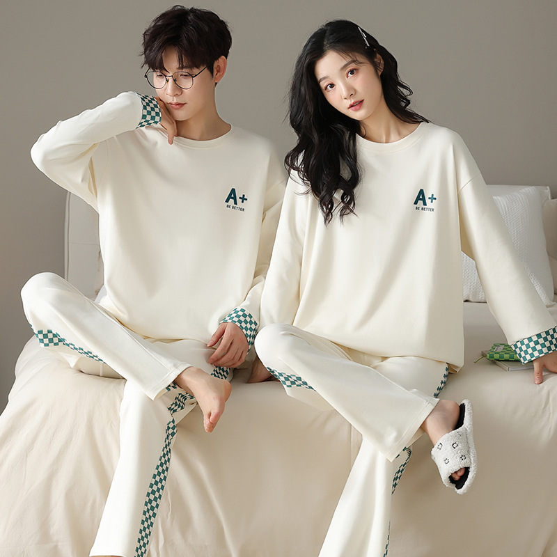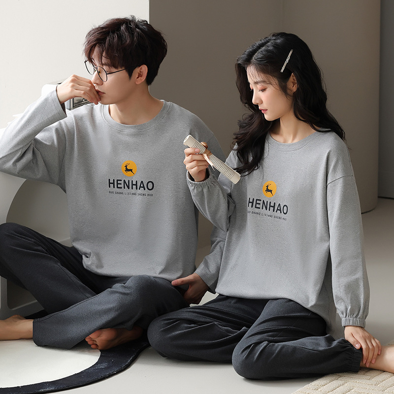 봄과 가을 코튼 커플 잠옷 남녀 풀오버 스포츠 레저 홈웨어 한국식 긴팔 투피스 세트스토어 가기