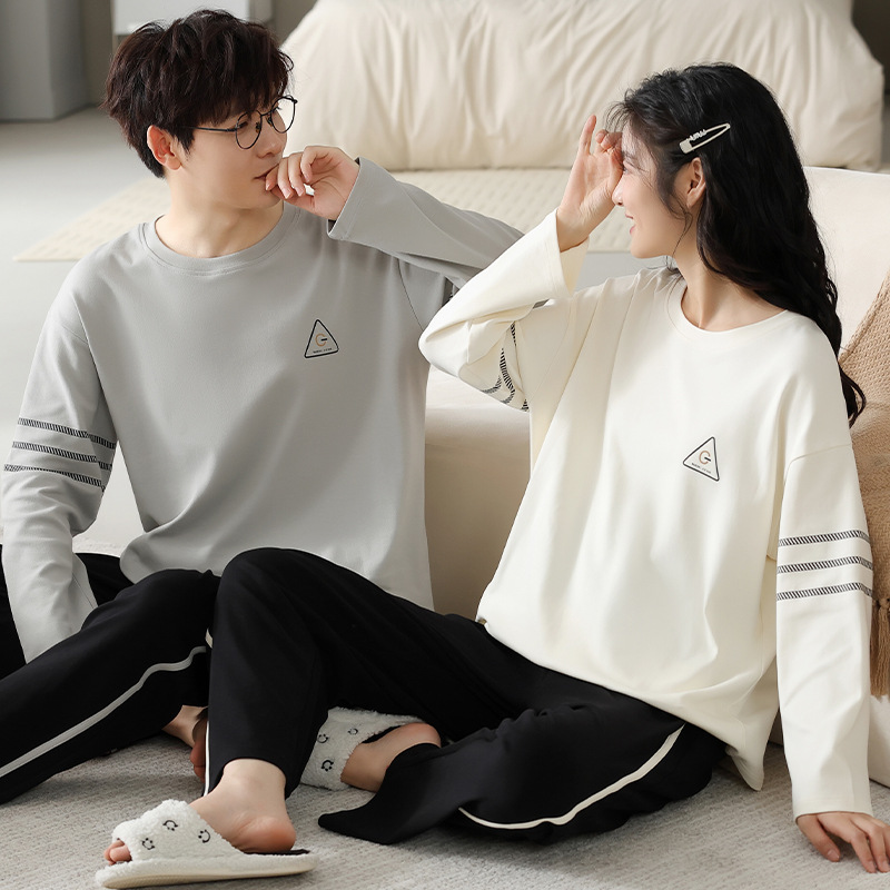 봄과 가을 코튼 커플 잠옷 남녀 풀오버 스포츠 레저 홈웨어 한국식 긴팔 투피스 세트