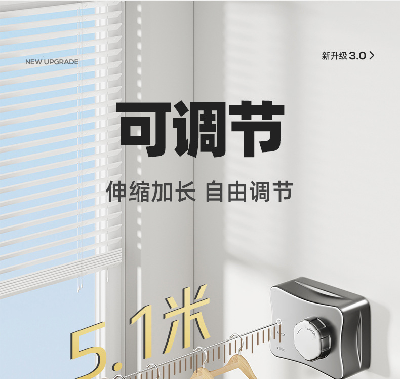 • 5.1 m 회색-새로 업그레이드 된 확장 (조정 가능한 로프 조임)