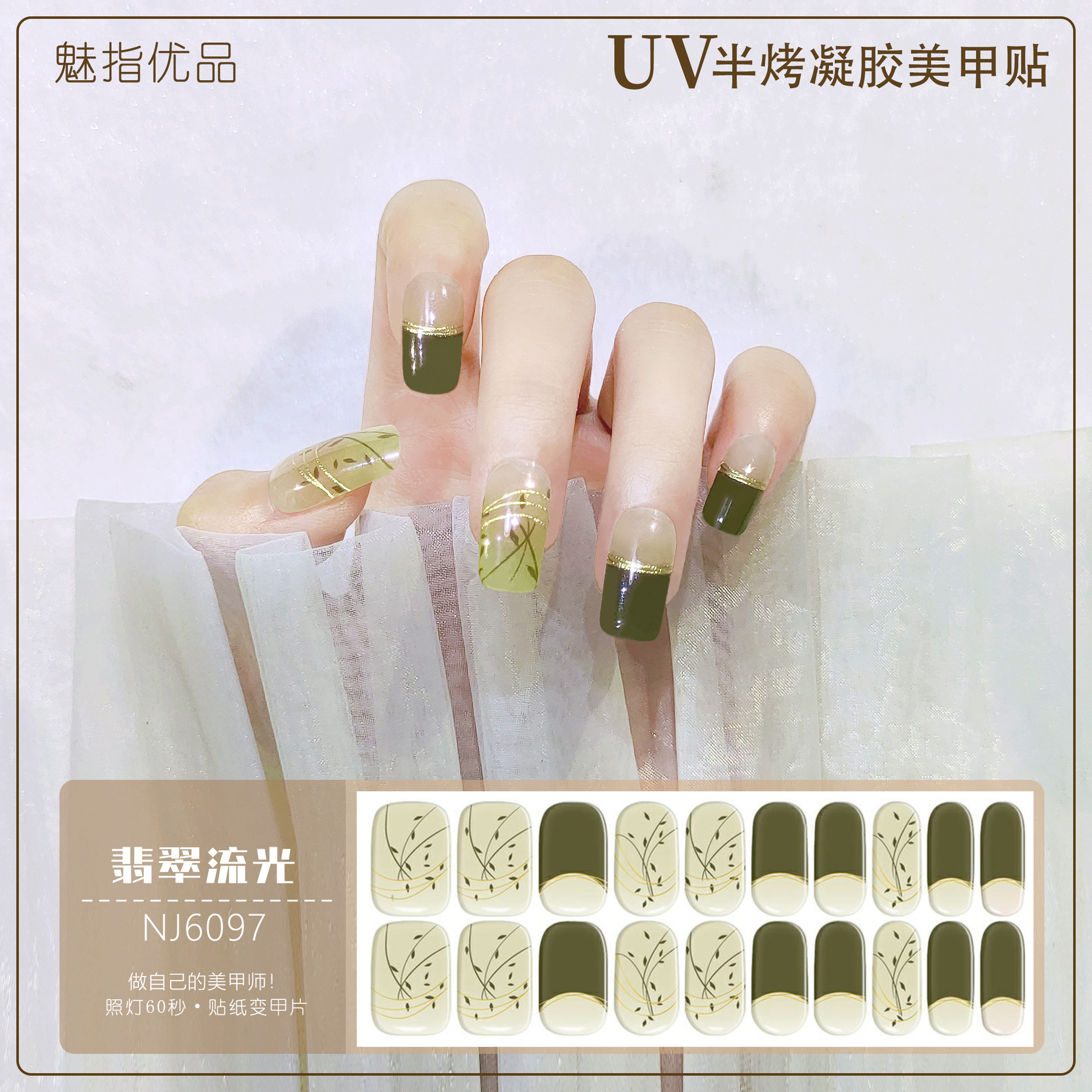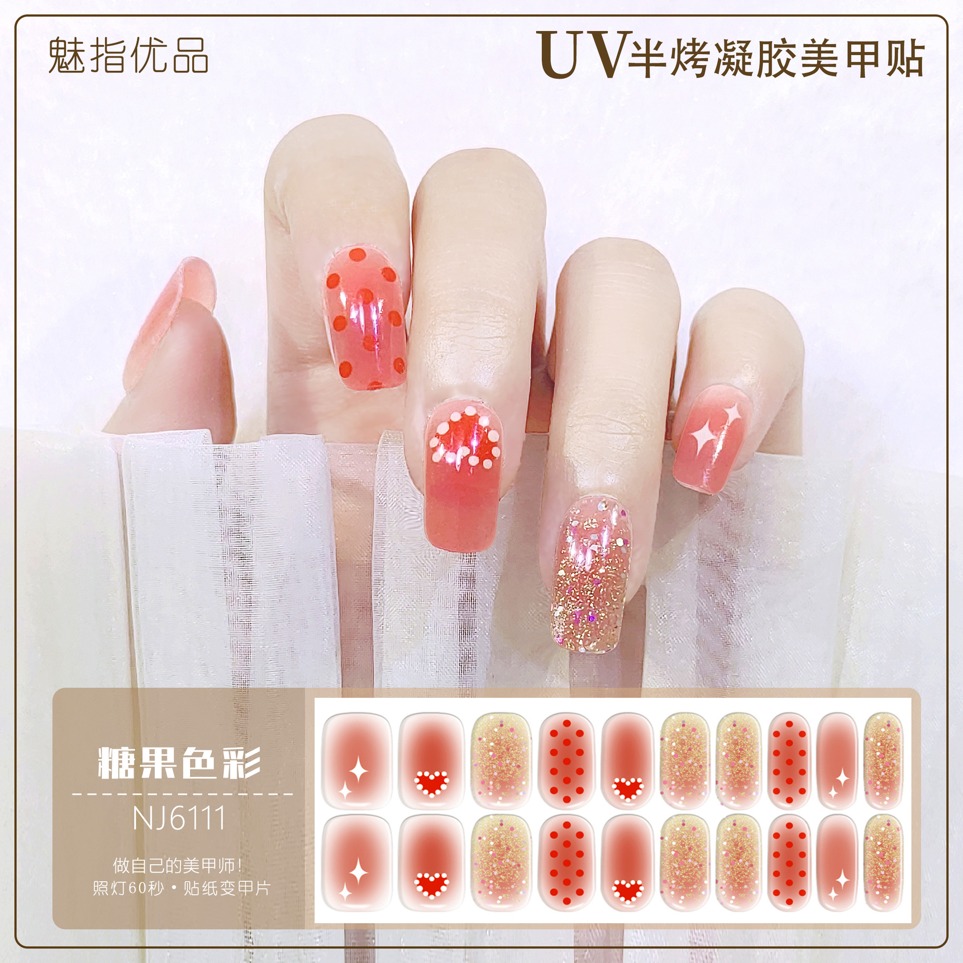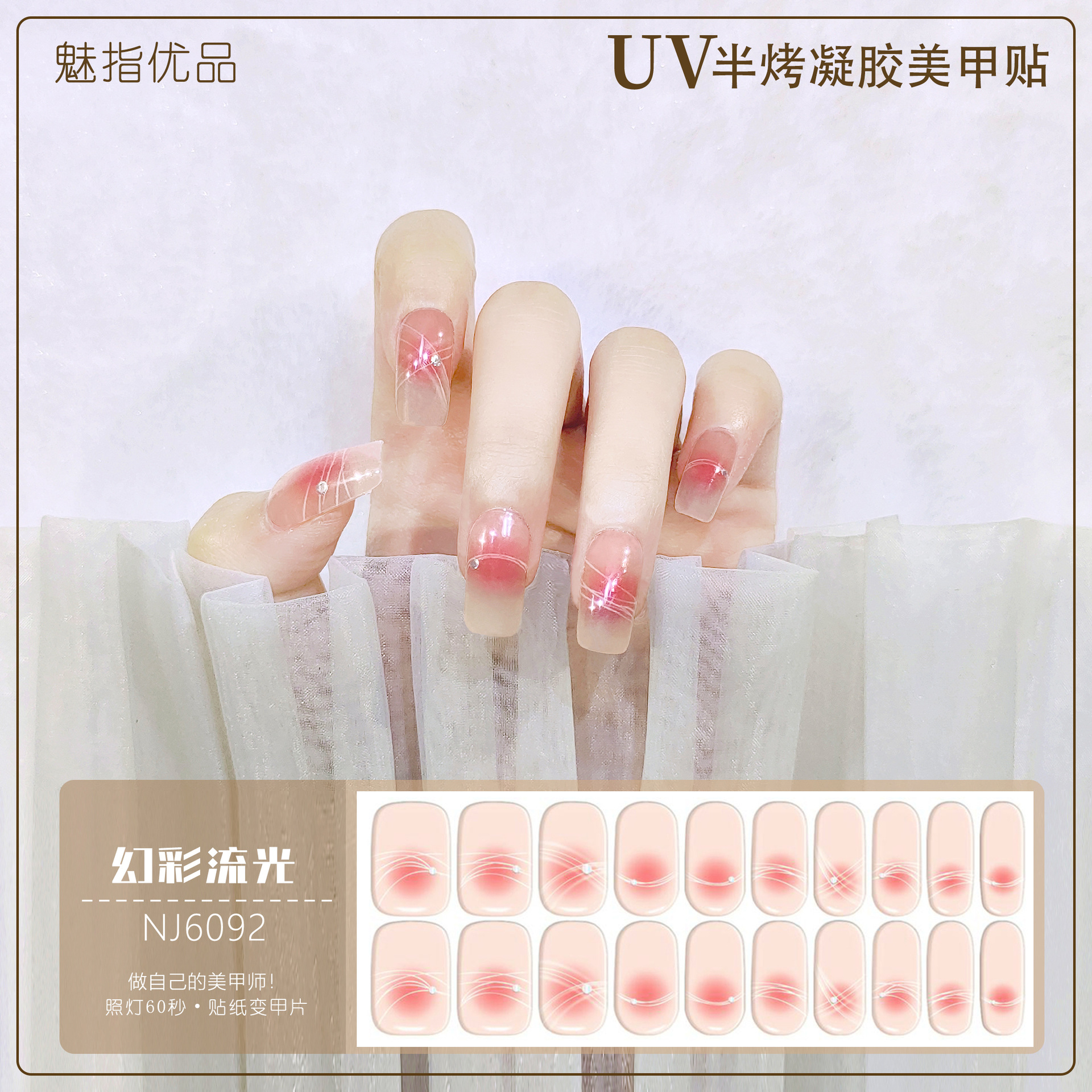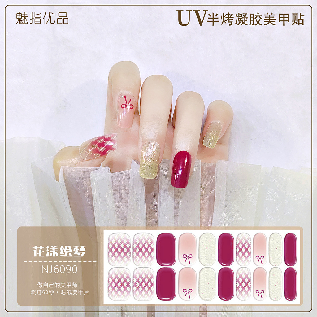 공장 직접 UV 램프 젤 네일 스티커 반 경화 한국 매니큐어 접착제 스티커 반 구운 네일 스티커 20 손가락스토어 가기