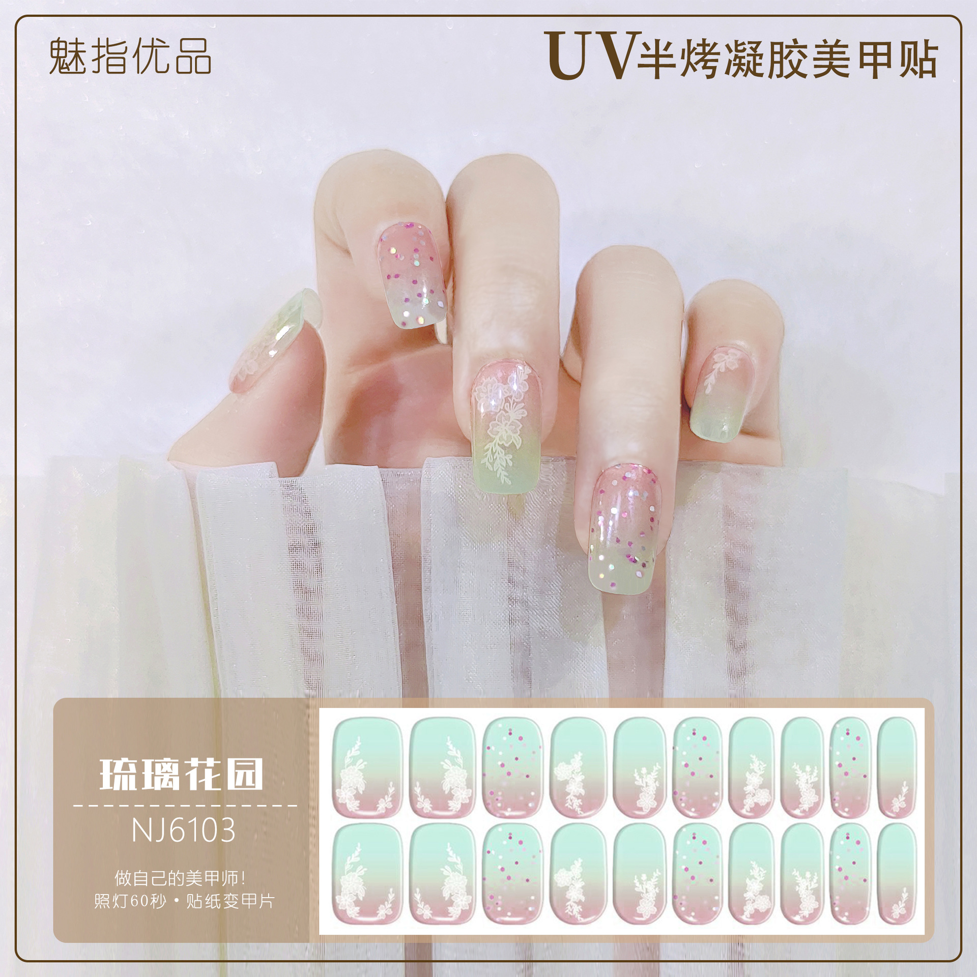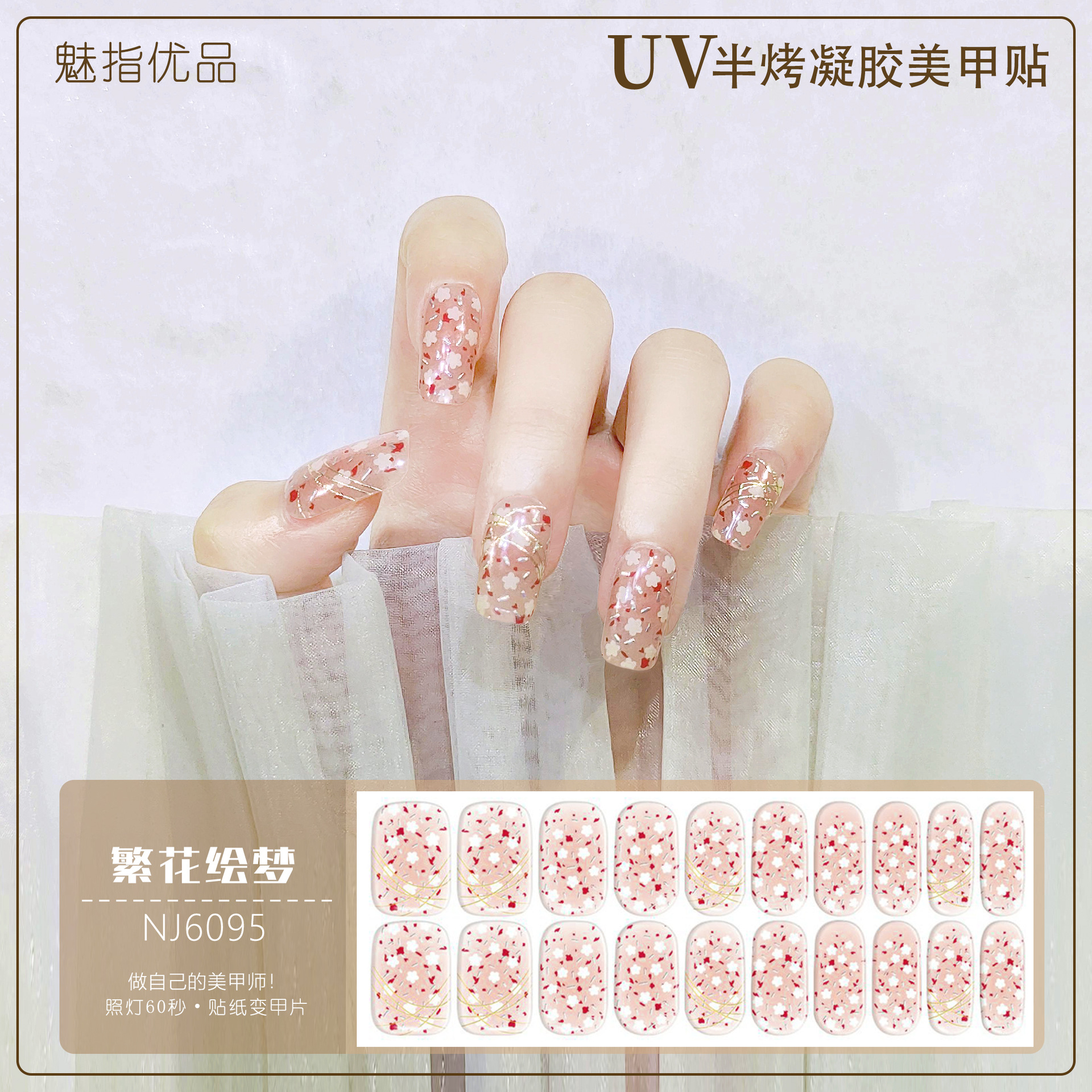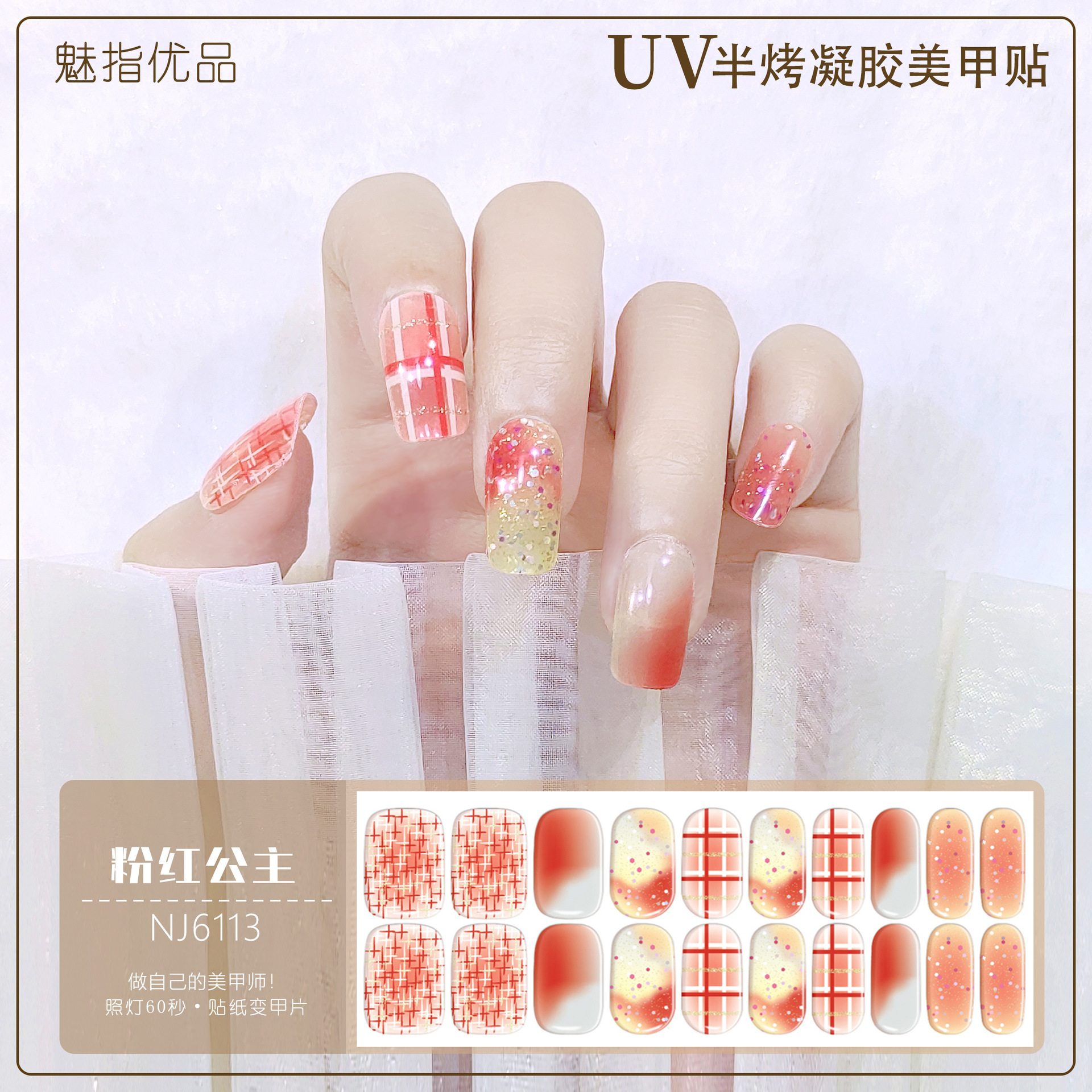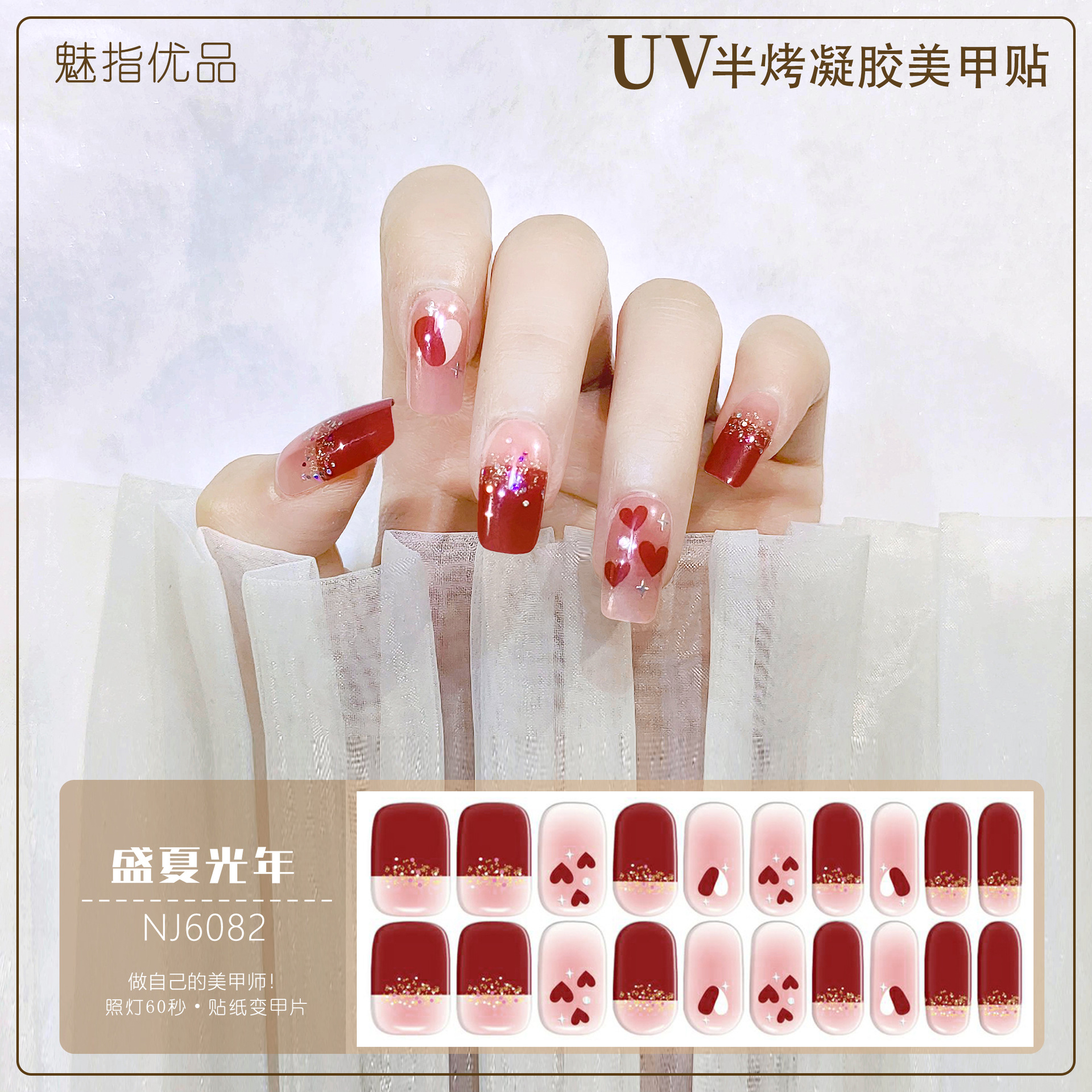 공장 직접 UV 램프 젤 네일 스티커 반 경화 한국 매니큐어 접착제 스티커 반 구운 네일 스티커 20 손가락스토어 가기