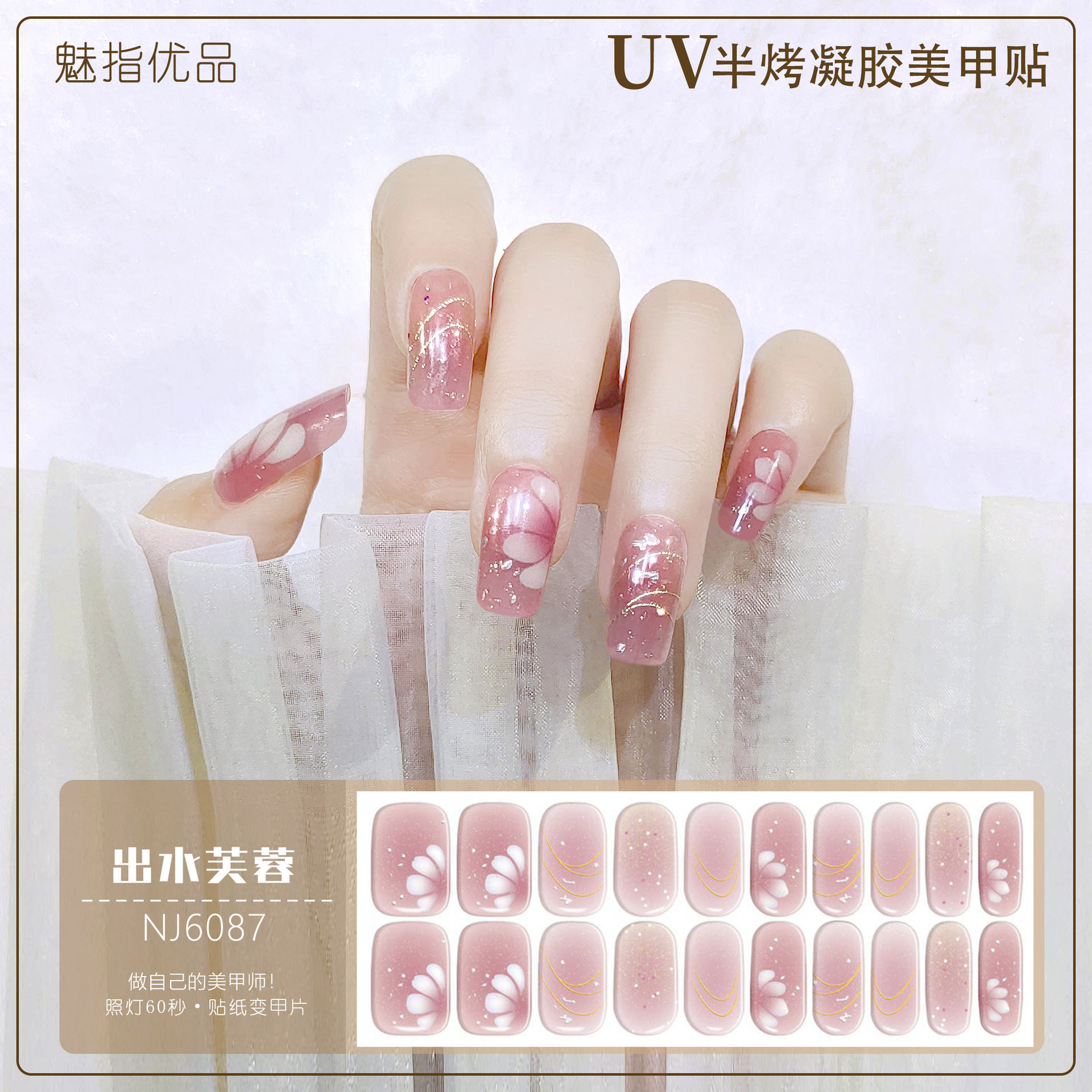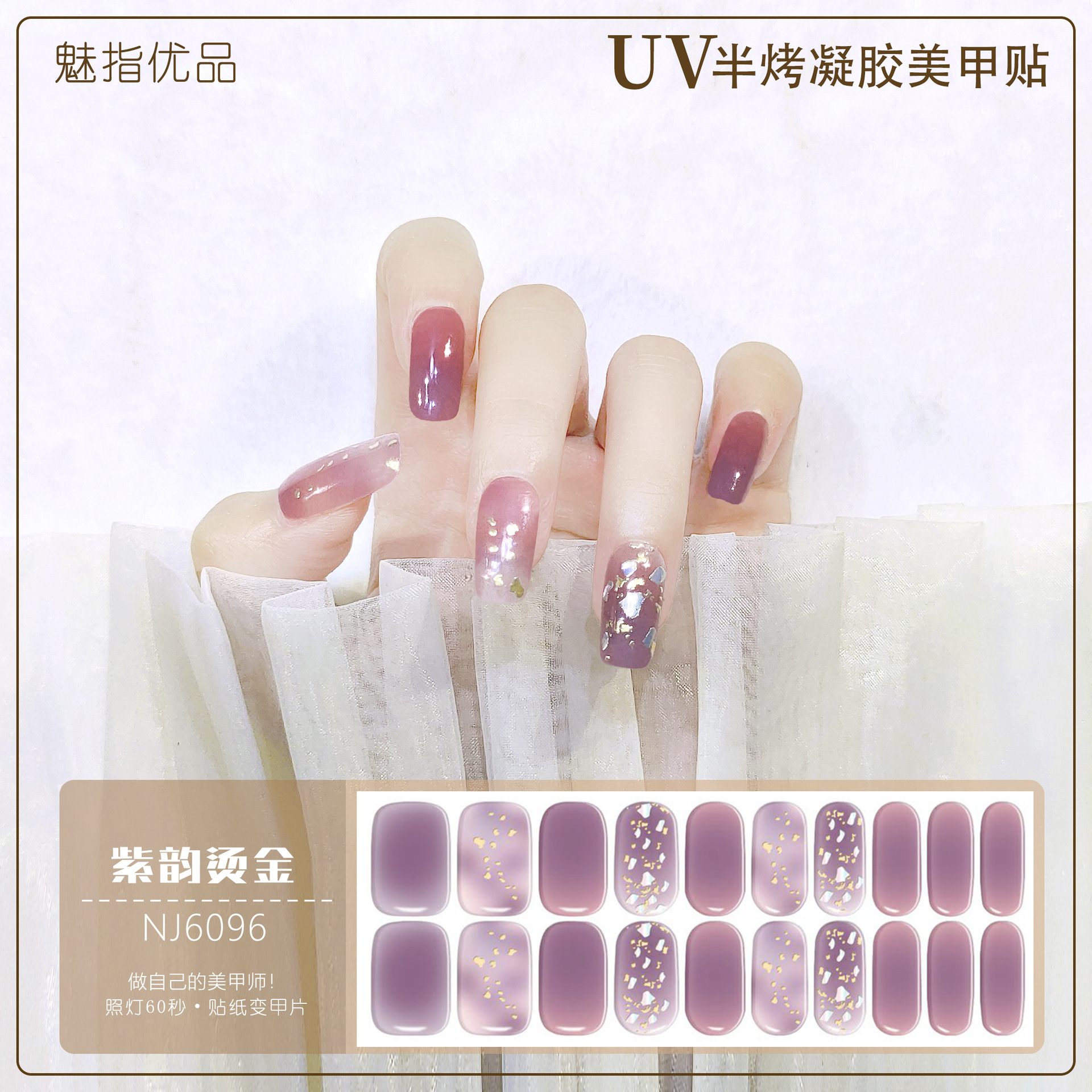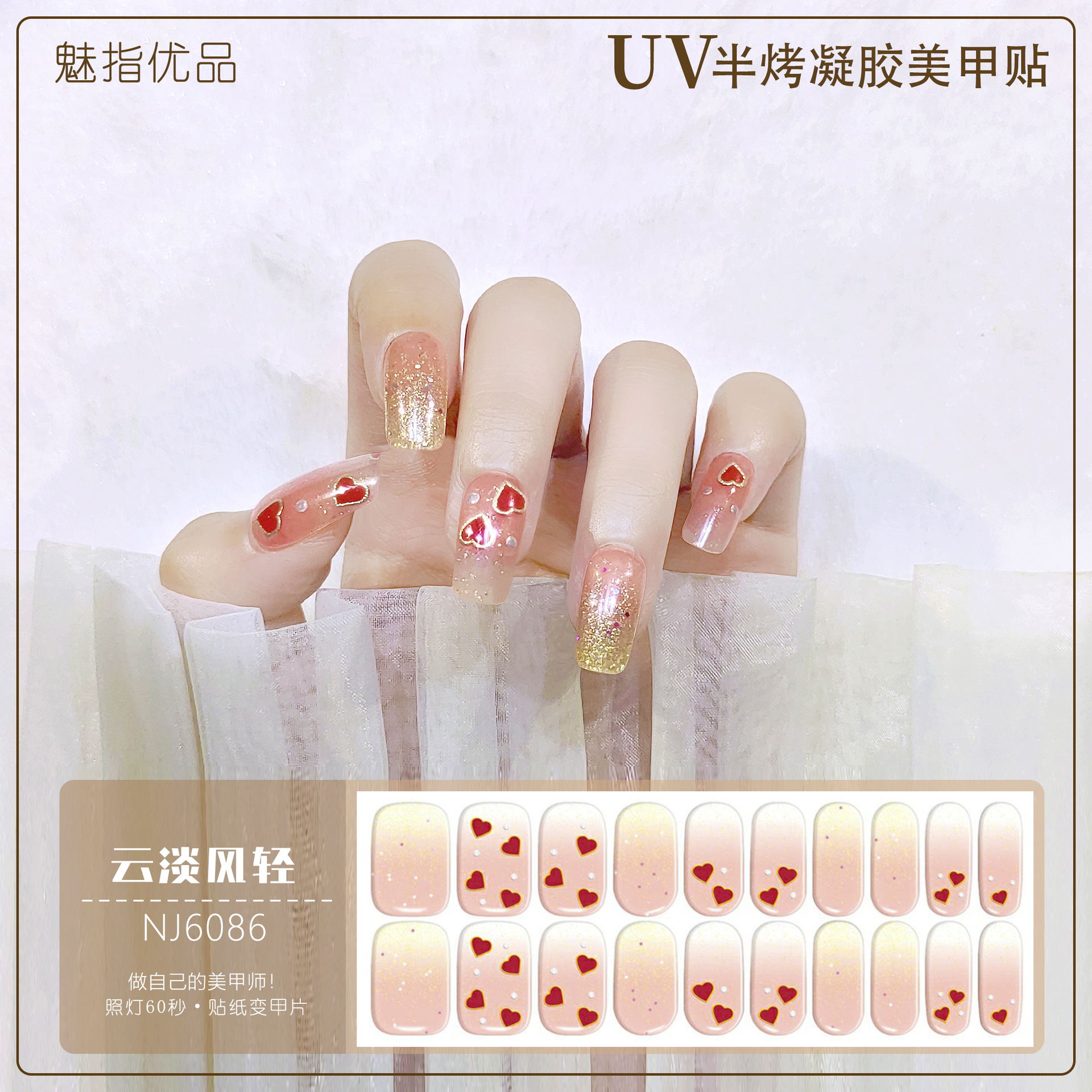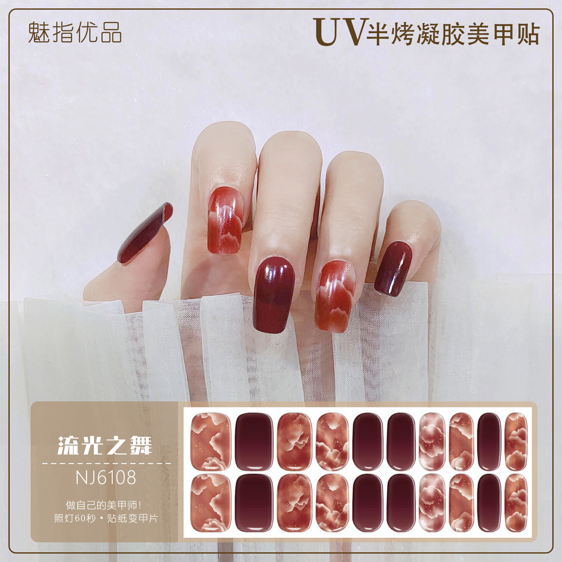 공장 직접 UV 램프 젤 네일 스티커 반 경화 한국 매니큐어 접착제 스티커 반 구운 네일 스티커 20 손가락스토어 가기