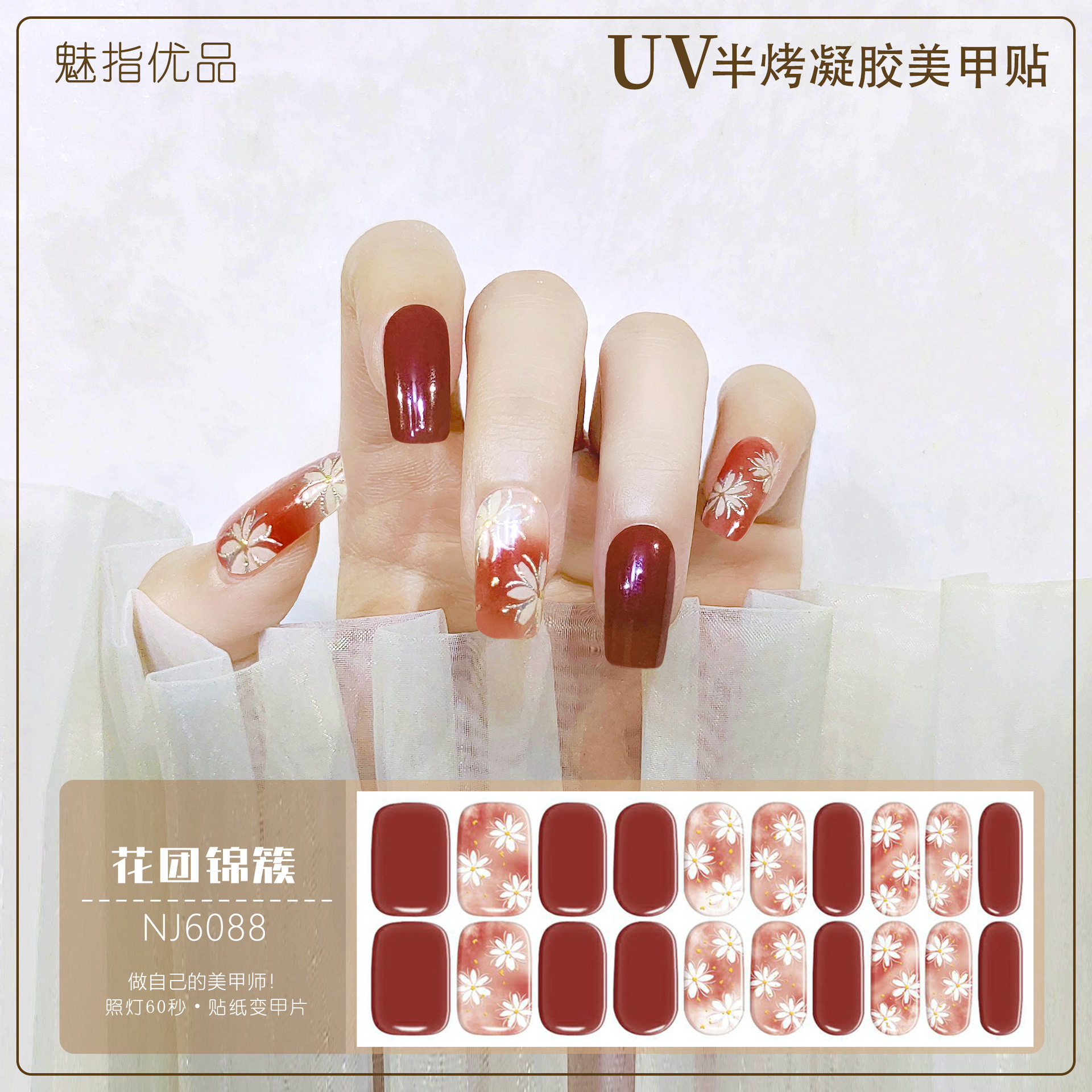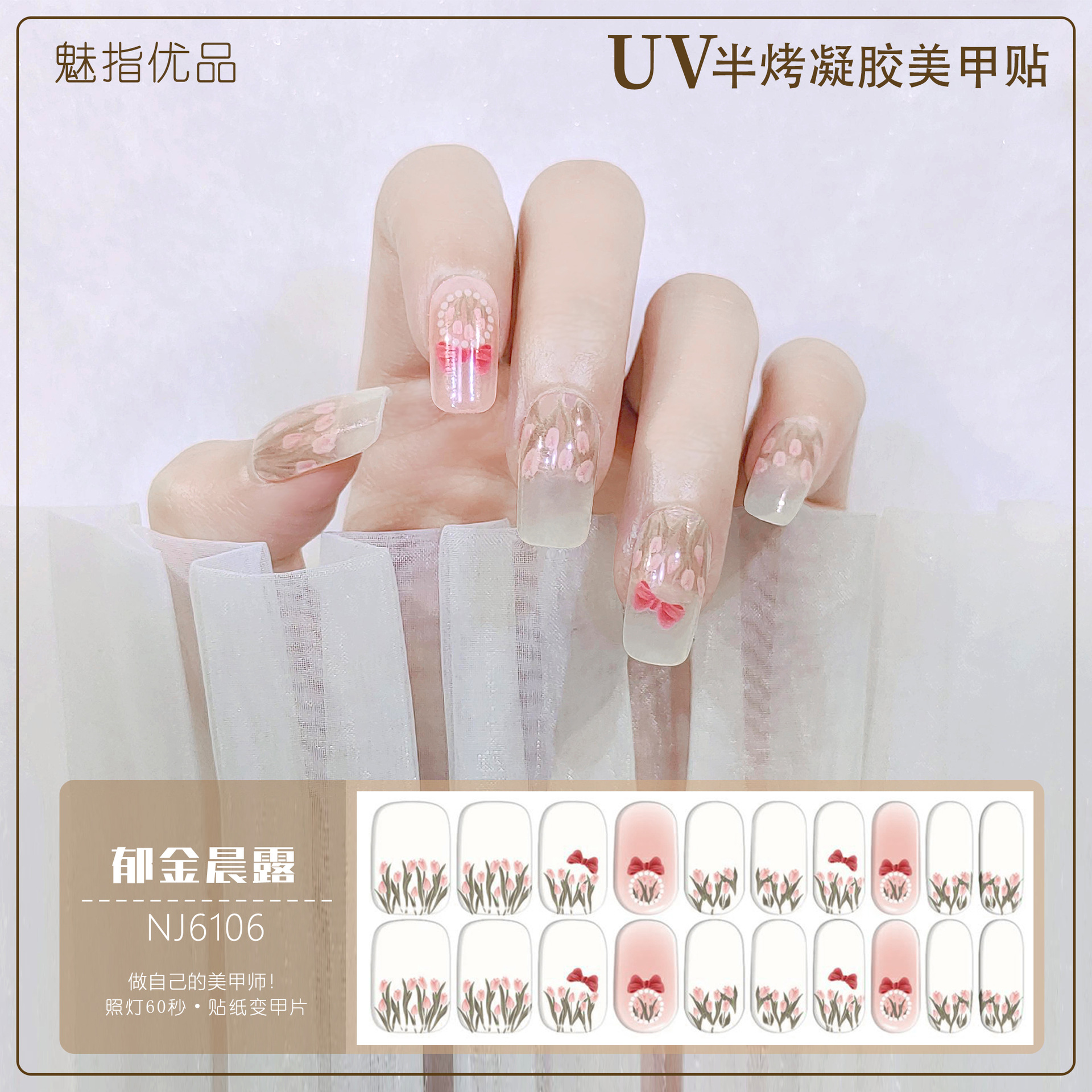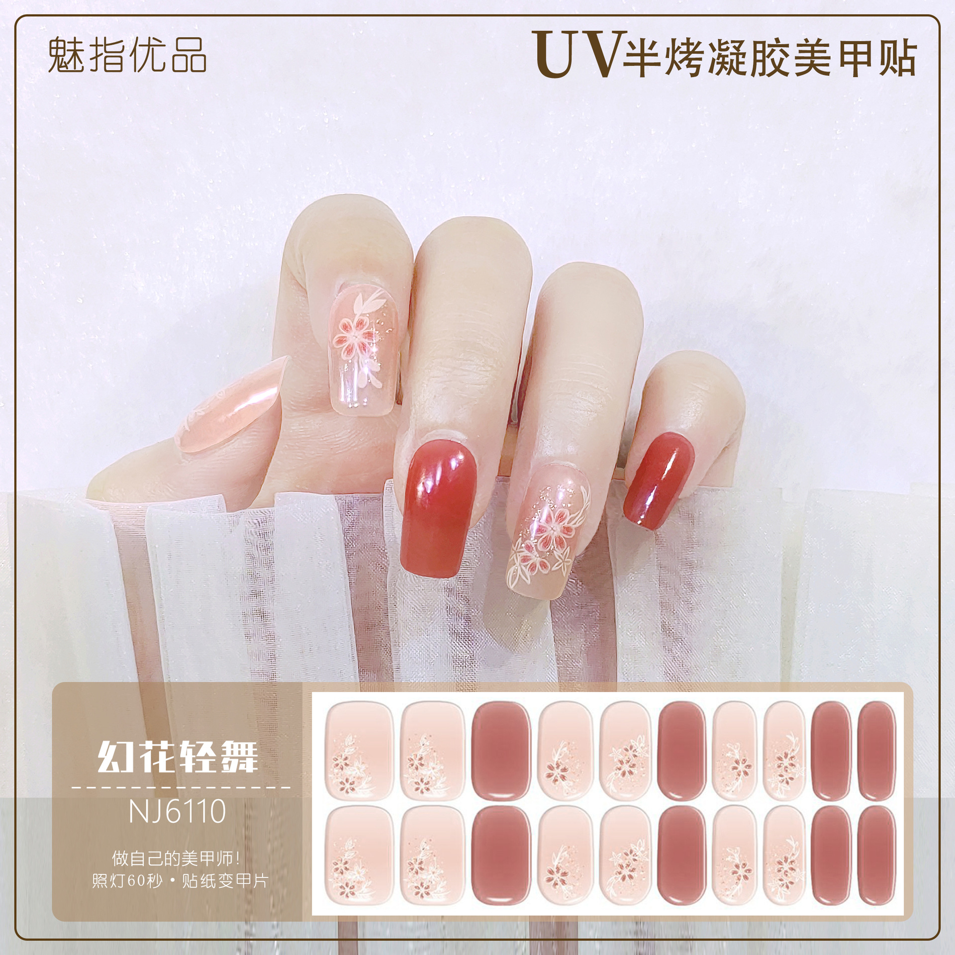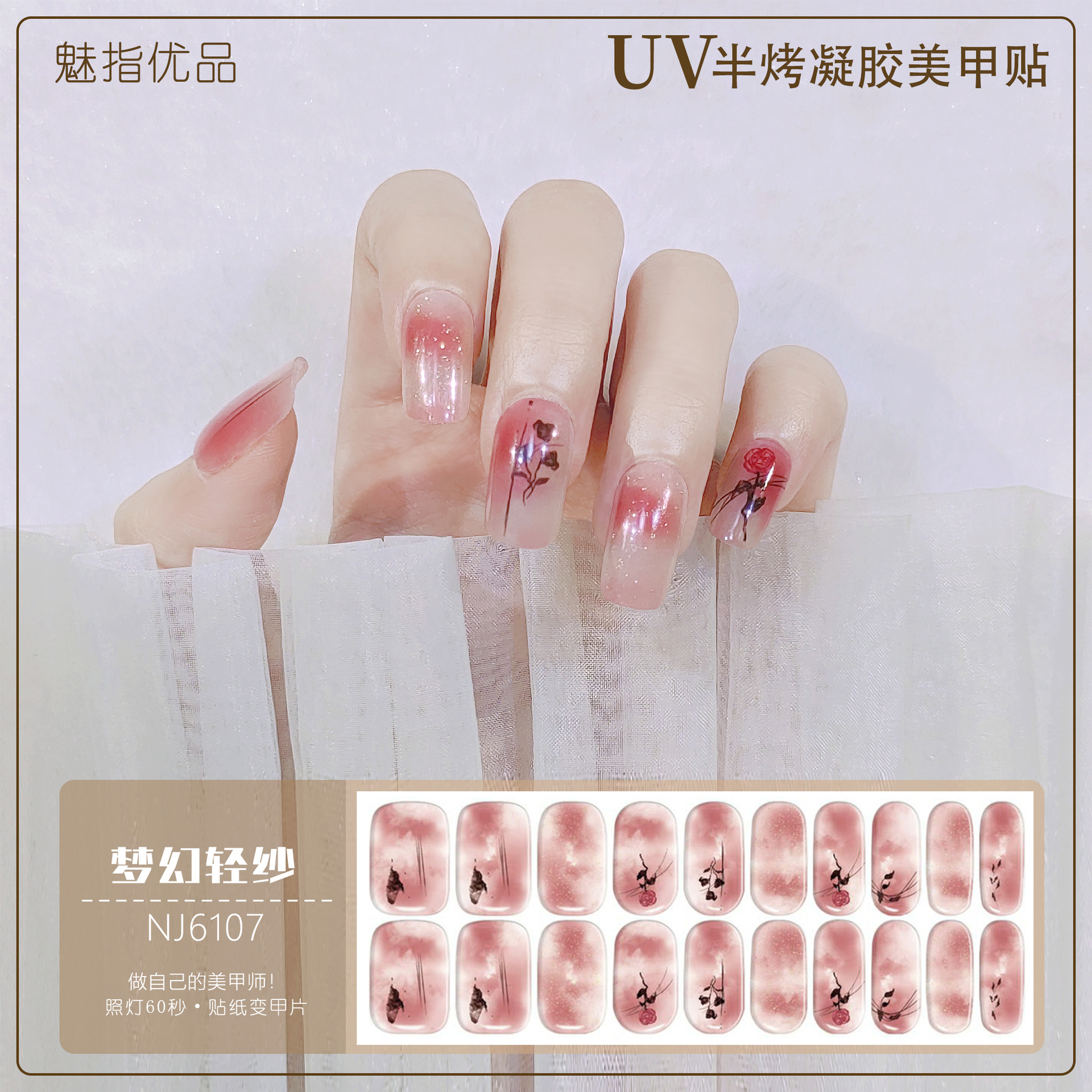 공장 직접 UV 램프 젤 네일 스티커 반 경화 한국 매니큐어 접착제 스티커 반 구운 네일 스티커 20 손가락스토어 가기