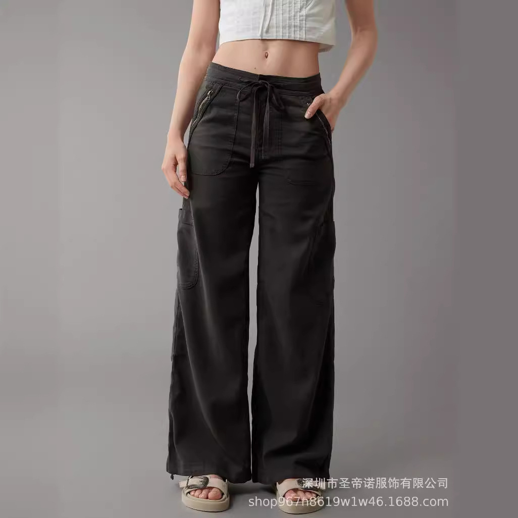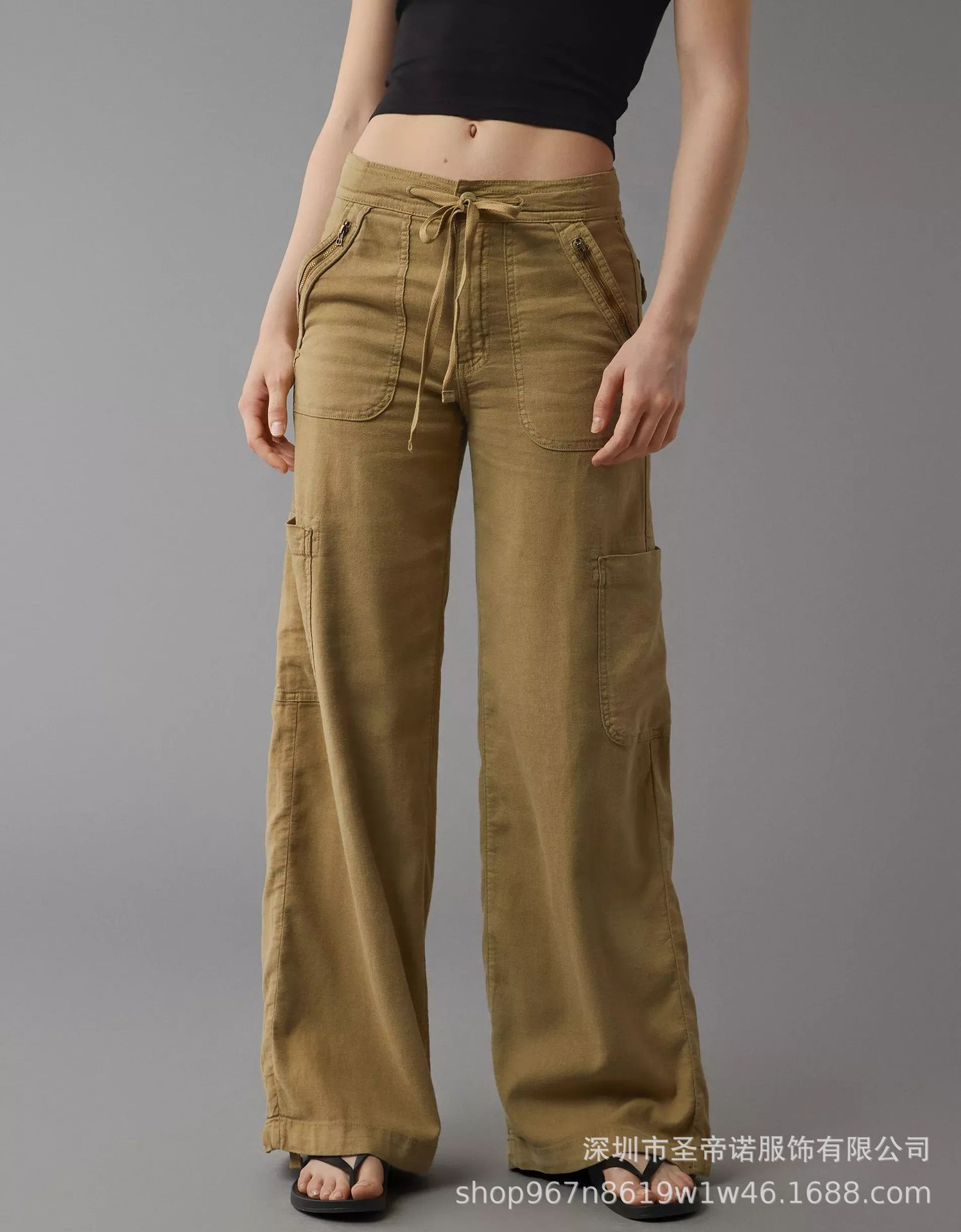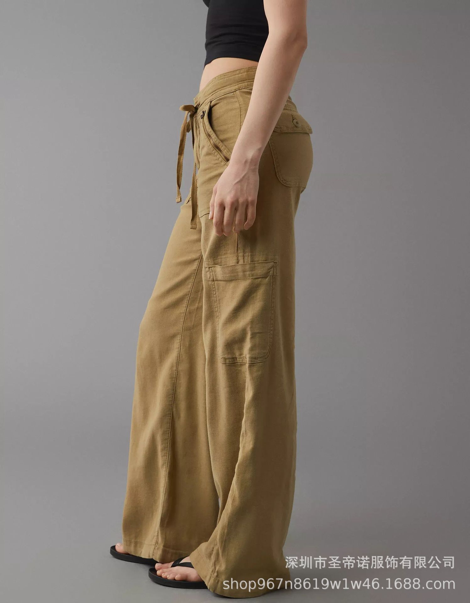 2024 여름 핫 스타일 국경 유럽과 미국 기질 우아한 산디노 패션 트렌드 데님 코튼과 린넨 와이드 팬츠스토어 가기