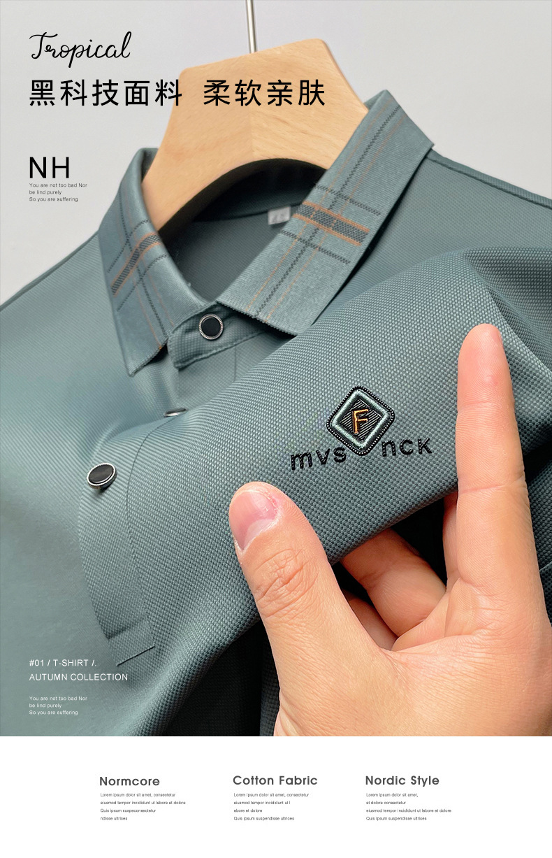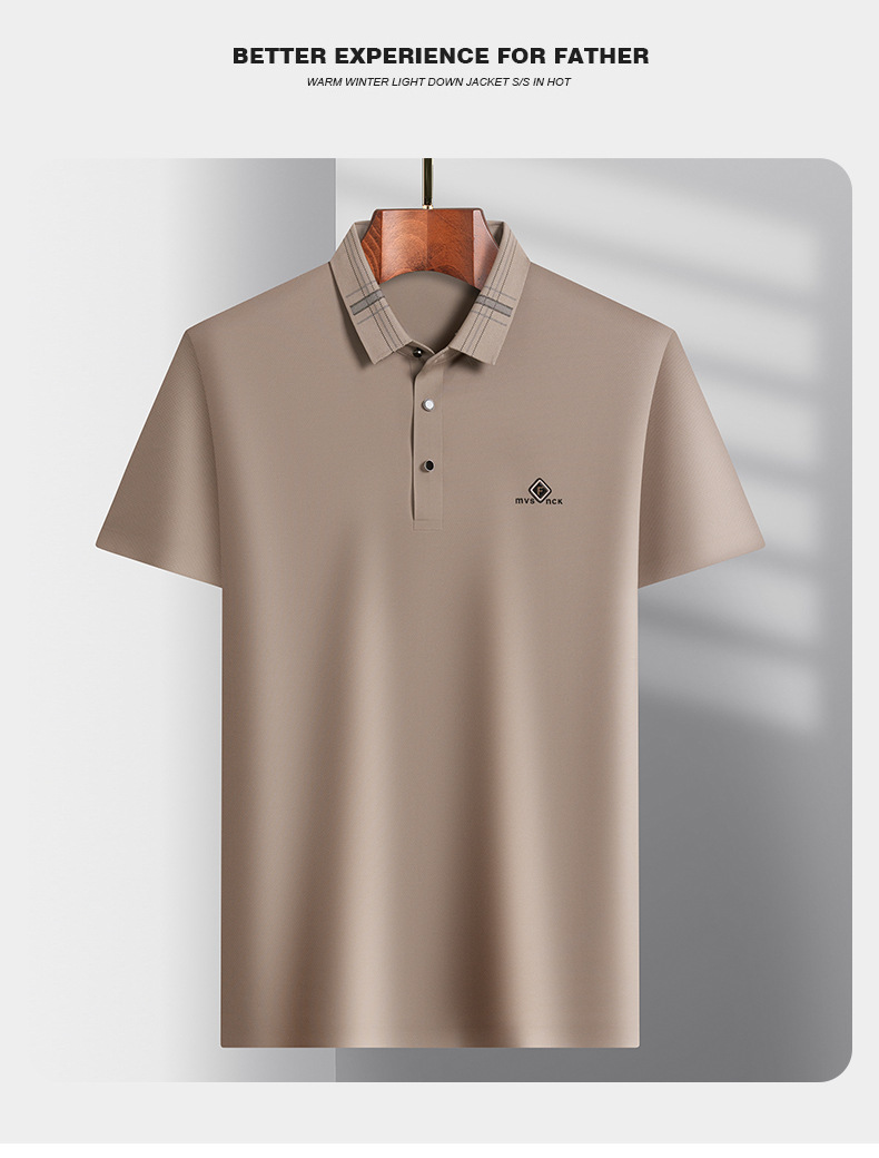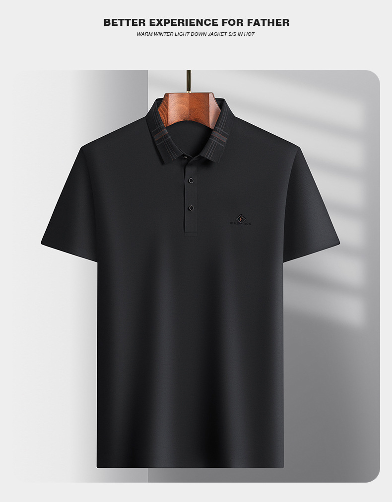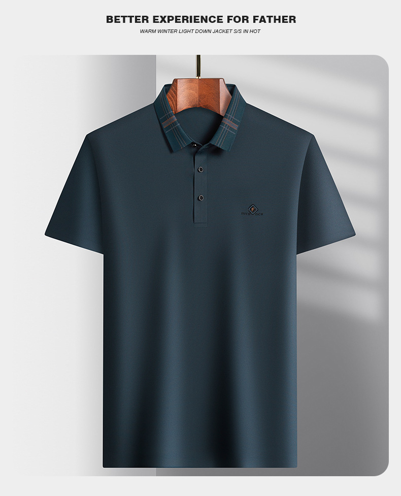 남성용 여름 얇은 비즈니스 캐주얼 탄성 옷깃 중년 느슨한 폴로 셔츠