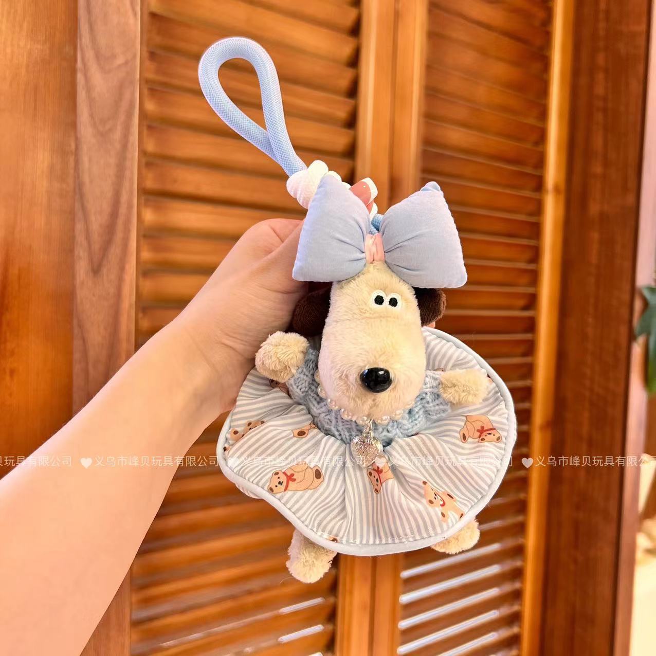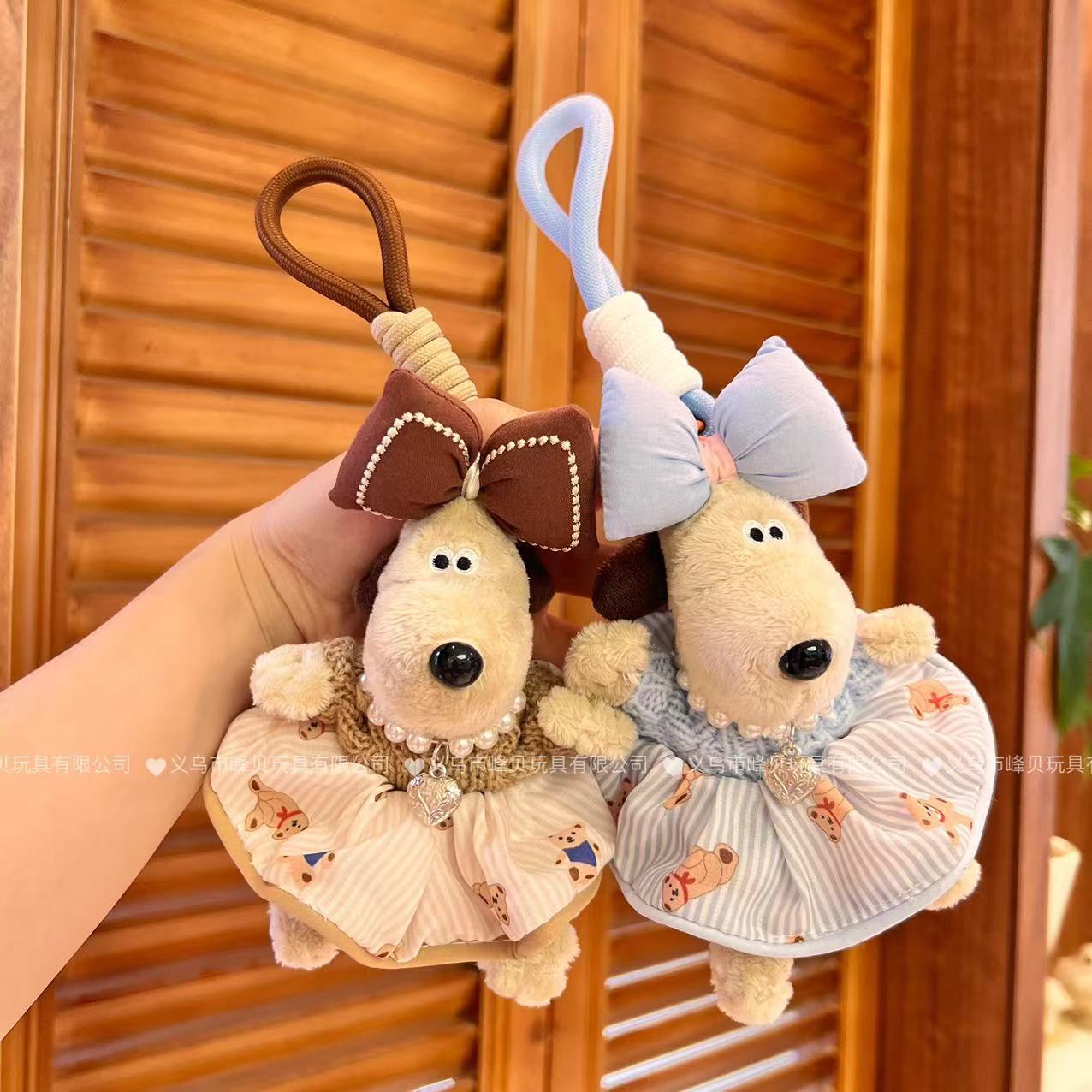13cm 핸드독 연예인 공주 스트라이프 스커트 활 키 체인 펜던트 휴대 전화 백 클립 크로스 바디 로프 그물 레드스토어 가기