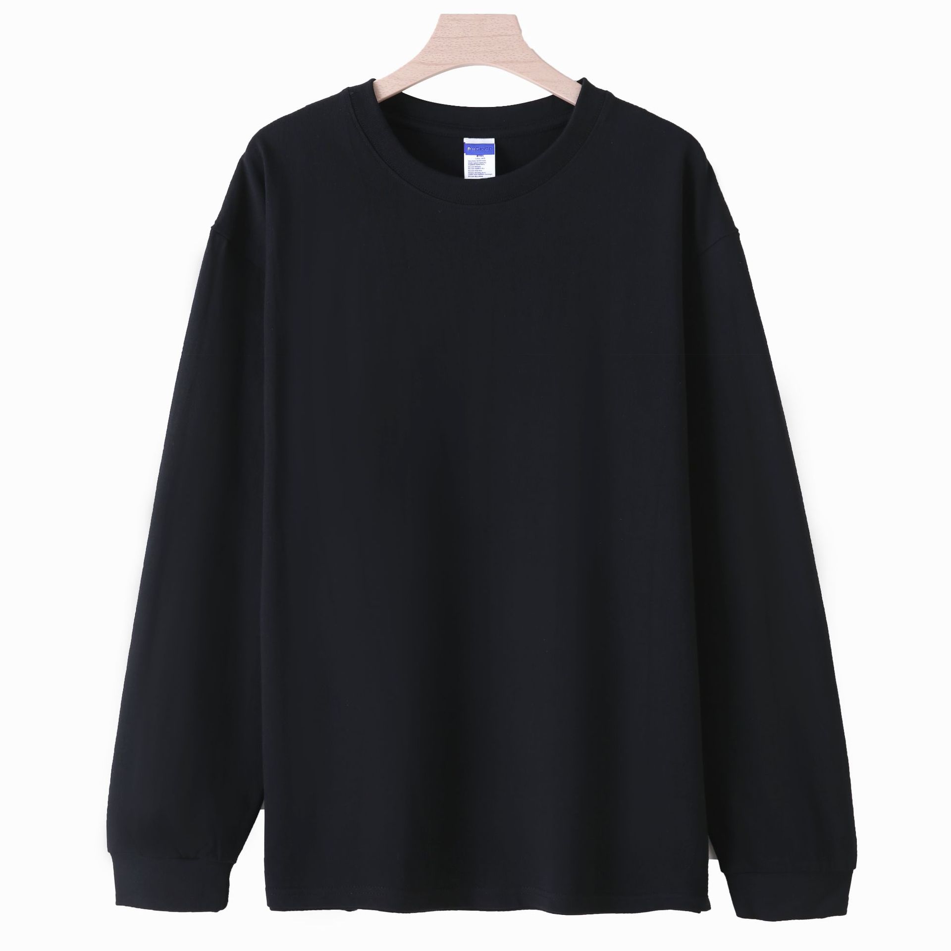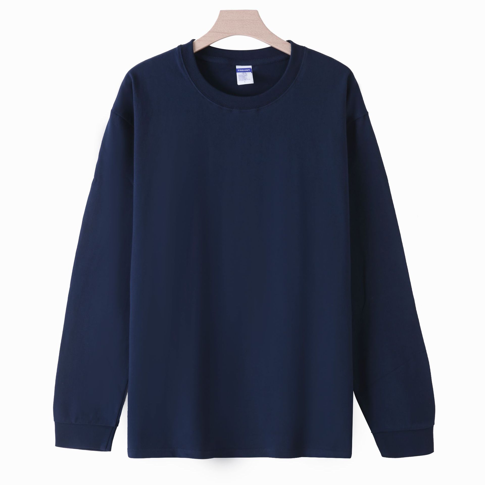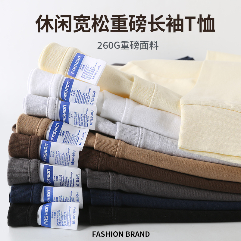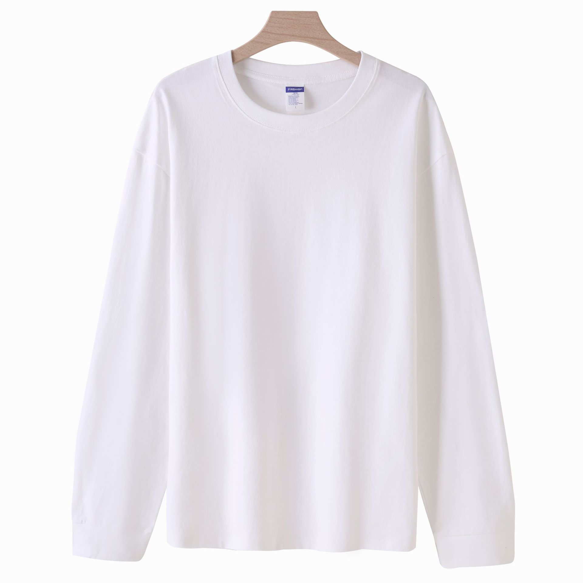 라이브 폭발 260g 실 커프스 신장면 느슨한 승무원 목 긴 소매 티셔츠 남성용 가을과 겨울 면화 흰색 다스