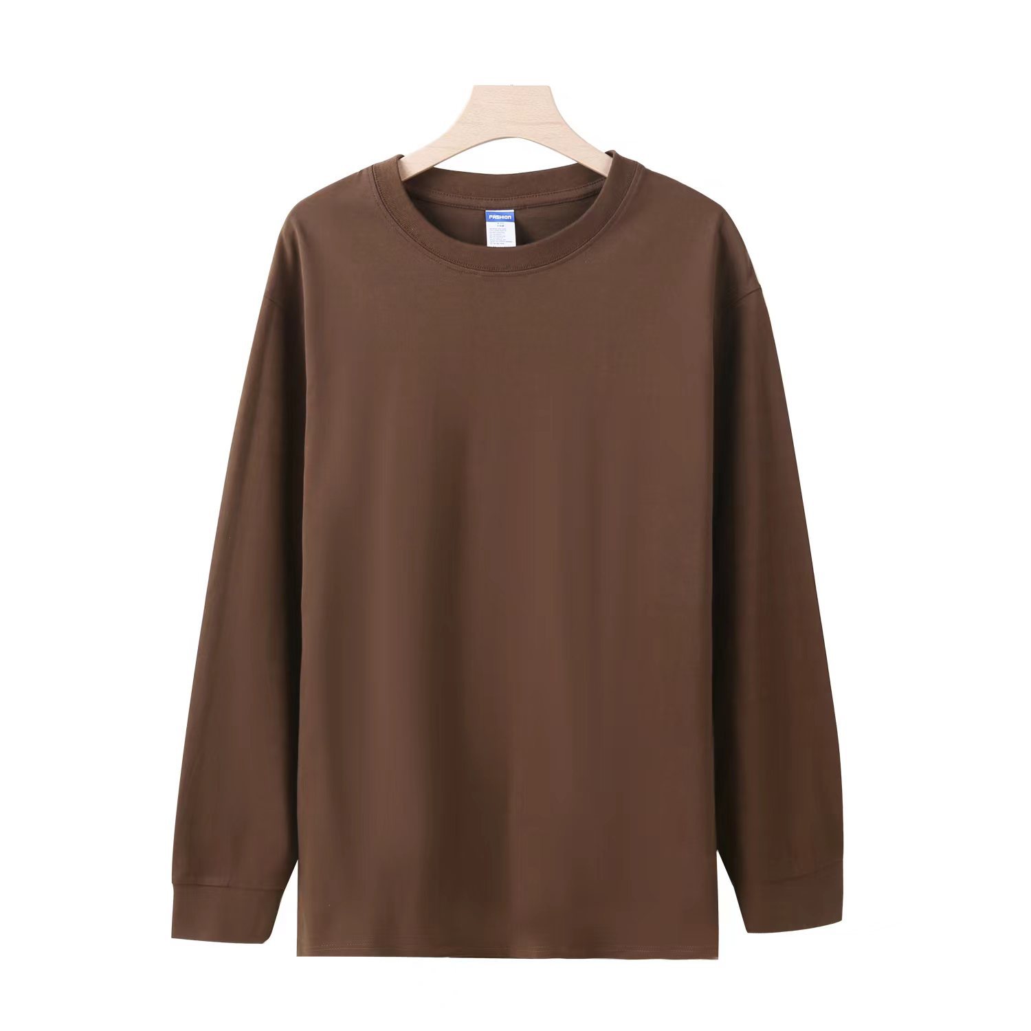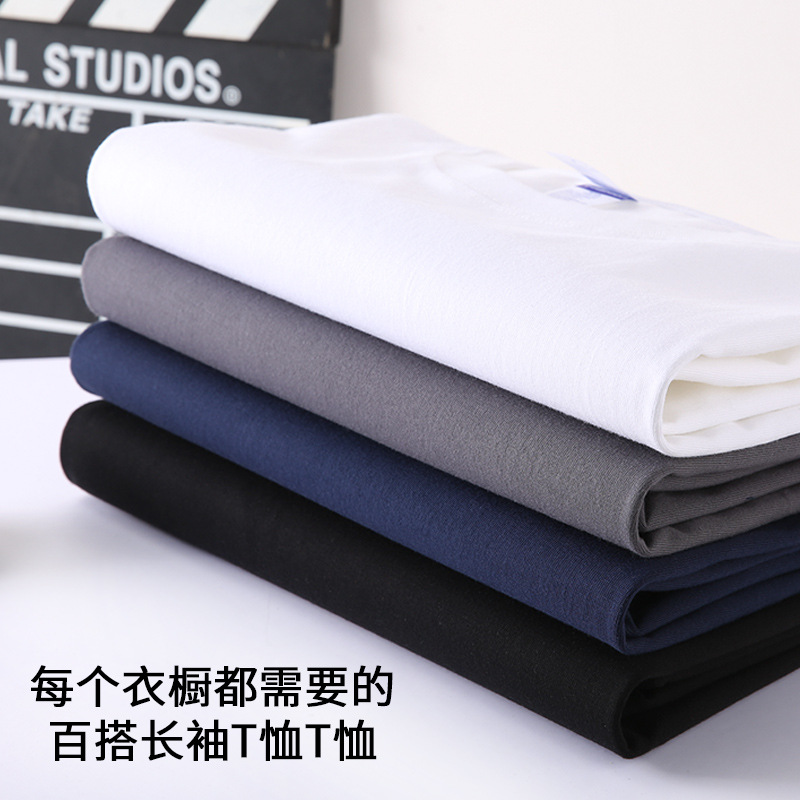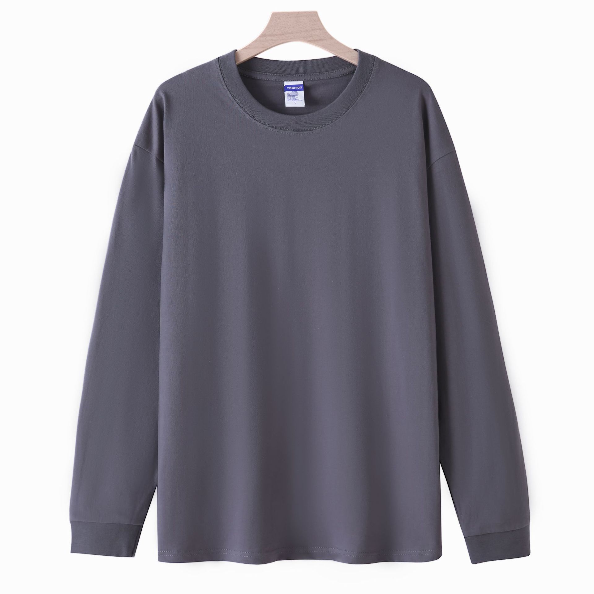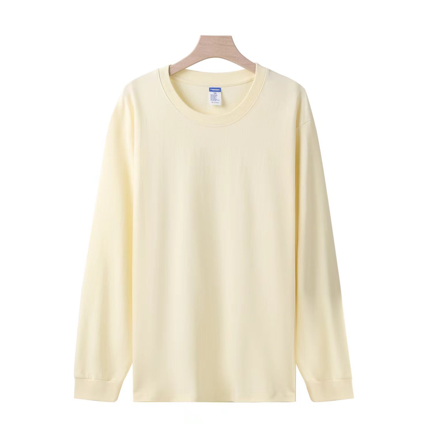 라이브 폭발 260g 실 커프스 신장면 느슨한 승무원 목 긴 소매 티셔츠 남성용 가을과 겨울 면화 흰색 다스